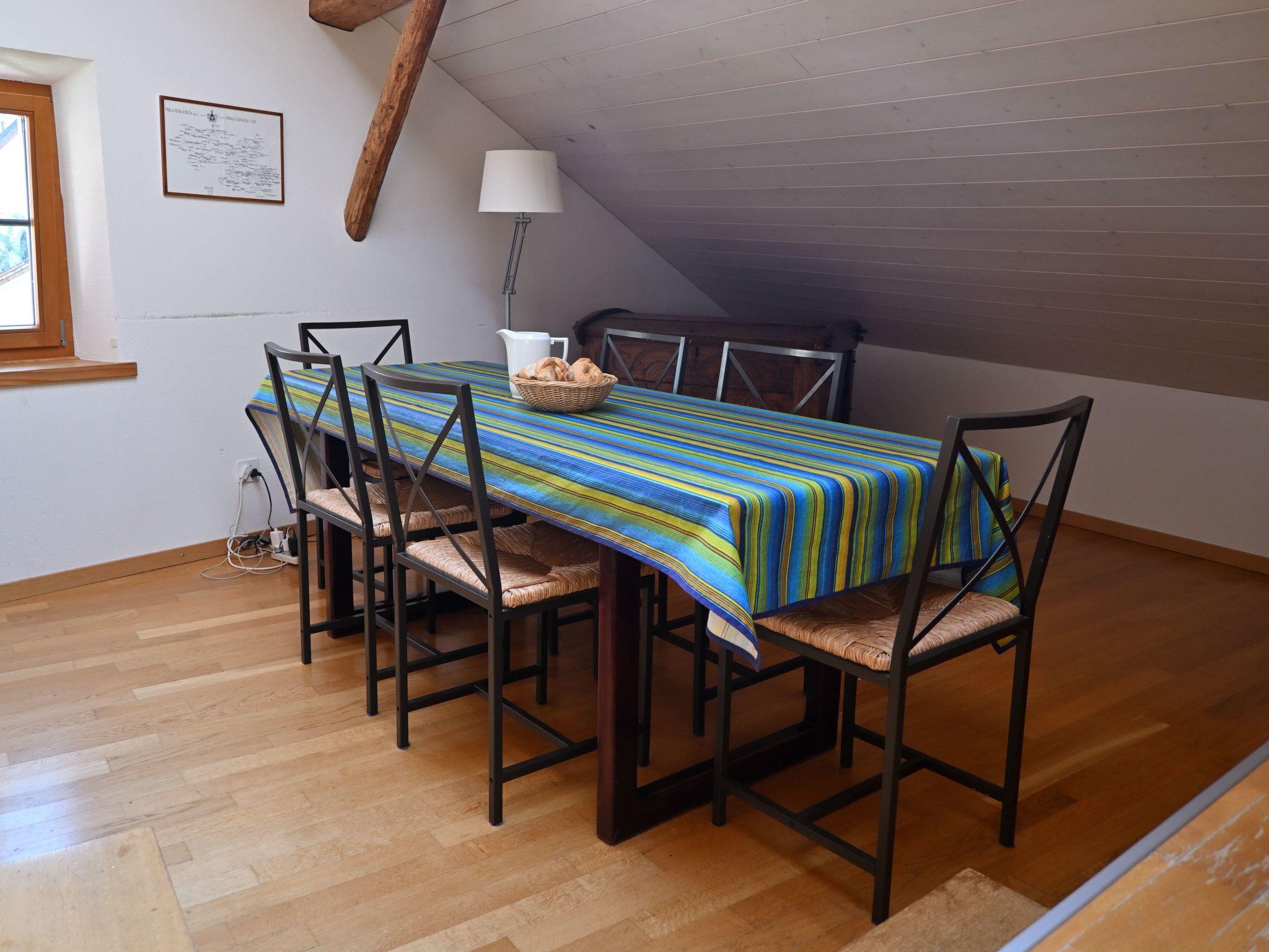 This attic flat was tastefully carved out of the top floor of an Engadin house in 2003 and is located in a quiet, central village square. Just a few minutes' walk from the ski bus stop and the centre.
