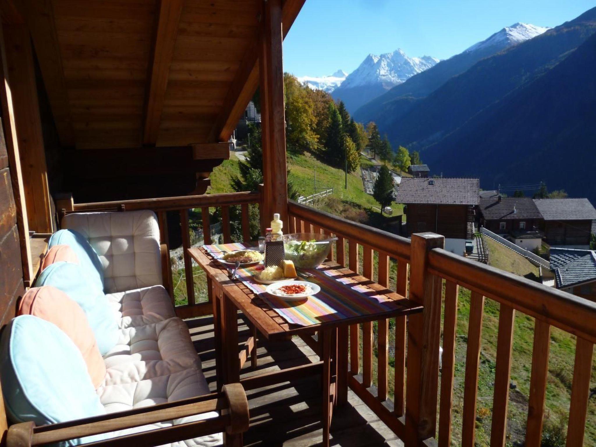 À l'outside, enjoy the Hérens'ensoleillement maximal grâce à ses 5 balcons et une terrasse, offrant une vue imprenable à 180° sur le val d', the Ferpècle glacier, and the majestic surrounding peaks. A private parking space is available in the public car park, ensuring easy, secure access.