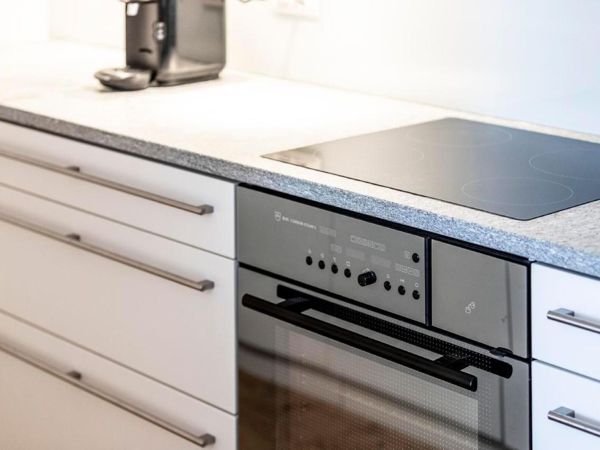 The kitchen is equipped with a dishwasher and a steam oven from Zug as well as a fridge with freezer compartment.
