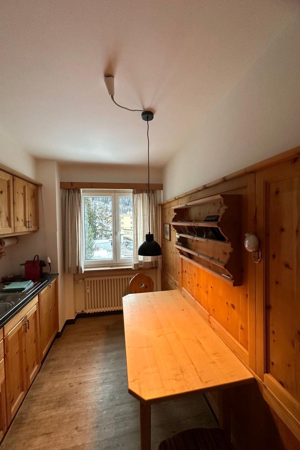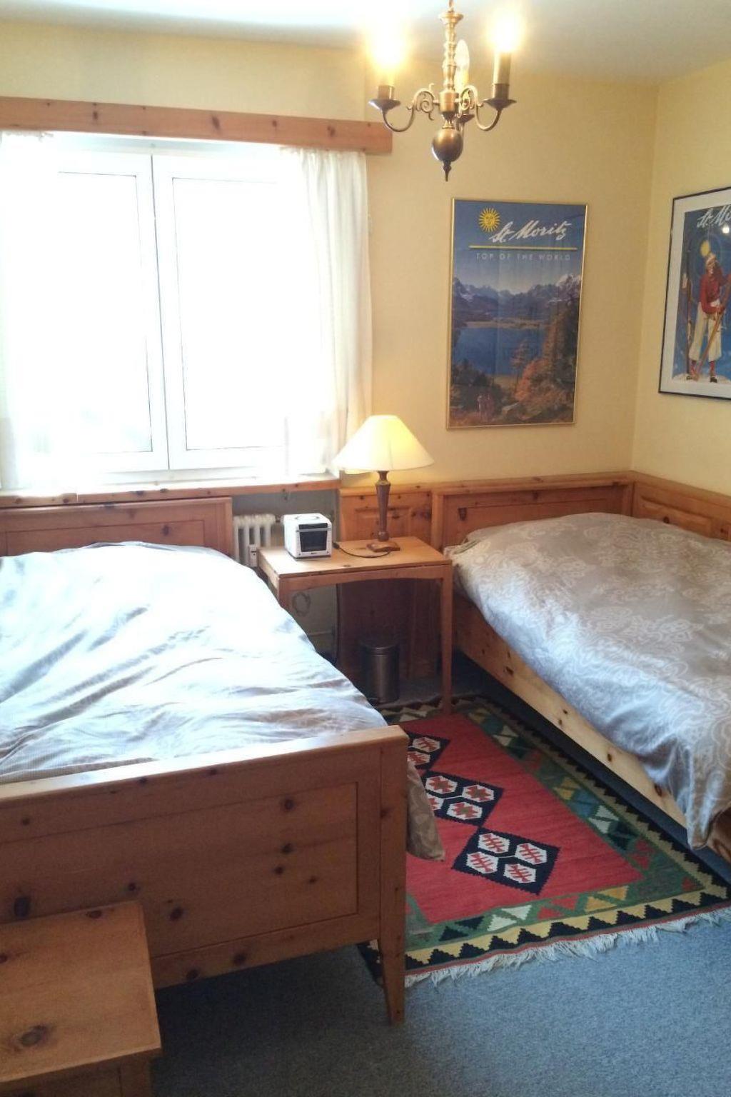 3-room flat (84 m2) on the 3rd floor of a block of flats. Very good location, very central as a starting point for all activities! Flat with living room, 2 bedrooms (1 x 2 single beds, 1 x double bed), eat-in kitchen (small) with dishwasher, microwave, oven, fridge, coffee machine. Bath/WC. Balcony. Sat-TV, internet, W-Lan, radio and telephone. Lift. Ski room and laundry room for shared use. Underground car park is not accessible with roof box or ski rack on larger cars due to the height.