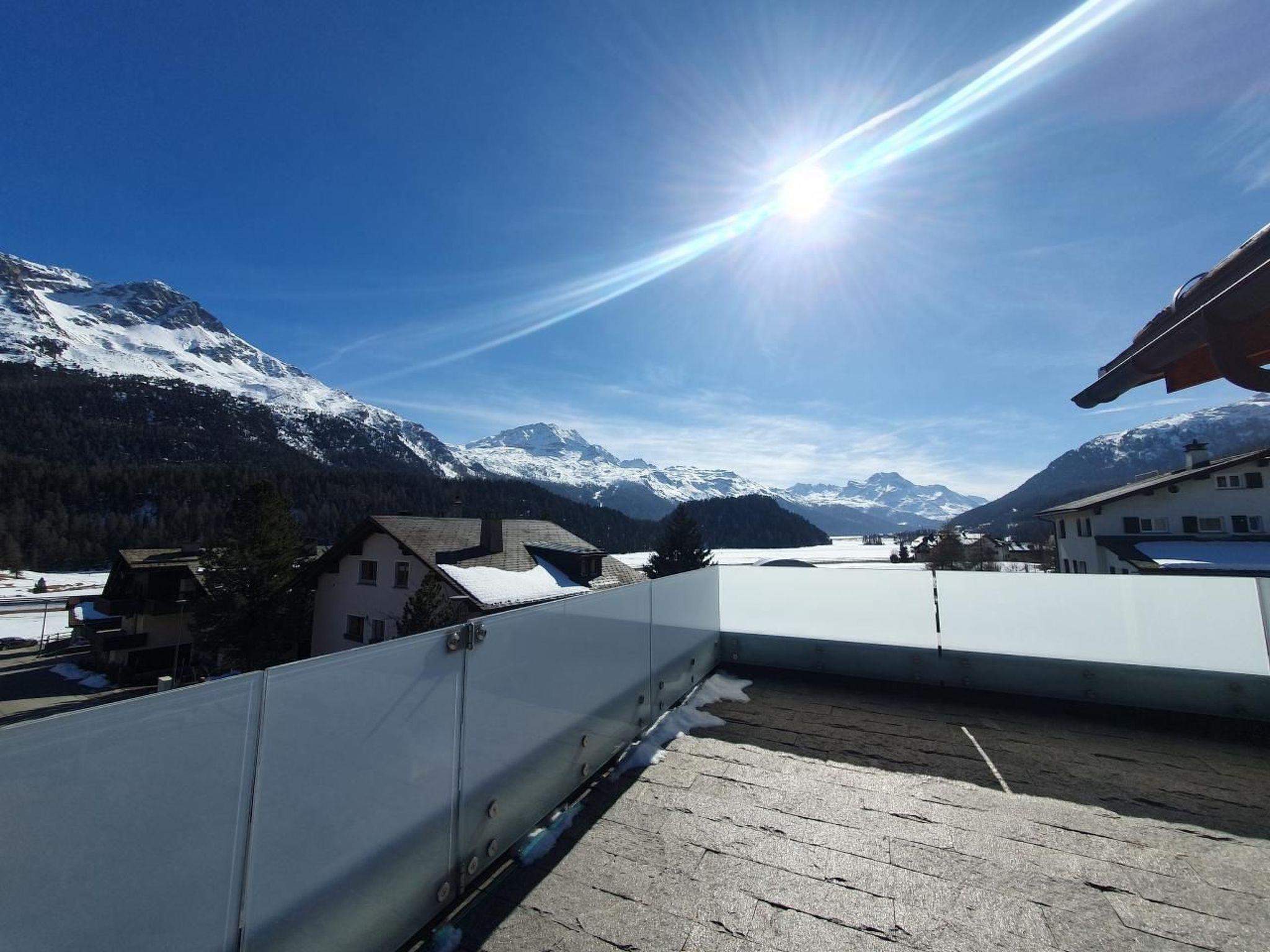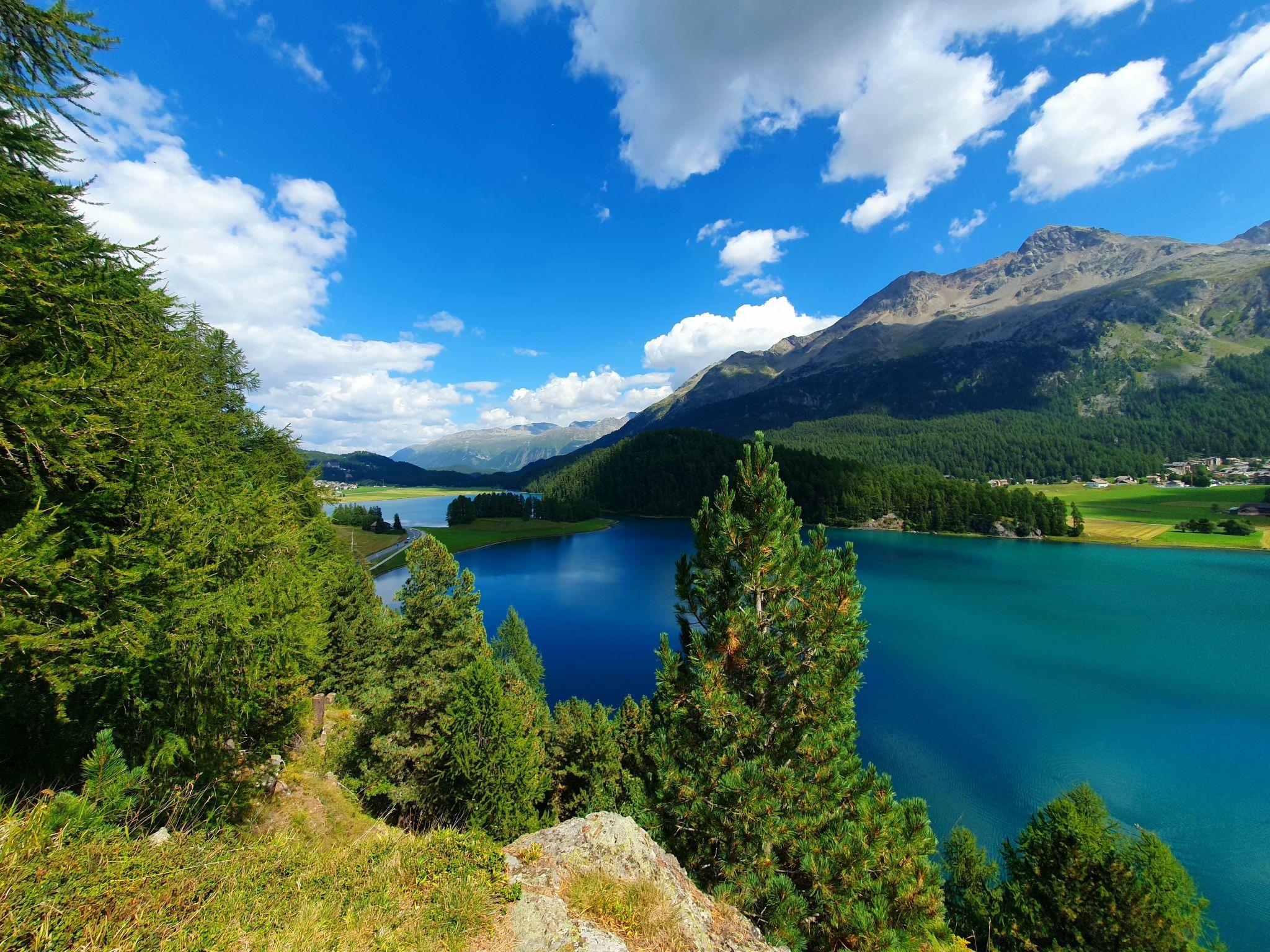 The very bright, quietly located 3.5 room flat (77m2) is on the 2nd floor of an apartment block in the centre of the village of Champfèr. The living room with dining area has a TV and free WLAN. In the large bedroom you will find a comfortable, large double bed and in the smaller room there is a bunk bed. A cot is also available if required. The bright bathroom with window has a bath/shower/WC. From the large terrace (20m2) you have a fantastic view of Lake Champfèr and the Engadine mountains. This is a non-smoking flat. Pets are not allowed. The village shop/post office and the bus stop are only 100 metres away. Cross-country skiing and hiking trails are in the immediate vicinity.