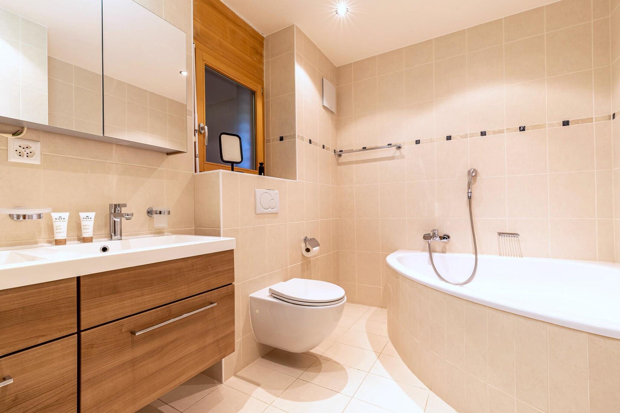 Inbäddat i den lugna skönheten i Veysonnaz, Schweiz, erbjuder denna rymliga 4*+ lägenhet en bekväm oas för upp till 8 personer. Den 110 m² stora boytan har ett mysigt vardagsrum med öppen spis, bäddsoffa, platt-TV med kabelkanaler och DVD-spelare. Det fullt utrustade öppna köket har en keramikhäll, ugn, mikrovågsugn, brödrost, filterkaffebryggare, vattenkokare och diskmaskin, vilket säkerställer att alla dina kulinariska behov uppfylls. Lägenheten har tre sovrum, två badrum och en vidsträckt terrass med panoramautsikt över Rhônedalen. Lägenheten har ett perfekt läge i residenset Hauts de Veysonnaz, och erbjuder direkt tillgång till Veysonnaz skidbacke. Efter en kort promenad är du i backen, redo att åka skidor. Linbanan ligger bara 400 meter bort, och det finns butiker och fritidsaktiviteter 1,3 km från boendet. Residenset är omgivet av natur och ligger också nära vandringsleder, vilket ger friluftsentusiaster oändliga möjligheter till utforskning. Anläggningen har hiss, bastu och tvättmöjligheter för extra bekvämlighet. Ytterligare bekvämligheter inkluderar en privat parkeringsplats, skidrum och tillgång till en allmän pool under sommar- och vintersäsongen. För extra komfort kan du välja tjänster som sängkläder, handdukar och slutstädning (tillgänglig mot en extra kostnad). Residenset erbjuder också olika aktiviteter genom programmet Sun&Fun under högsäsong, tillsammans med rabatter på uthyrning av utrustning. Husdjur är inte tillåtna, och det finns en obligatorisk deposition som släpps efter din vistelse.