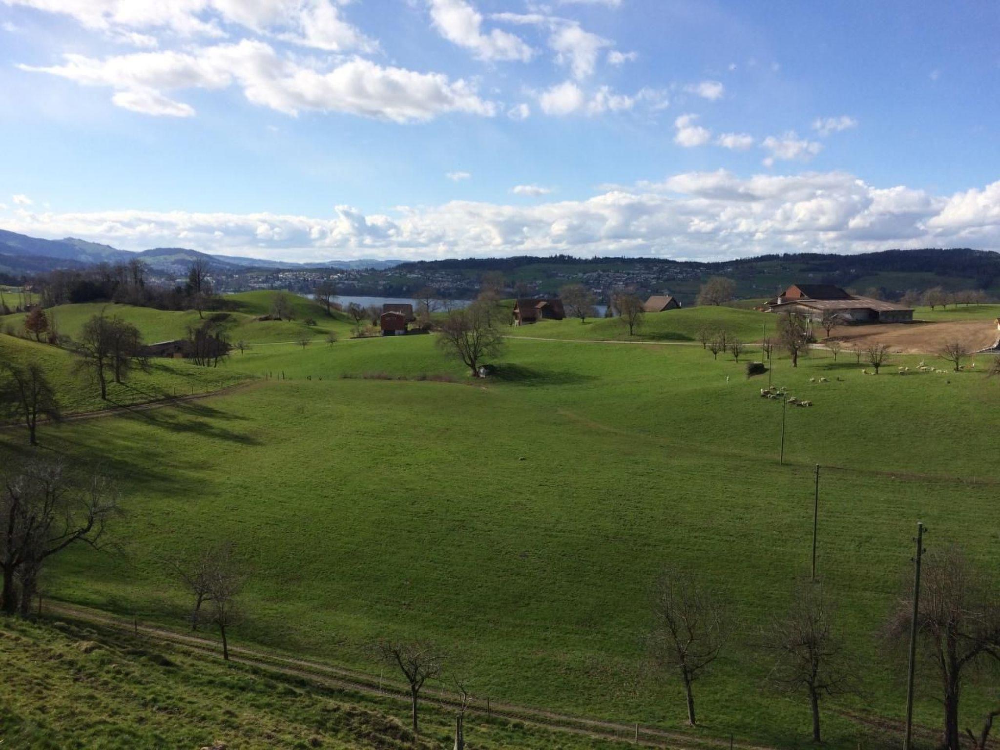Our beautiful holiday flat is situated in a very quiet location directly on the hiking trail and forest above Weggis We rent a bright 4.5-room flat on two floors: bright living room with dining room, 2 bedrooms each with a double bed (1.60 cm), 1 bedroom with futon bed (1.60 cm) and air conditioning, well-equipped kitchen with Nespresso machine, without dishwasher, spacious bathroom with bathtub and toilet. New terrace with wonderful lake view. Seating area under the tree can be shared. WLAN available. Special feature: the bedrooms have no doors. They are separated by curtains. The flat is located at the end of a feeder road with no through traffic. Very quiet and a paradise for children. Weggis on Lake Lucerne with its large hiking area (Rigi), indoor swimming pool, boat trips, mountain railways and folklore offers relaxation and fun. Riding facilities at the neighbour. You can reach the centre of Lucerne in 40 minutes by boat from Weggis.