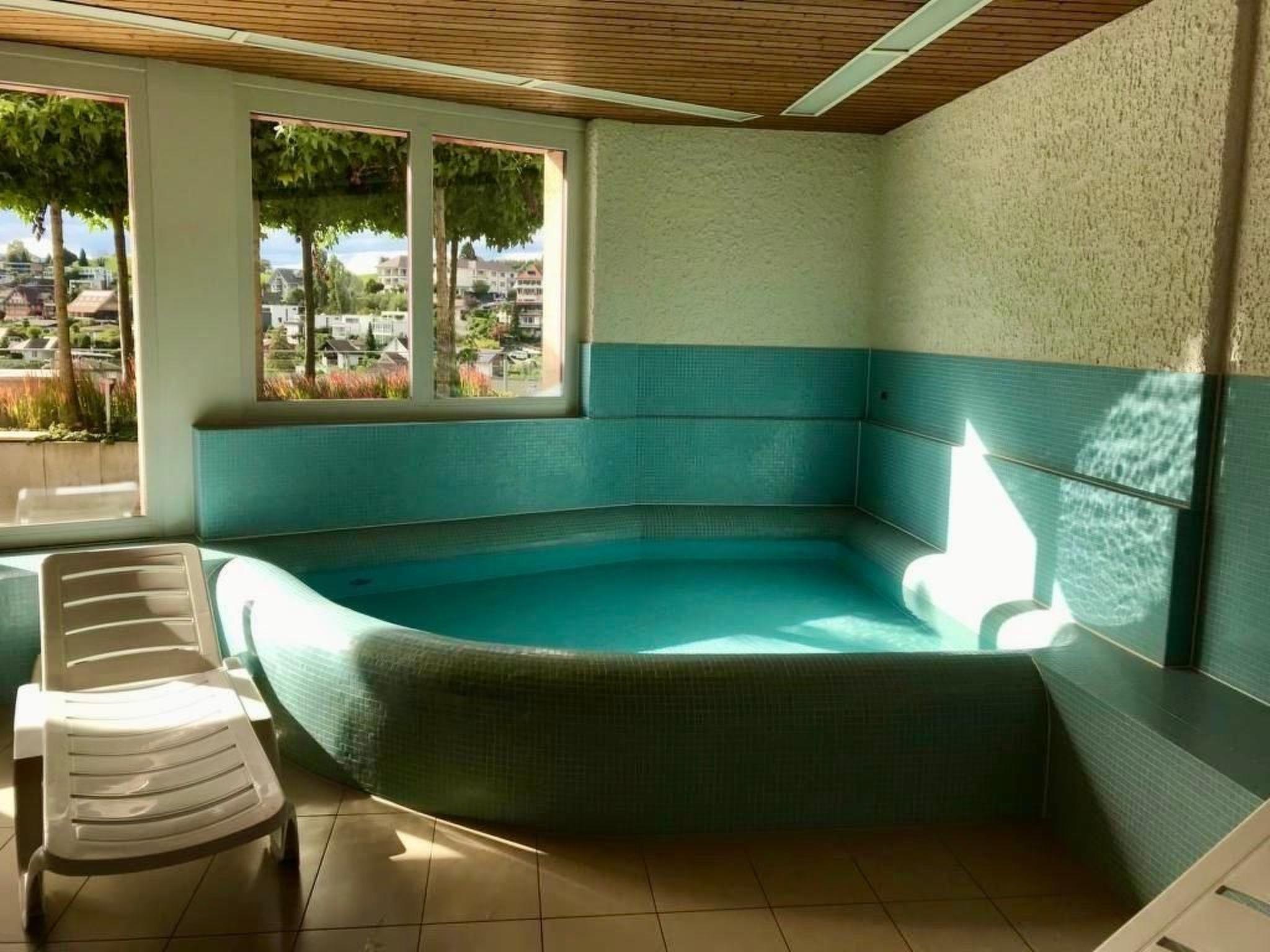 Holiday flat with a view of the mountains. 2-room flat, approx. 75 m2, with two balconies with a beautiful view of the lake and mountains, approx. 400 metres on foot to the wonderful promenade on Lake Lucerne in Weggis, the flat has a bedroom with a double bed, a bunk bed (180x90) and a wardrobe. In the living-dining room there is a dining table with corner bench and 3 chairs for up to 6 people. There is also a pull-out bed in the living room for another person. You can watch TV comfortably on the cosy upholstered furniture. From the balcony you have a stunning view of Lake Lucerne, Pilatus and the beautiful mountain landscape of this region.the new kitchen offers a glass ceramic hob for 4 pans, refrigerator with large freezer compartment, microwave, Nespresso capsule coffee machine, raclette and fondue dishes and everything necessary for daily use.bathroom with toilet, double washbasin and shower. Washing machine and tumble dryer can be used in the communal area. The Restaurant Alpenblick is right in the house and you can enjoy the best of the region on your plate. A visit is definitely an experience. The breathtaking view of Lake Lucerne, the mountains and an unforgettable sunset invite you to linger, and the hotel's indoor pool can be used free of charge. Sauna, solarium and heat cabin can also be used for a fee.A cot/baby bed and chair can be provided. (Please book in advance!)The flat has a parking space in the garage, which can also be used.