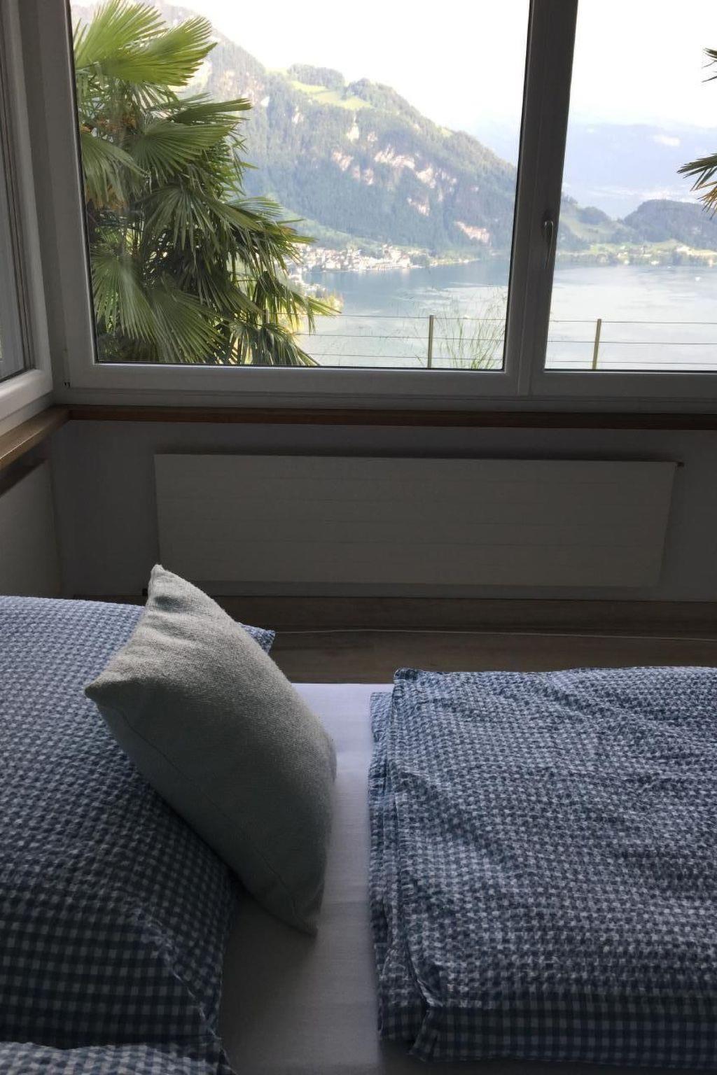 The flat is located in a two-family house at the foot of the Rigi, just outside Weggis in a quiet, sunny hillside location. Patio with garden furniture and garden can be used. Driveway up to the house. Grocery shops and bakery in Weggis or Vitznau (4 km), Rigi cable cars Vitznau and Weggis (4 km). Nearest bus stop and lake shore 1.5 km. (Travelling by car only recommended). Wonderful hikes possible directly from the house.