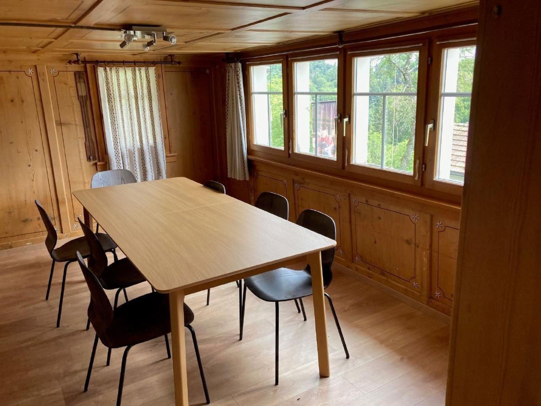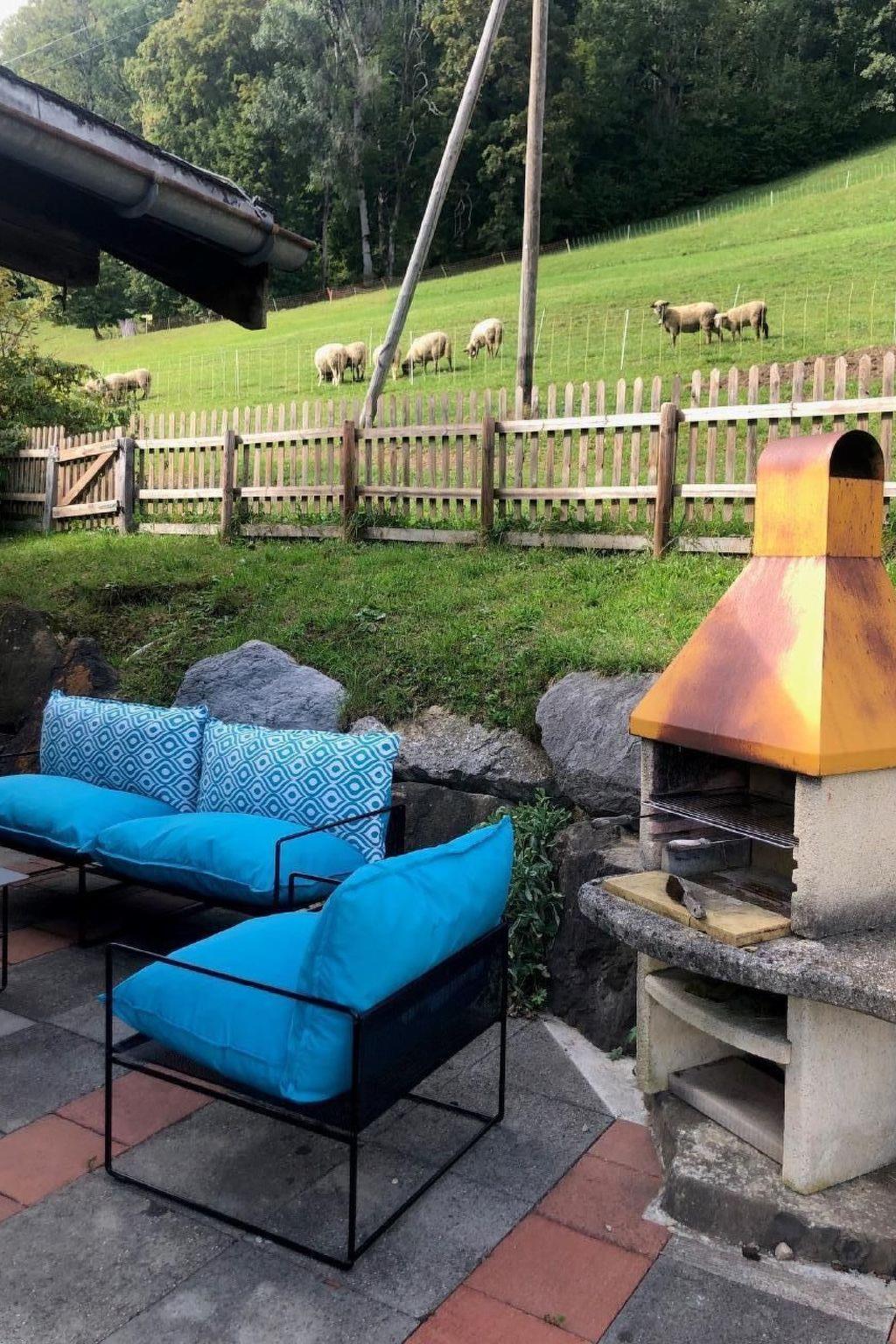 Cosy, rustic flat (part of the house) in a typical Toggenburg house with tiled stove. Garden and heated bathing fountain 2x3m (eco-pool system). Near village centre, ski bus station 100m, bus station and shopping facilities 300m. 3 bedrooms with a total of 10 individually stackable beds. TV room with Blue-Win TV with sofa bed. Kitchen with ceramic hob, dishwasher, oven, microwave, Nespresso machine, etc. with dining table for approx. 5 people, living room with dining table for up to 12 people. Bathroom with bathtub and WC, bathroom with shower and WC. 1 outdoor parking space, additional parking spaces by arrangement and for a fee. Washing machine and tumble dryer for sole use. Free WLAN. Bed linen and towels included. No pets allowed, non-smoking flat. Children welcome, cot can be provided on request.
