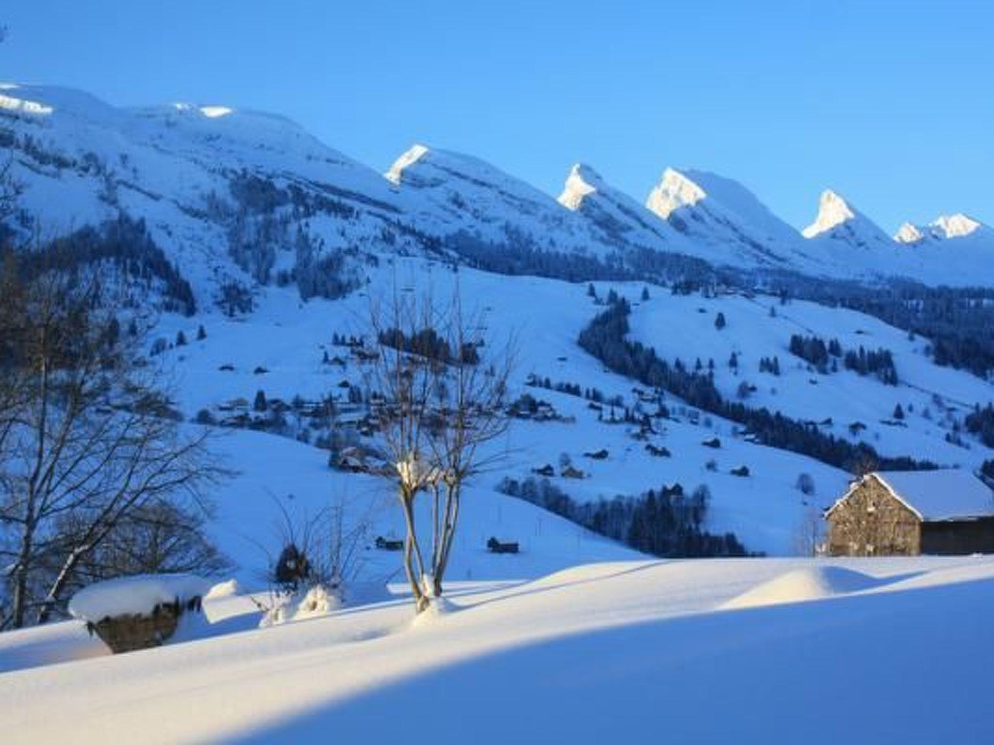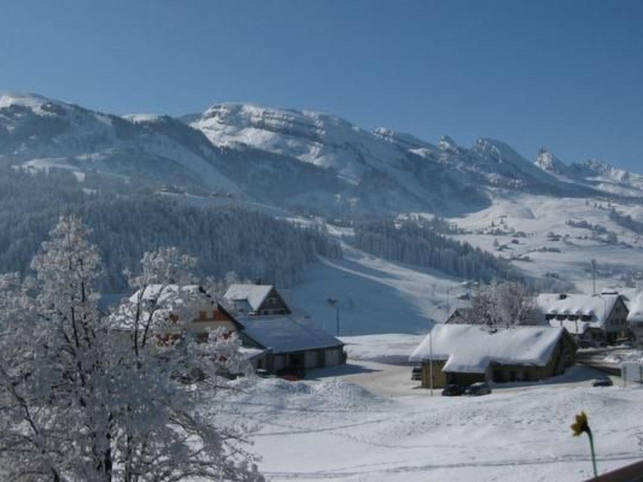 Furnished 3-room flat (80m2), newly renovated in 2017, with separate kitchen, living room with seating area and dining area, 1 bedroom with double bed, 1 bedroom with 2 single beds, 1 bathroom with bath/shower/WC. Fireplace and satellite TV, DVD, and radio. Free W-LAN. Garage and car park. Balcony with view of the Säntis. Summer: seating area with sunbathing lawn, trampoline and children's swing. The flat is located in a detached holiday home. Direct access to the ski slope.