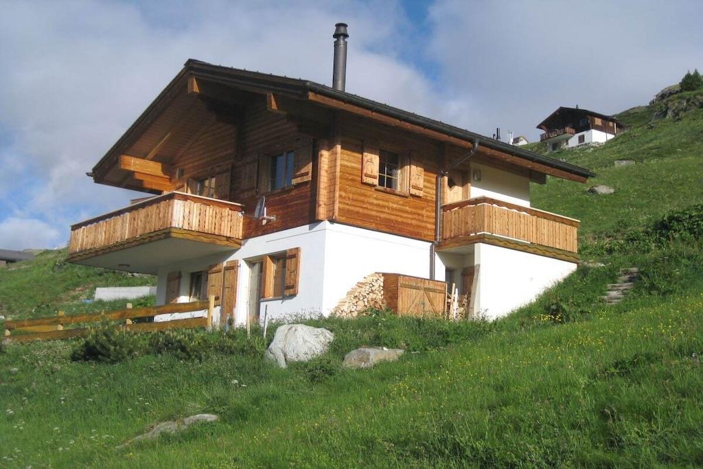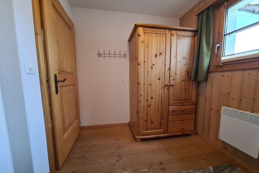 "Chalet Paul" byggdes ny år 2001. Det erbjuder idealiska förutsättningar för en avkopplande semester sommar eller vinter för upp till fem personer. Bottenvåningen har tre sovrum och ett badrum med badkar/dusch och golvvärme. Bastun nås från badrummet. Från det ljusa och välkomnande vardagsrummet på övervåningen, och särskilt från balkongen, som vetter mot söder och väster på två sidor, kan du njuta av en imponerande utsikt över Valaisbergen. Matplatsen med en hörnbänk och sittgruppen med öppen spis garanterar mysiga timmar oavsett väder. En 32-tums Smart-TV med en Swisscom Internet TV Box (mer än 100 kanaler från Schweiz, Tyskland och Österrike), ett Bose Soundtouch internetmusiksystem med radioknappar och en telefon kompletterar möbleringen.