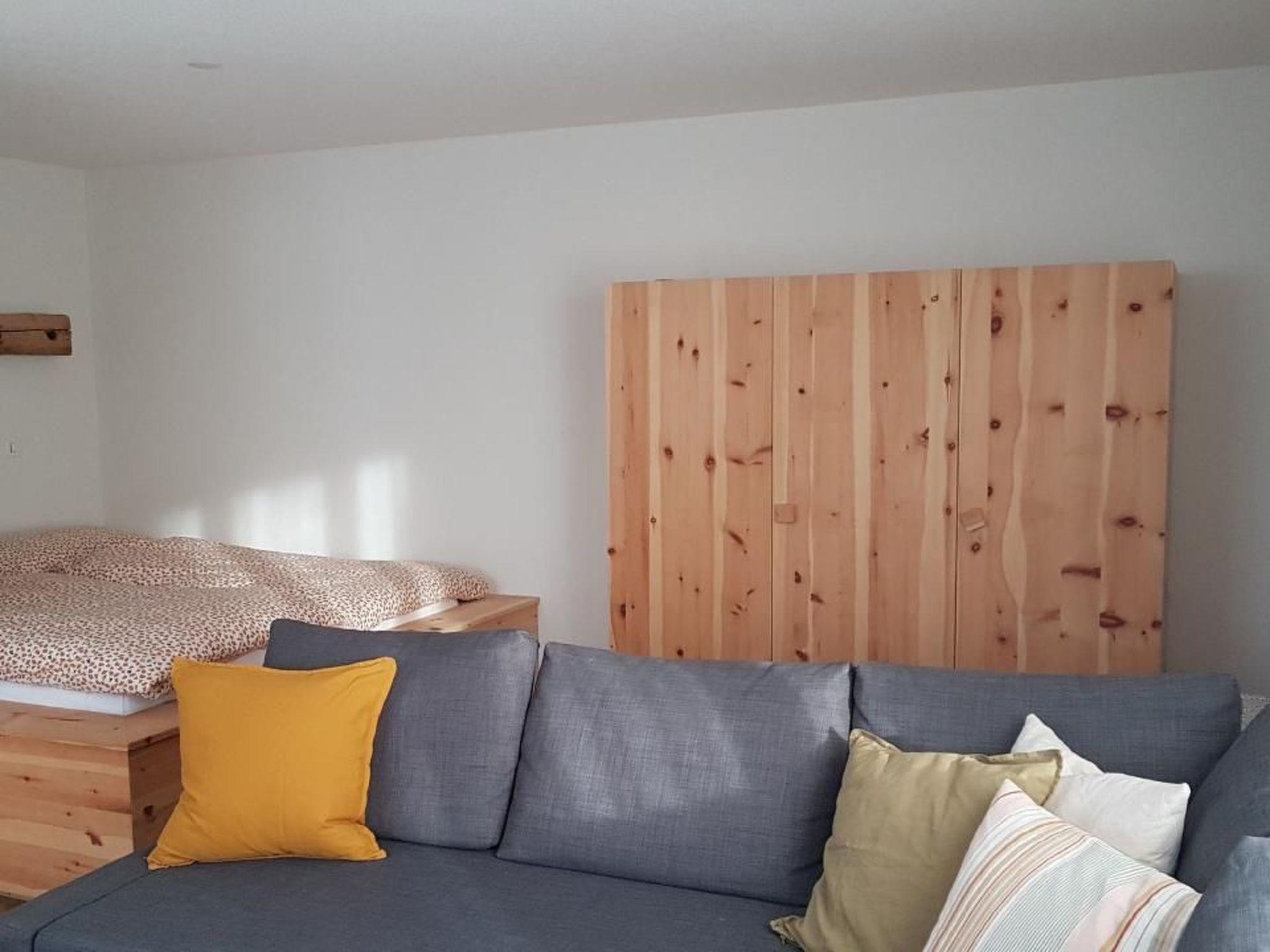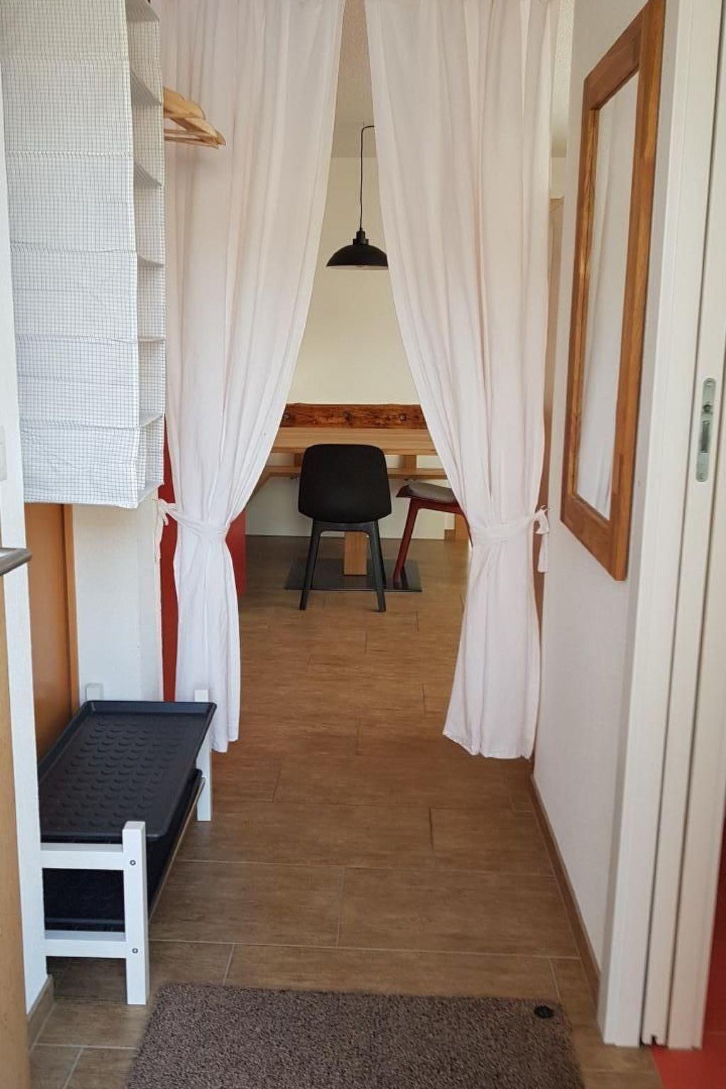 Other bedroom furnishings (bedroom 1): Bedroom and living room are in one room. The double bed is only accessible from the foot end. The bed is not suitable for people with physical disabilities.