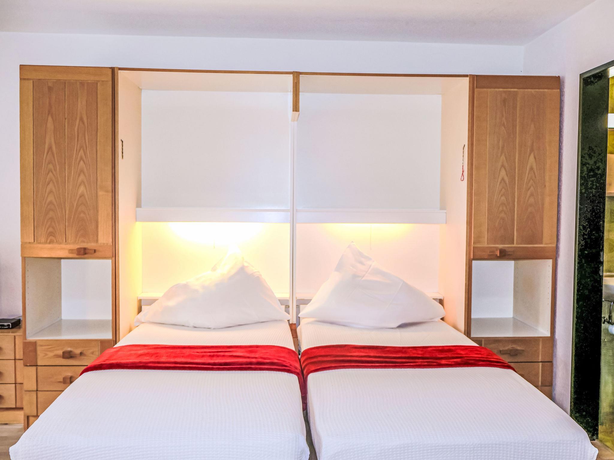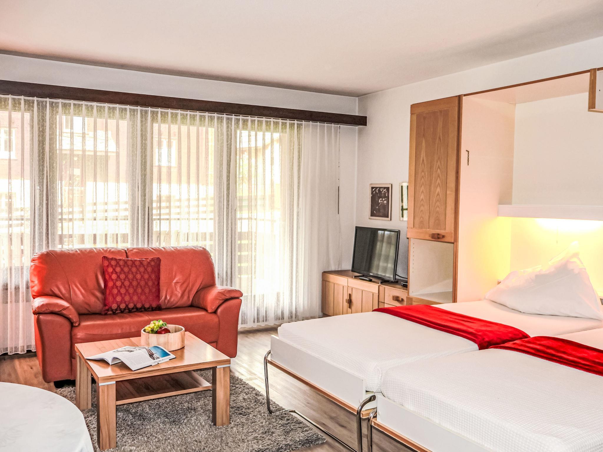 "Pasadena 5", 1-room apartment 25 m2 on 1st floor. Bright, tasteful and cosy furnishings: living/sleeping room with 2 fold-away beds (90 cm, length 200 cm), dining table and digital TV. Exit to the balcony. Kitchen in the entrance (oven, dishwasher, 4 ceramic glass hob hotplates, toaster, kettle, freezer, electric coffee machine). Bath/WC. Parquet floors. Balcony. Balcony furniture. Side view of the mountains and the Matterhorn. Facilities: hair dryer. Internet (WiFi, free). Please note: non-smokers only.