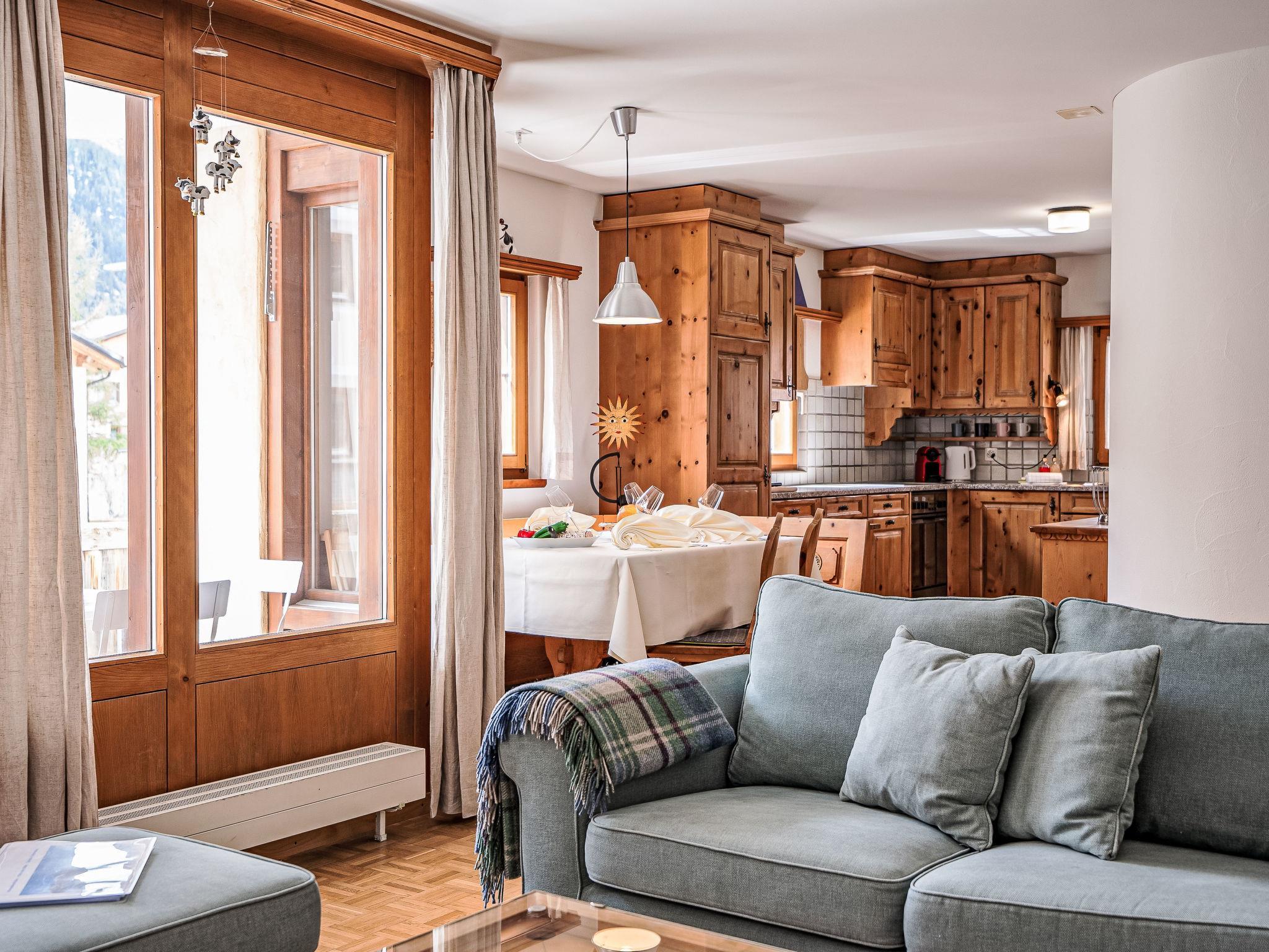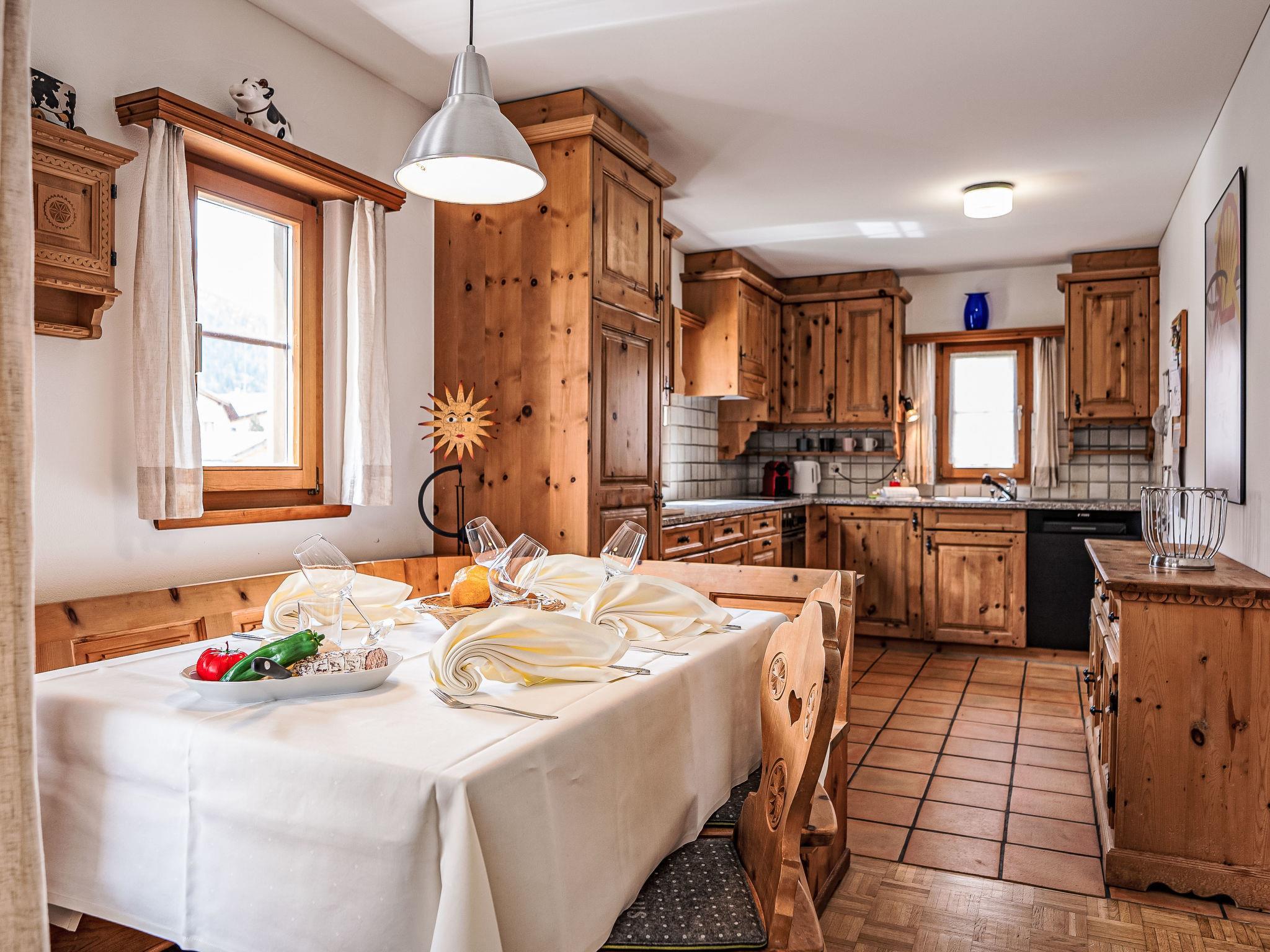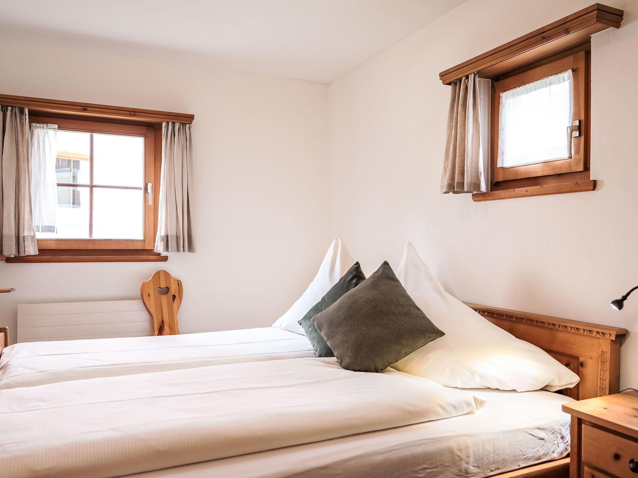 "Chesa Mezzaun", 3-room apartment 98 m2, on the ground floor. Very comfortable and beautiful furnishings: living/dining room with open-hearth fireplace and TV. Exit to the balcony, south facing position. 1 double bedroom with 1 french bed (1 x 160 cm, length 195 cm). 1 double bedroom with 1 french bed (1 x 160 cm, length 190 cm). Open kitchen (4 hot plates, oven, dishwasher, toaster, kettle, freezer, electric coffee machine, Capsules for coffee machine (Nespresso) extra, raclette grill, fondue Set (cheese)) with dining nook. Bath/bidet/WC, sep. WC. Heating. Balcony furniture. Side, of the mountains and the resort. Facilities: hair dryer. Internet (WiFi, free). Garage space n 48, height 205 cm, width 200 cm. Please note: non-smokers only. Maximum 1 pet/ dog allowed.