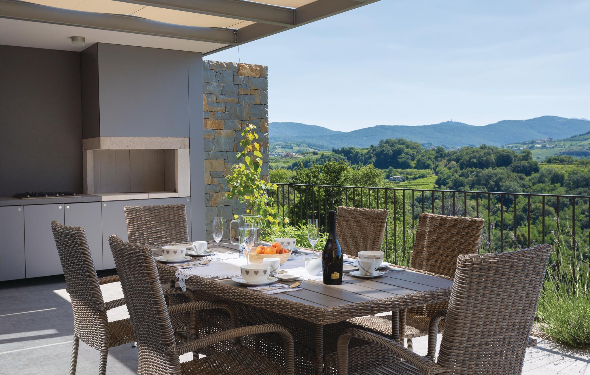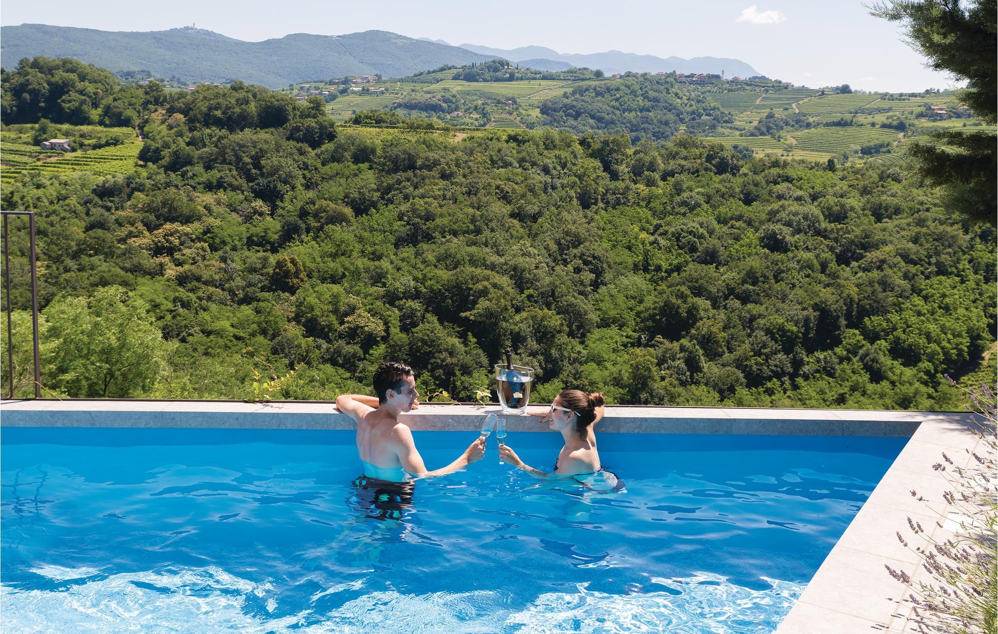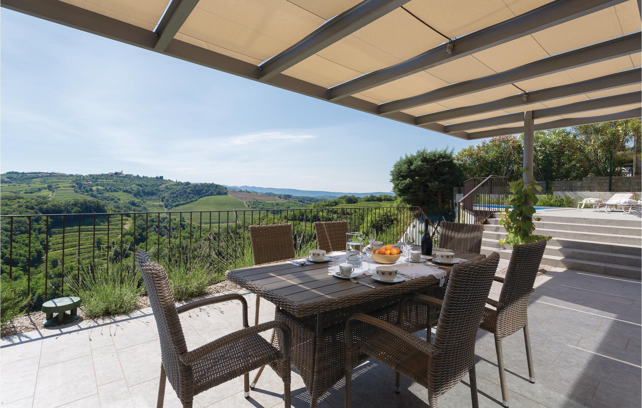 Detta lyxiga och eleganta semesterhus ligger i en lugn, idyllisk by med mer än 10.000 m² mark omgiven av fruktträd, olivlundar och vingårdar. Under varma sommardagar kan du ta ett uppfriskande dopp i poolen. För fullständig avkoppling kan du njuta av finsk och infraröd bastu samt bubbelpoolen, från vilken du kan njuta av en fantastisk utsikt över de omgivande kullarna. Huset är utrustat med en smartboard, ett ljudsystem och luftkonditionering ansluten i hela huset, vilket ger maximal komfort. Du kan ordna frukostservice eller provsmakning av olivolja, vin och mousserande vin med ägaren. Husets läge är idealiskt för utflykter till grannlandet Italien eller till de naturliga skönheterna i det omgivande området: Kocjan- och Postojna-grottorna, Triglav National Park eller den magiska Bohinj-sjön.