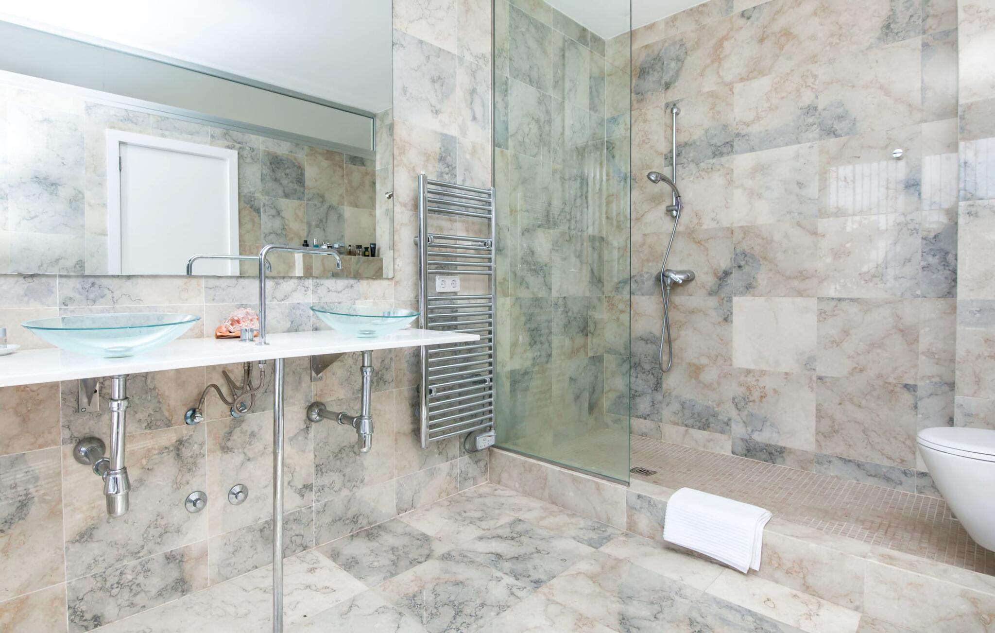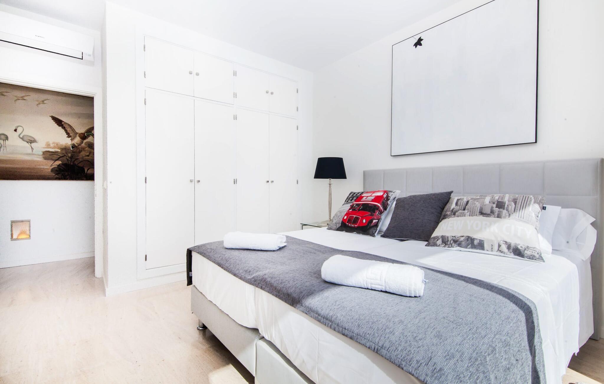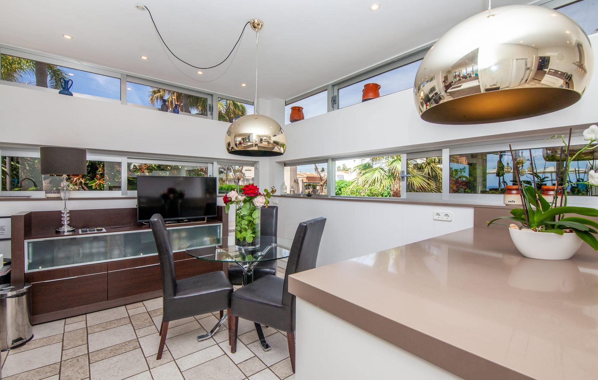 Och som om Bay Blue inte redan hade mycket att erbjuda, är det också värt att utforska området på egen hand. En promenad genom de typiska Medelhavsgränderna i den lilla staden Badia Blava, till exempel, som du kan nå till fots på bara några minuter, kommer snabbt att få dig att glömma det dagliga arbetet. Även om villan ligger i ett bostadsområde och nära Ma-6014 är det underbart lugnt. Bukten Bahia Azul (en del av Badia Blava), som betyder blå bukt, är en garanti för avkoppling och erbjuder en fantastisk utsikt över huvudstadens strandpromenad och det öppna havet. Vattnet är oftast vackert klart och passar perfekt för alla typer av vattensporter, inklusive snorkling och dykning. Och det finns många andra stränder i området, den vackra stranden Es Trenc och stranden Sa Rapita kan nås på ca 10-15 minuter med bil. Den lugna bukten Cala Pi ligger ca 15 km bort. För den som vill ha det lite livligare ligger Playa de Palma i Arenal eller Can Pastilla ca 10 minuter bort med bil. Och för dem som inte älskar vattnet erbjuder de omgivande städerna gott om möjligheter till shopping, restauranger och sport.
