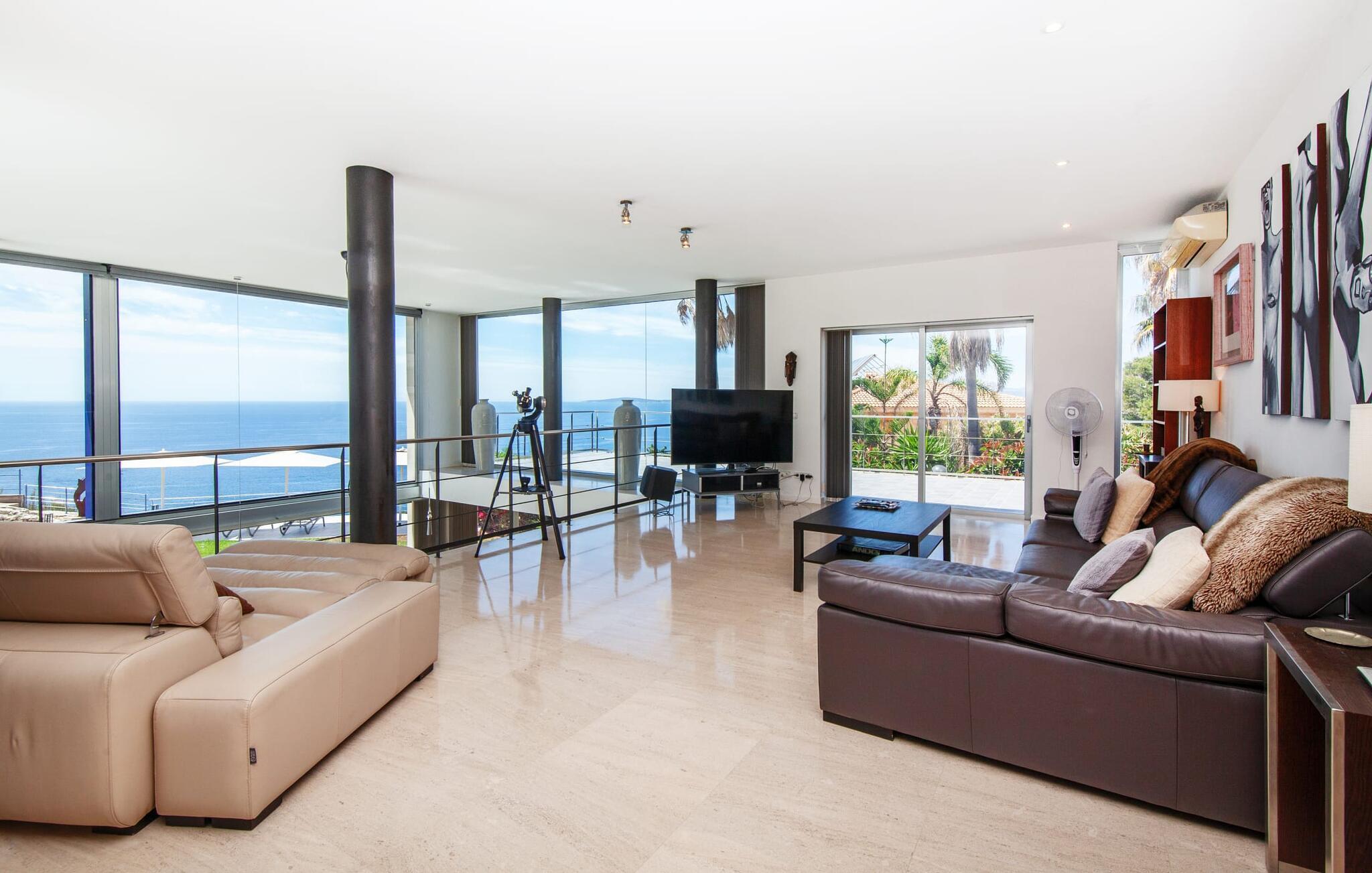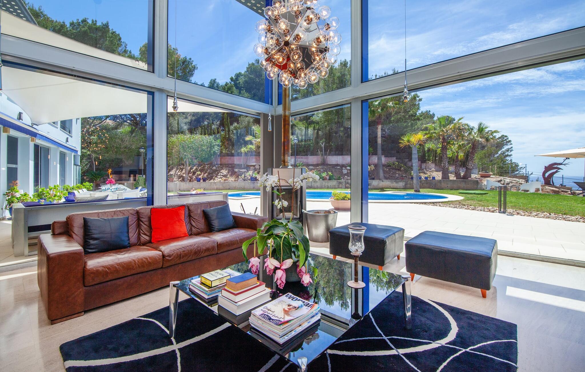 Denna juvel lever upp till sitt namn: ett semesterhus som en privat vik, belägen på en terrasserad platå med magnifik havsutsikt. Den stolta poolen med varierande djup och en diskret grekisk trappa är inte den enda blå detaljen som lyser här! Varje detalj har uppmärksammats, till och med fasaden, som imponerar med sina panoramafönster som sträcker sig upp till det platta taket, har en blå ram som perfekt matchar bilden av denna sommarvilla. Terrassen är delvis täckt med en praktisk markis och ett mörkblått parasoll, så att huden får en kort paus från solen innan du drar ut solstolen på den gröna gräsmattan eller gör dig bekväm på träterrassen vid poolen för att läsa din favoritroman och lyssna på de mjuka vågorna. Eller sätt dig på räcket och njut av utsikten i fjärran. Så snart du blir hungrig kan du använda den mobila kolgrillen för att trolla fram en utsökt måltid eller två. Det vackra uteserveringsbordet direkt på terrassen är en särskilt lämplig plats att äta på!