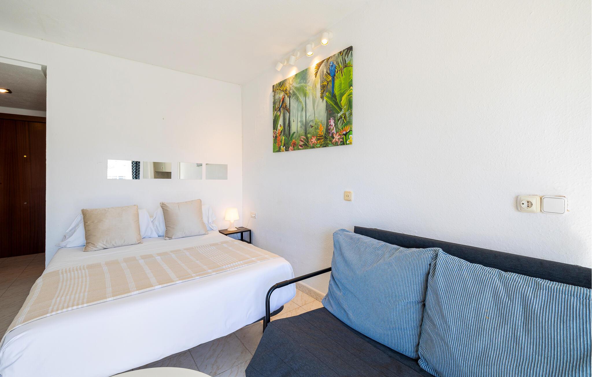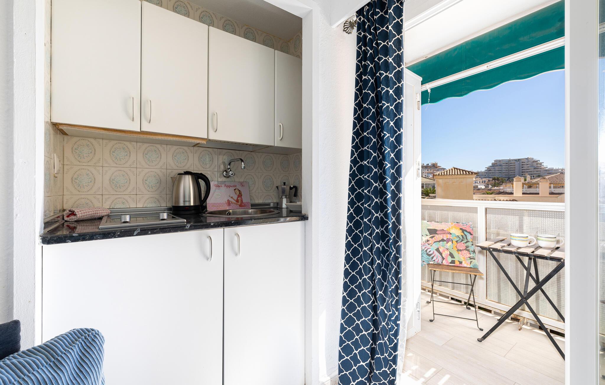 Din kompakta semesterlägenhet erbjuder dig den perfekta miljön för en avkopplande semester under södra solen. Här finns plats för ett par eller en liten familj. Börja dagen med frukost i matsalen eller på terrassen och njut av utsikten över stadens takåsar till bergen.