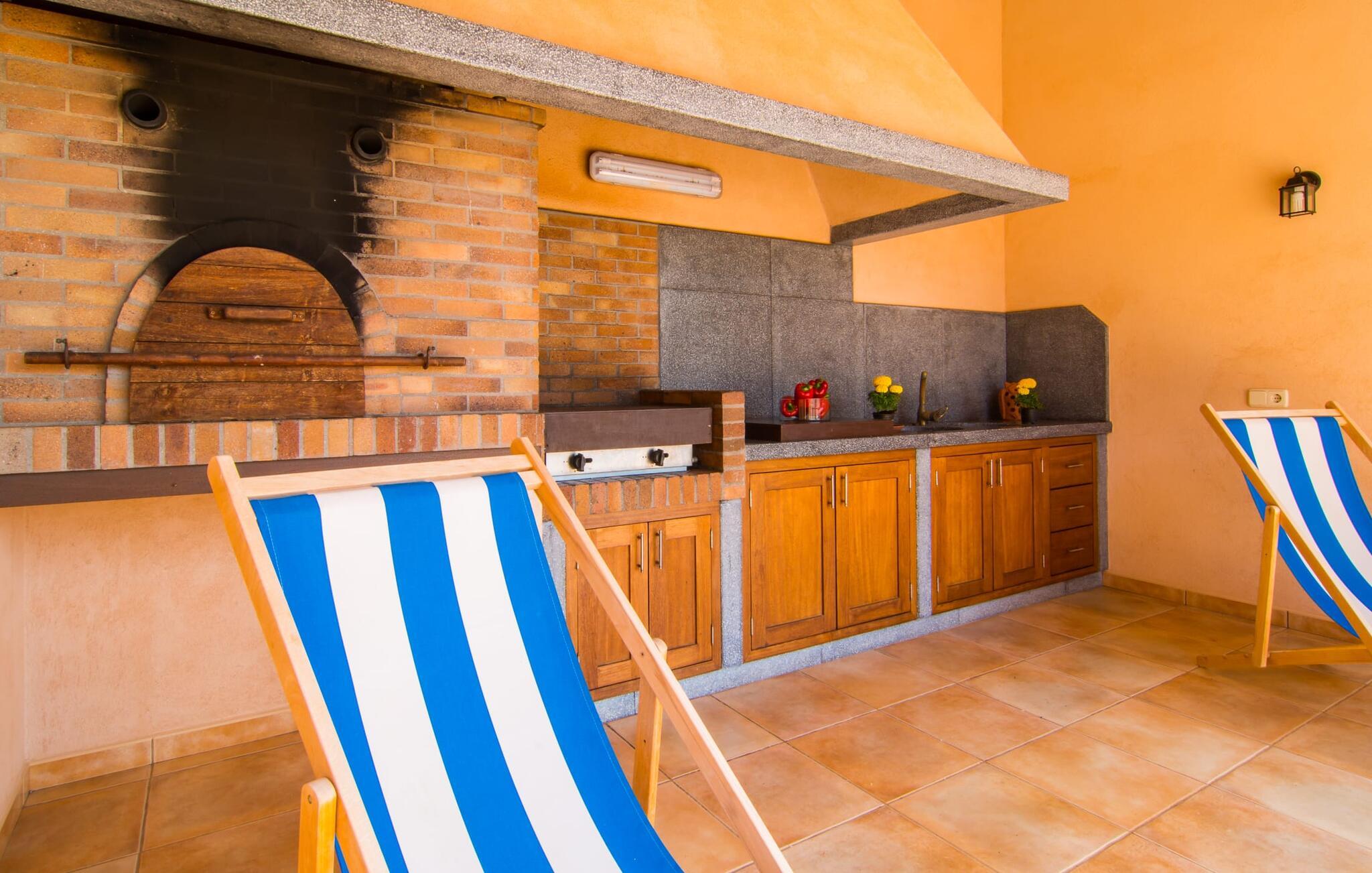 Den rymliga täckta terrassen erbjuder skugga och skydd, medan poolområdet med sin solterrass, många sittplatser och utomhuskök inbjuder dig att koppla av och ha kul. Njut av dina måltider vid det stora matbordet eller laga en grill med färska lokala ingredienser. För mer aktiva stunder kan du prova bordtennisbordet eller bara koppla av på solstolarna.