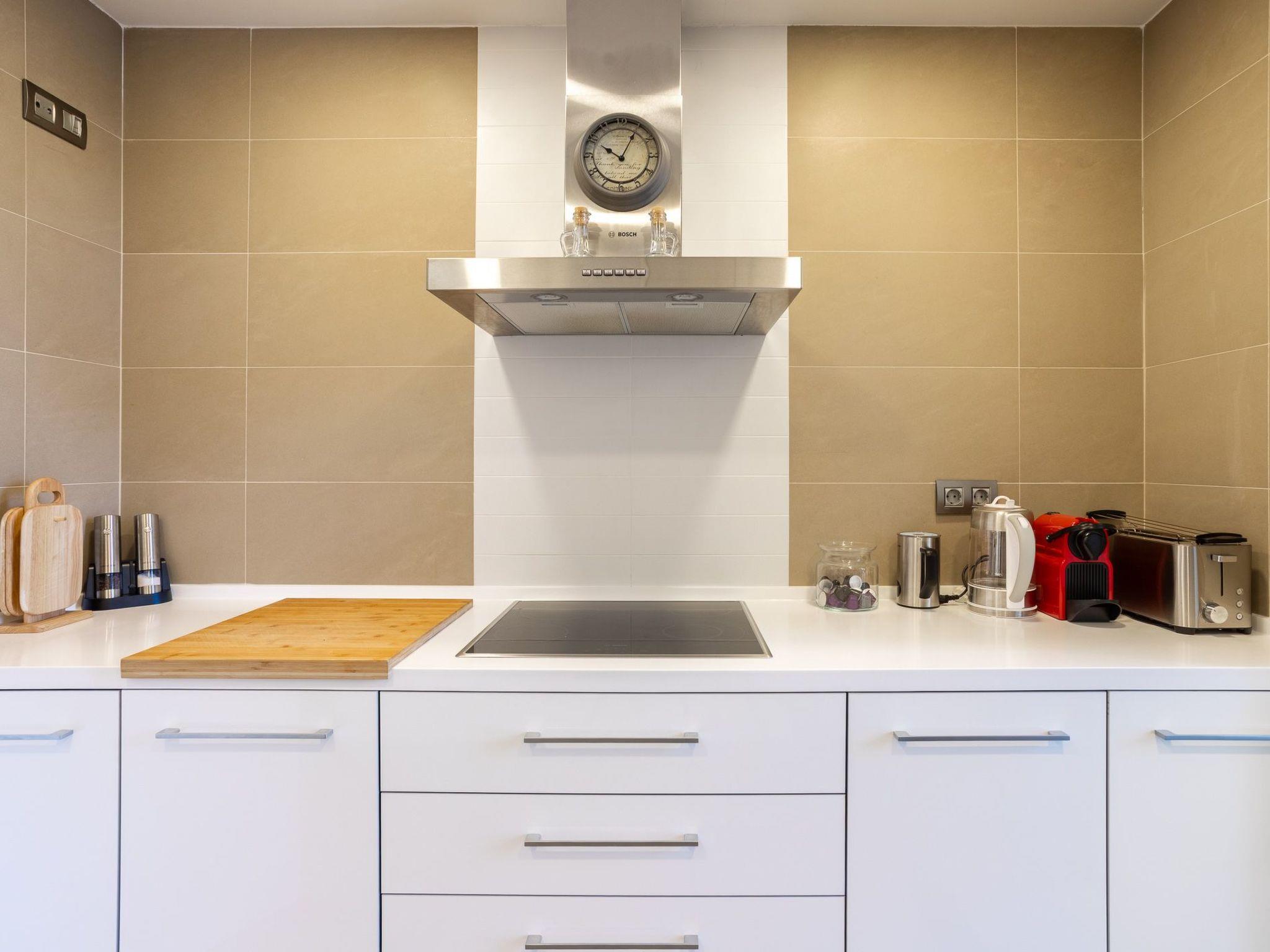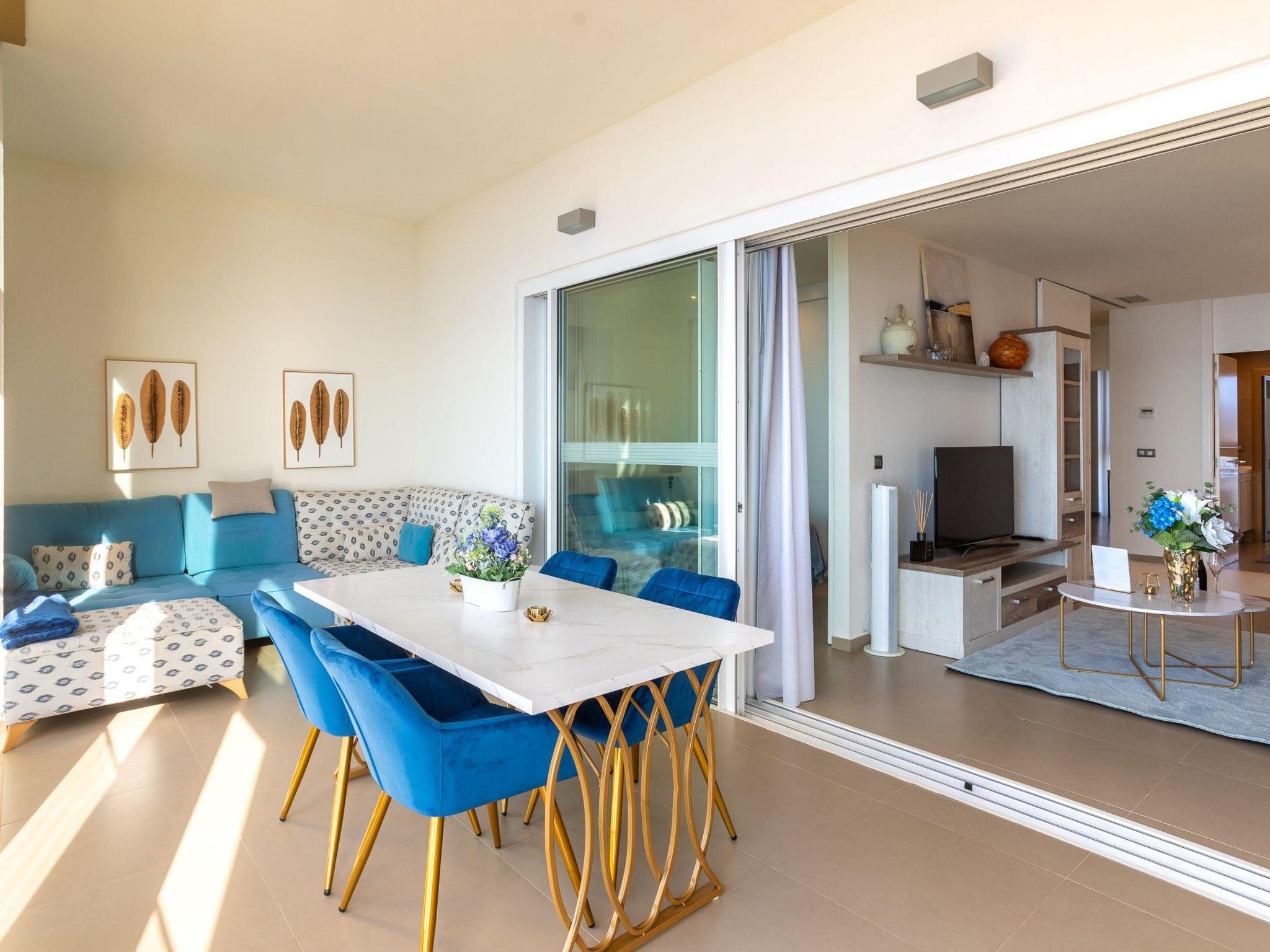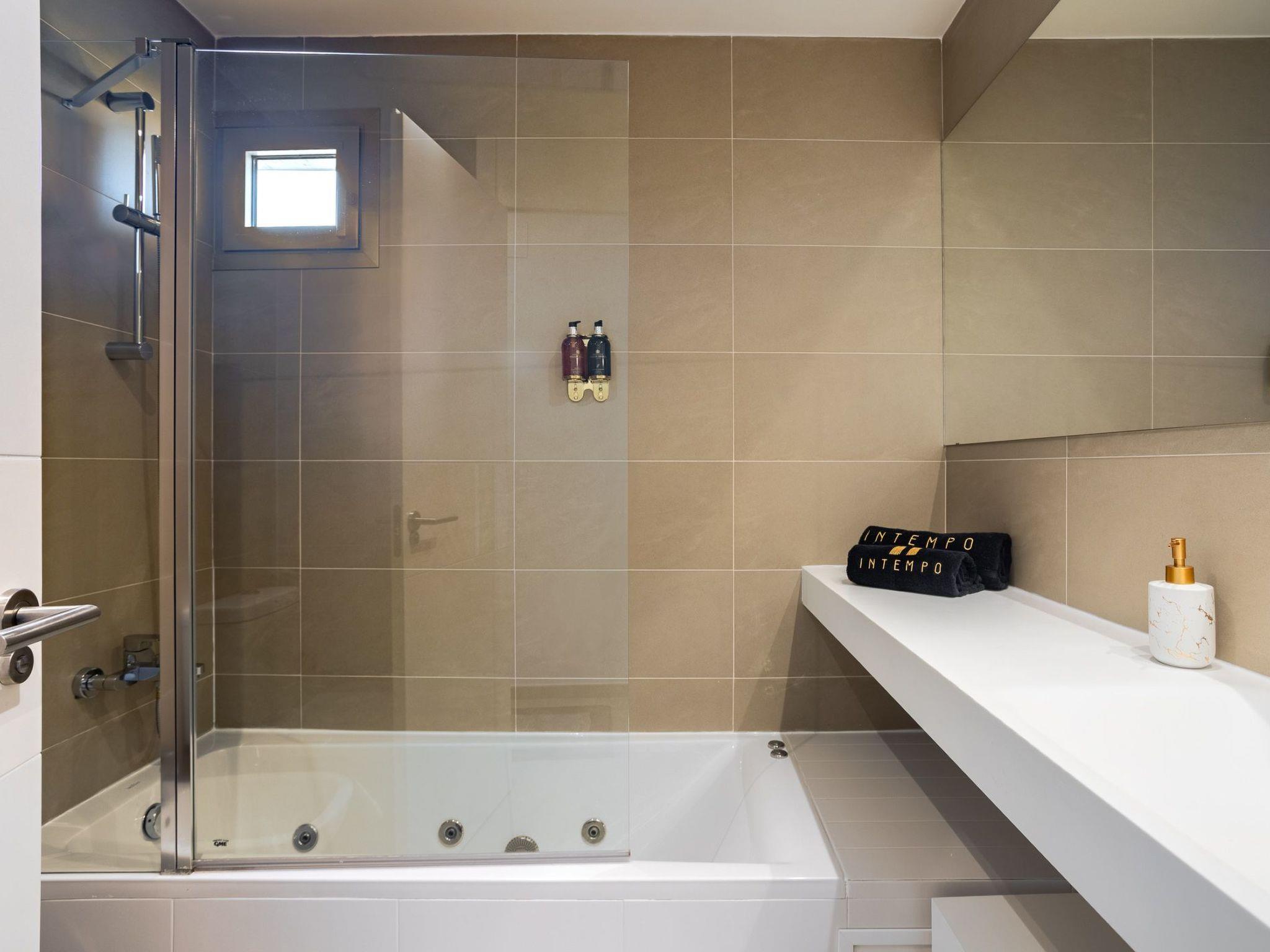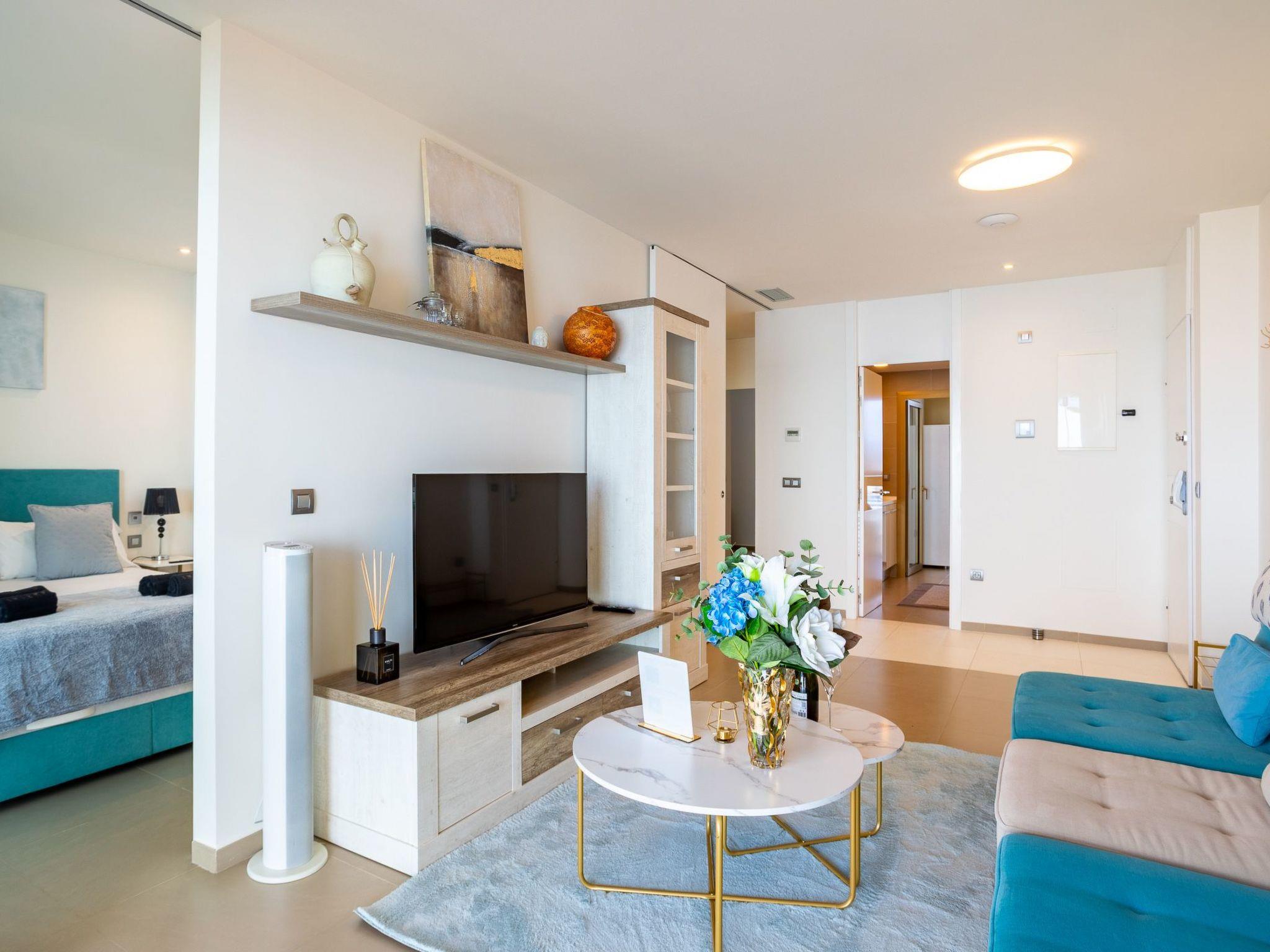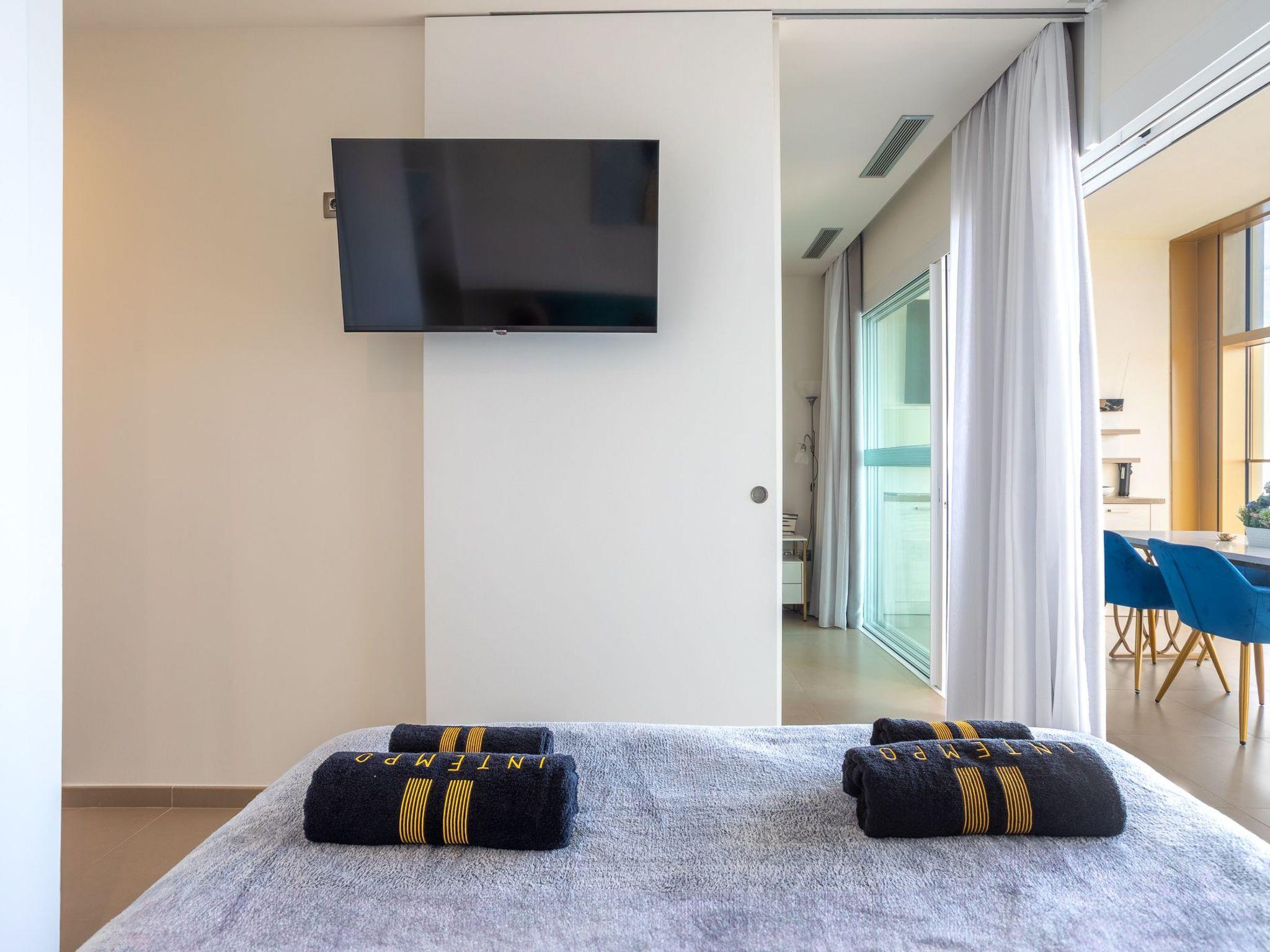 Inside, the flat welcomes you with two spacious bedrooms and two bathrooms designed for ultimate relaxation. The coastal-coloured rooms are flooded with natural light and offer a stylish oasis of calm. Every detail, from the Molton Brown toiletries to cosy bathrobes and soft towels, is carefully selected to ensure a 5-star experience. Entertainment is provided thanks to 4 Smart TVs throughout the flat, so you can enjoy your favourite shows from the comfort of your living room or bedroom. The fully equipped kitchen with modern appliances is perfect for sunset dinners overlooking the sea.