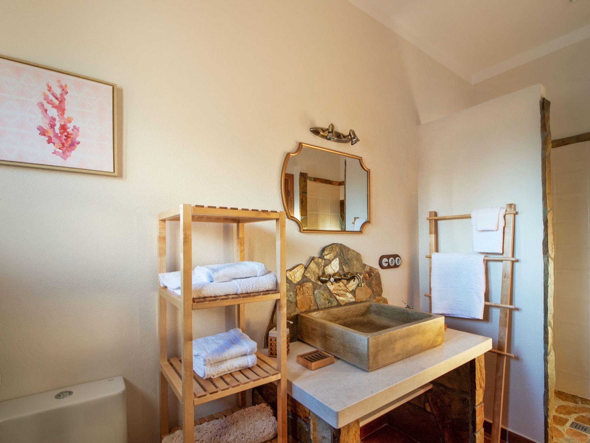 The house has capacity for 8 people, distributed in four double rooms, with the following facilities and services: - Spacious living room with wood-burning fireplace. - Fully equipped kitchen-dining room. - Four bedrooms with their own bathroom. One of them has a bathroom fully adapted for disabled people. - Central heating and air conditioning in every room. - Salt water swimming pool. - Barbecue and wood oven at the back of the house. A second barbecue with wood-burning cooker located in an open space at the front of the house. - Large terrace in front of the kitchen-dining room and living room with wonderful views. - Children's playground. - Football pitch. - Baby bath and high chair for children. - Vegetable garden. - Mobile phone coverage and Internet access via a Wifi network. - Change of bed linen and towels every 3 nights. - Pets allowed (dogs and cats only).