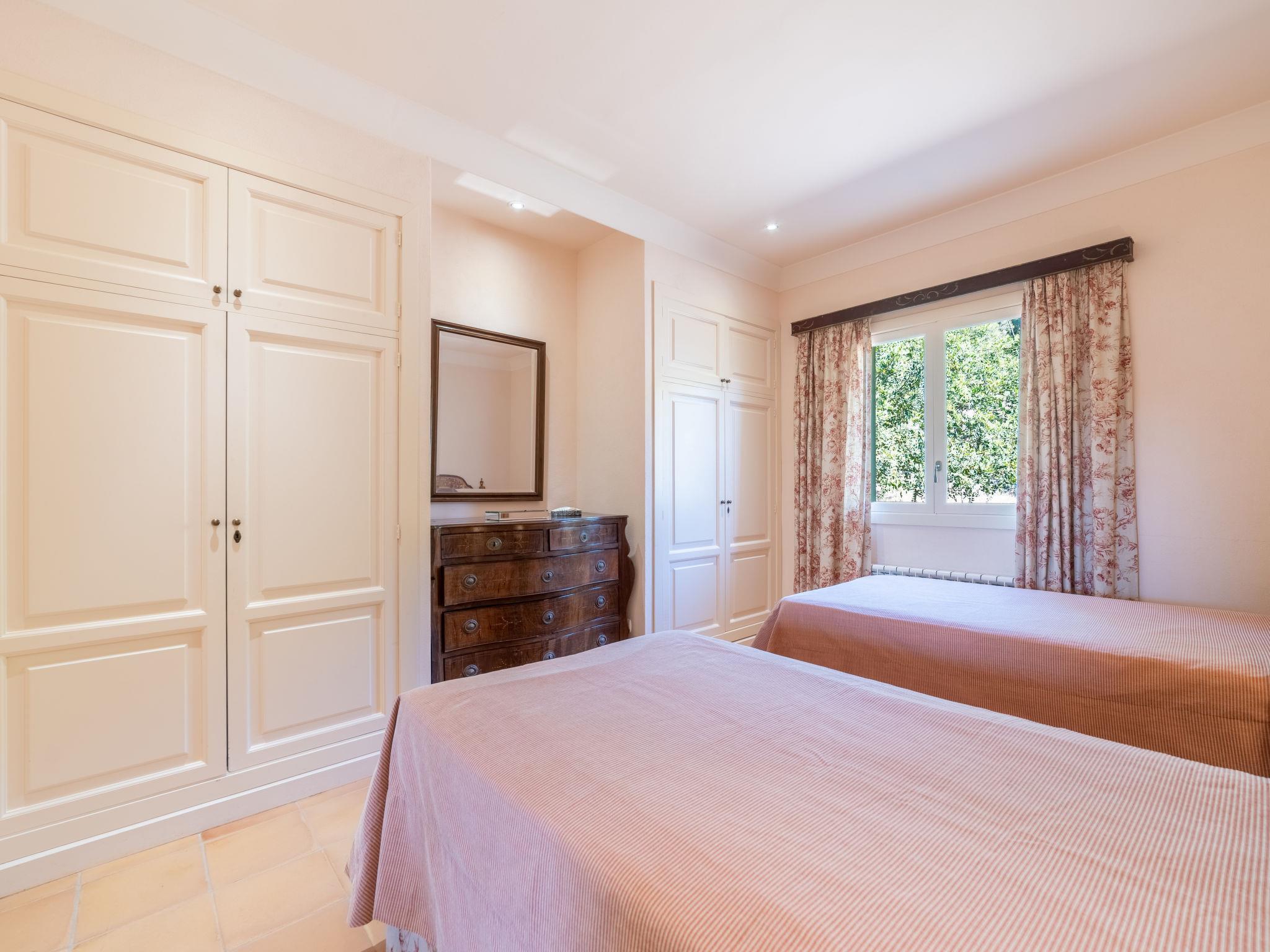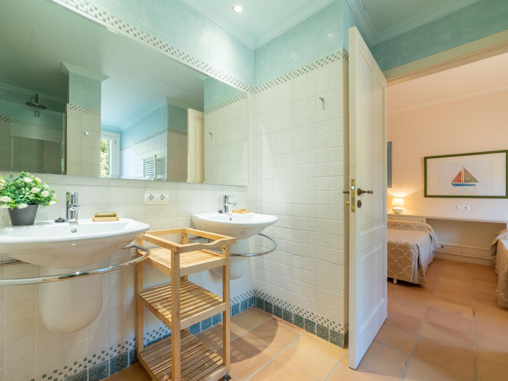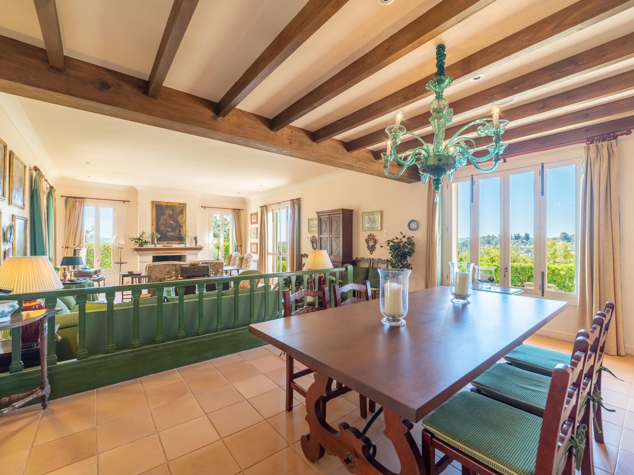 "Son Maguet", 7-room villa 400 m2, lower ground floor. Object suitable for 12 adults. Spacious and bright, very comfortable and tasteful furnishings: large living/dining room with panoramic window with dining table, TV, flat screen and air conditioning. Exit to the patio, to the swimming pool. 2 double bedrooms with panoramic window, each room with 1 french bed and air conditioning. 4 large double bedrooms with panoramic window, each room with 2 beds (90 cm), air conditioning. Kitchen-/living room (oven, dishwasher, 3 ceramic glass hob hotplates, microwave, freezer, electric coffee machine) with dining table, air conditioning. Exit to the patio, to the swimming pool. 4 Baths/showers/WC. Heating. Large patio, lawn. Terrace furniture, electric barbecue, deck chairs, covered balcony. Very beautiful view of the mountains and the countryside. Facilities: washing machine, iron, hair dryer. Internet (WiFi, free). Parking (fenced). Please note: suitable for families. Non-smoking house. ETV/4507 // Reg. Nr.: ESFCTU00000702200047054900000000000000000000ETV/45072