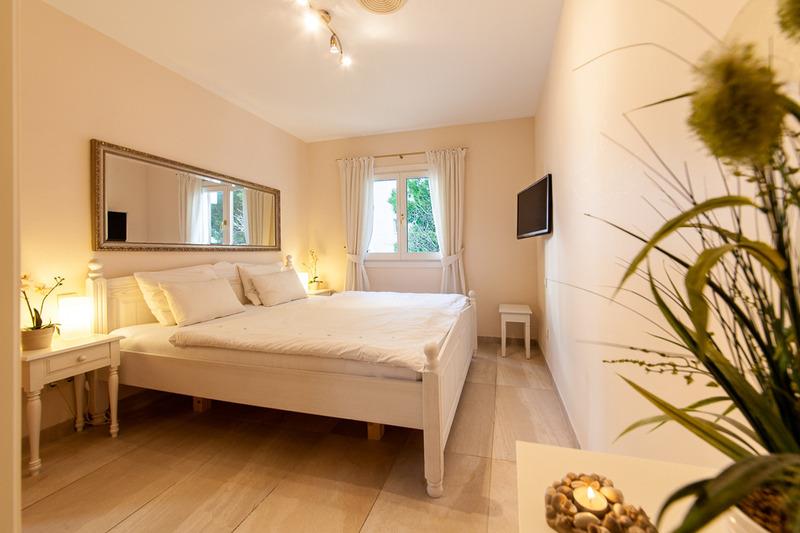 Die 2 Schlafzimmer von denen beide ein bad en suite haben beinhalten eine moderne und hochwertige Klimaanlage (warm/kalt) wie auch ein Flat TV. Ein Schlafzimmer ist mit einem Doppelbett (180x200 Meter) eingerichtet und das weitere Schlafzimmer verspricht in zwei Einzelbetten (80x200 Meter welche man auf Wunsch als ein weiteres Doppelbett zusammenschieben kann) erholsame Träume.