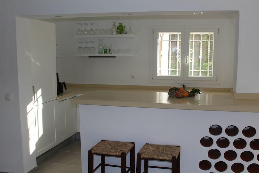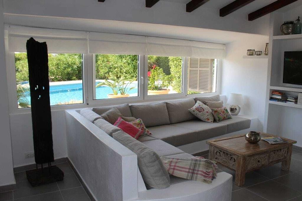Villan har 3 sovrum, 2 badrum och ett stort vardagsrum/matsal med ett öppet kök/bar och direkt tillgång till terrassen. En trädgård med en stor solterrass, grillplats och pool erbjuder den perfekta miljön för en avkopplande semester.