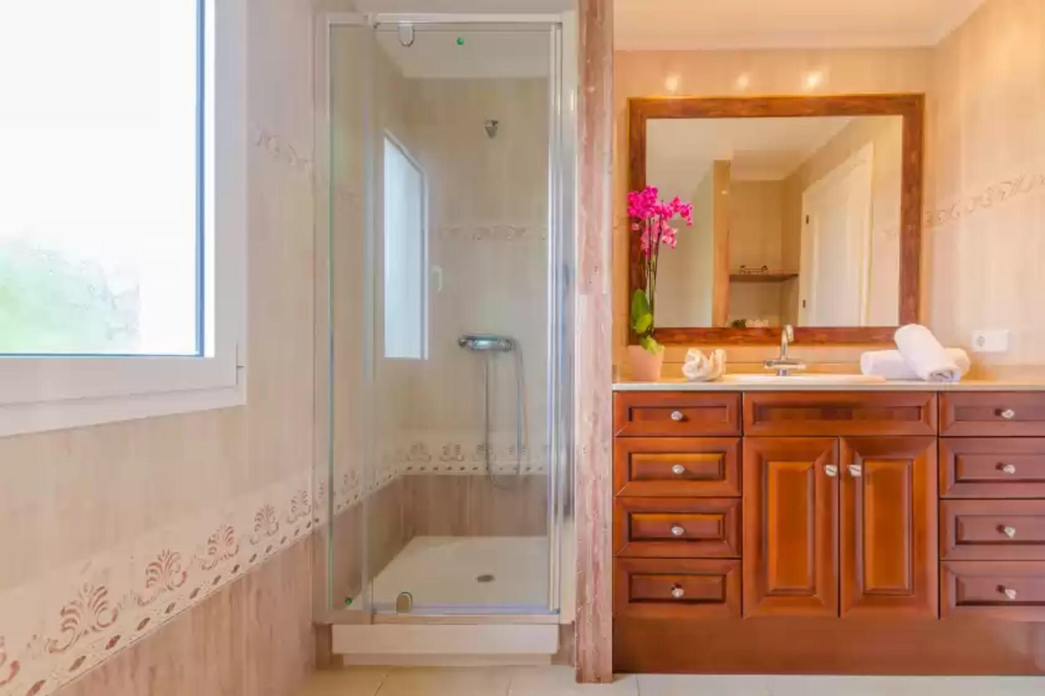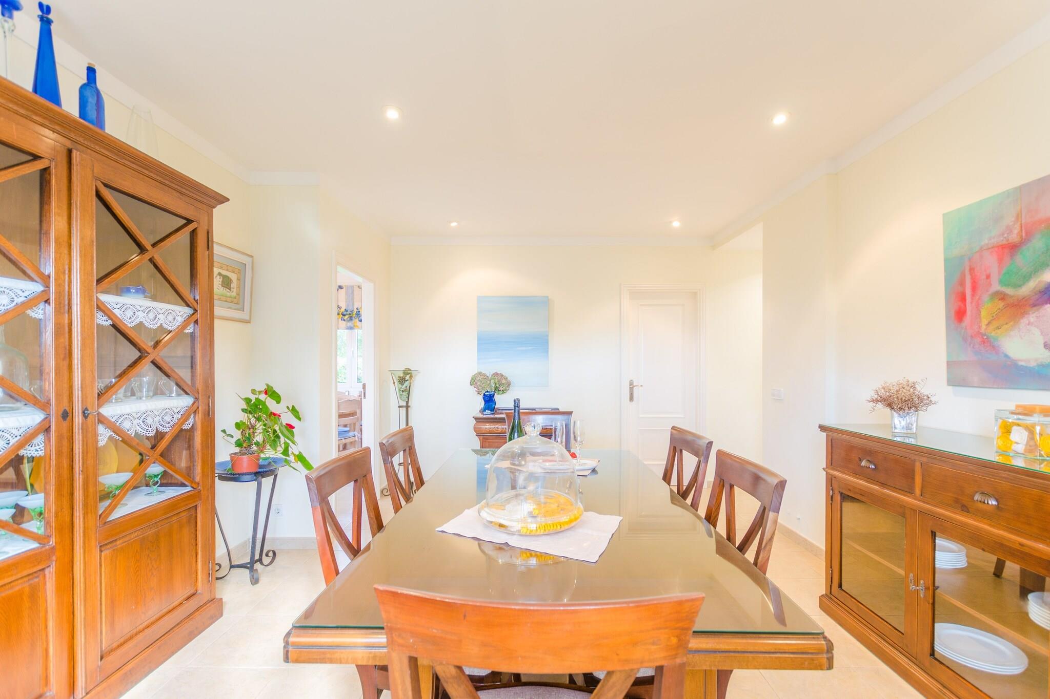 Koppla av i denna vackra villa med en privat 9 x 2,8 m klorpool (0,5–1,8 m djup), perfekt för att koppla av och njuta av Mallorcas sol. Utomhusområdet är omgivet av en gräsmatta och en häck, och har även en veranda med matplats och en mobil grill – perfekt för att njuta av måltider med familj eller vänner. Den inhägnade fastigheten garanterar en lugn vistelse med direkta grannar i närheten. Villan är fördelad på 2 våningar och 360 m² och erbjuder en ljus, modern interiör i naturliga toner. Det luftkonditionerade vardagsrummet inbjuder dig att koppla av med satellit-TV eller en god bok, medan den fristående matsalen har plats för 6 personer. Det fullt utrustade köket har en keramikhäll, ugn, diskmaskin och ett frukostbord. En tvättmaskin, strykjärn och strykbräda finns också. Välj mellan 3 luftkonditionerade sovrum: ett dubbelrum med eget badrum (badkar) på bottenvåningen och två på övervåningen (en dubbelsäng och en tvilling), tillsammans med ett extra duschbadrum. En spjälsäng och barnstol finns. Beläget i Cala Egos, bara 950 m från stranden, och nära Cala d'Or och Porto Petro. Njut av närliggande butiker, restauranger och fantastiska stränder som Cala Esmeralda och Mondragó Natural Park. Inga husdjur eller evenemang tillåtna.
