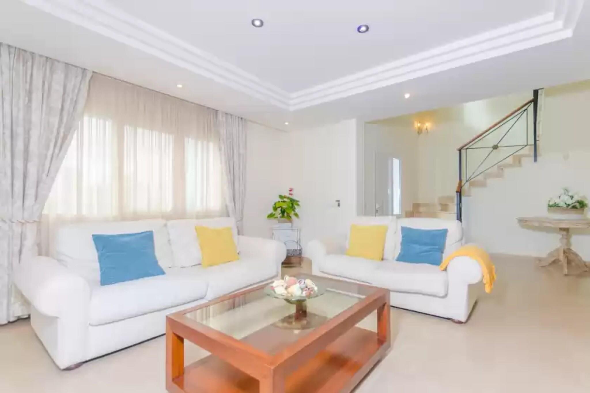 Vardagsrum, Matsal, Kök(spis, kaffebryggare, ugn), sovrum(2x enkelsäng), sovrum(dubbelsäng), sovrum(dubbelsäng), badrum, badrum, badrum, mikrovågsugn, diskmaskin, kylskåp, frys, badkar, badkar, dusch, dusch, handfat, handfat, handfat, toalett , toalett , toalett , bidé, luftkonditionering, luftkonditionering, luftkonditionering, trädgård, trädgårdsmöbler, 6x solstole, grill, swimmingpool, spjälsäng, barnstol