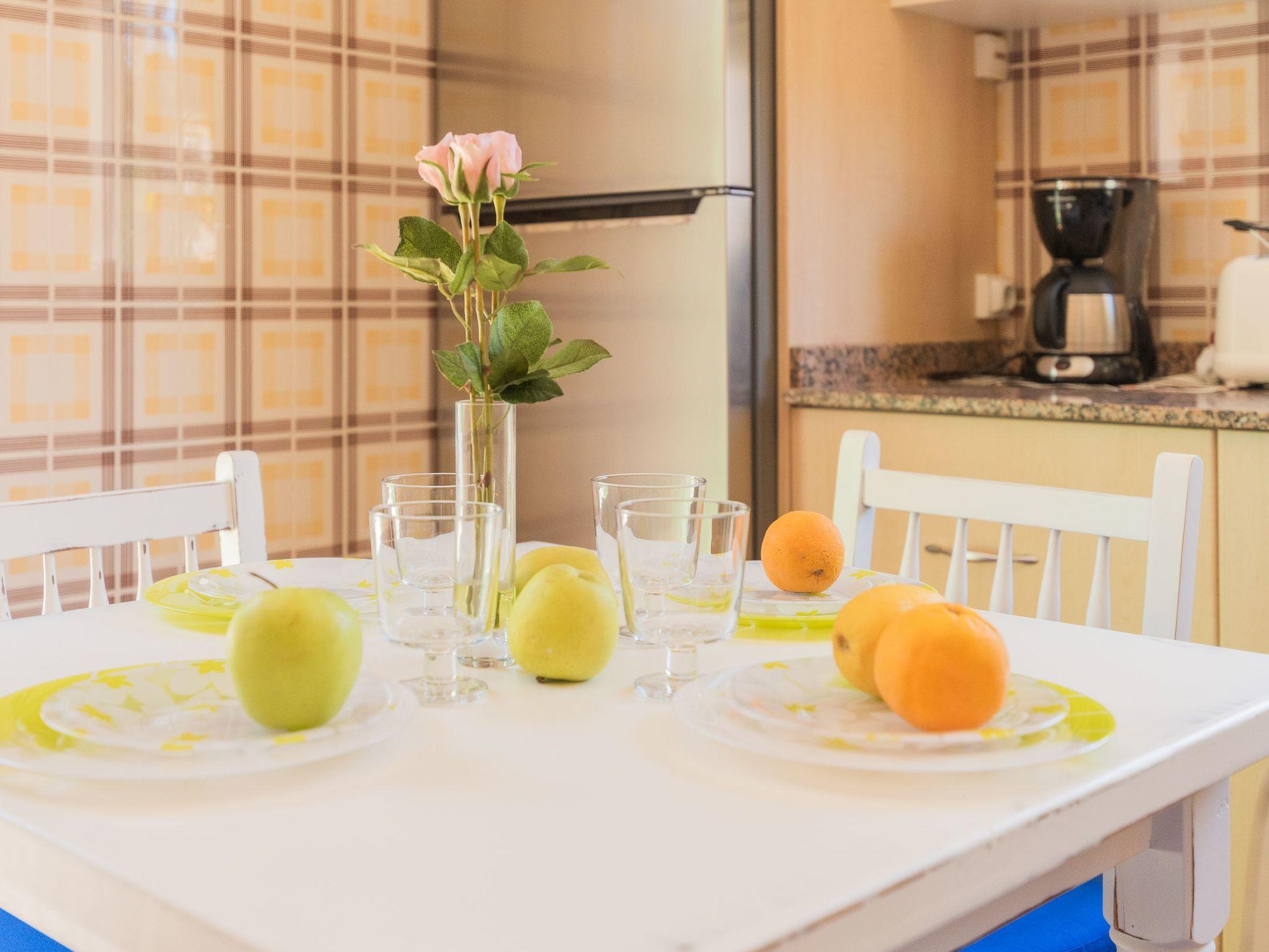 Three steps lead up to the covered terrace and the entrance of the house. Situated on a fully fenced plot of approximately 400 m², the cosy holiday home ES PINAR offers approximately 130 m² of living space: