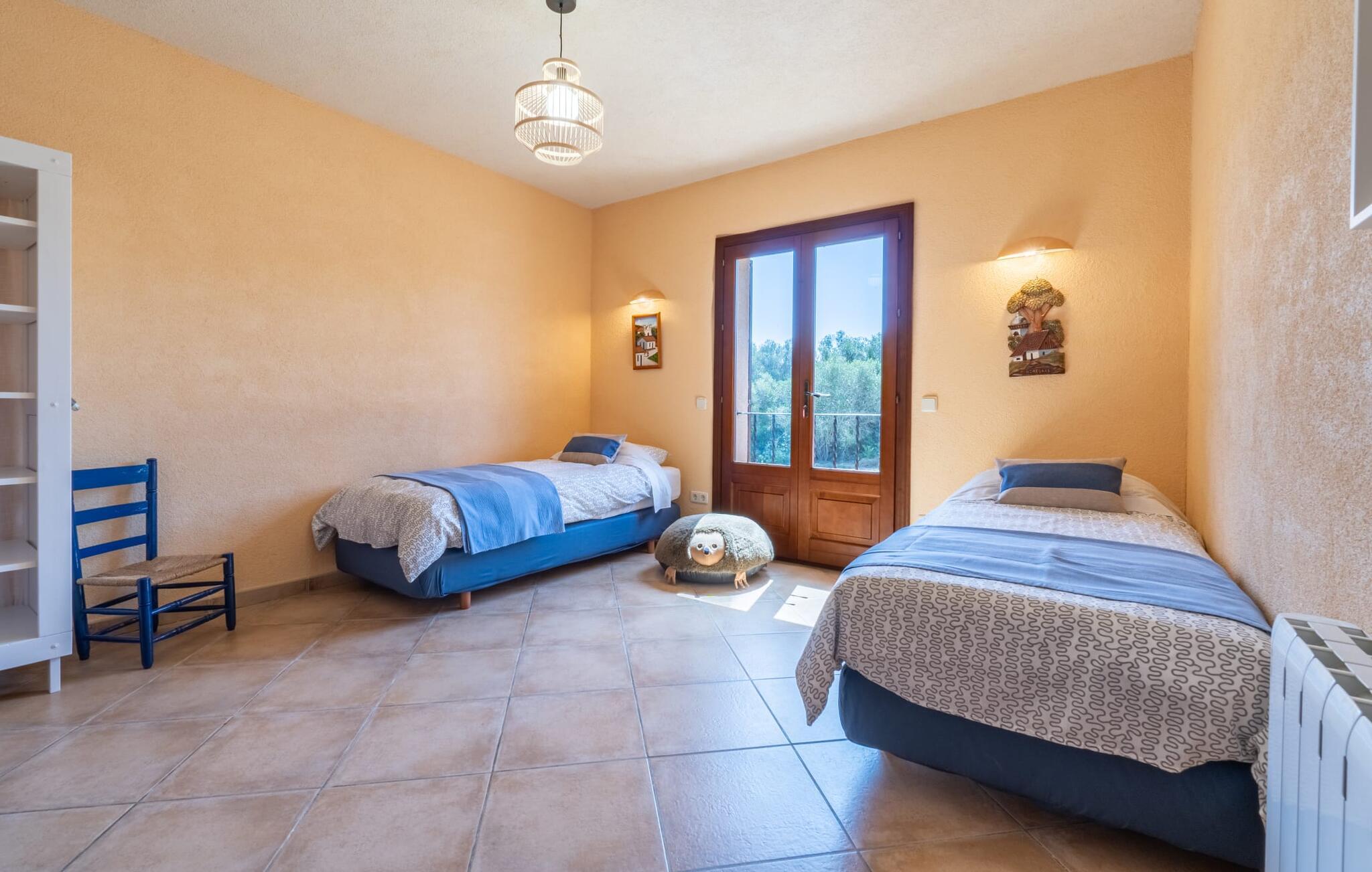 Du hittar bekväma sittplatser framför och bakom huset och det finns gott om solstolar vid poolen för alla soldyrkare och en praktisk utomhusdusch för ett uppfriskande dopp. Se till att du tar dig tid varje dag för att koppla av utomhus och njuta av den vackra utsikten över det omgivande landskapet.