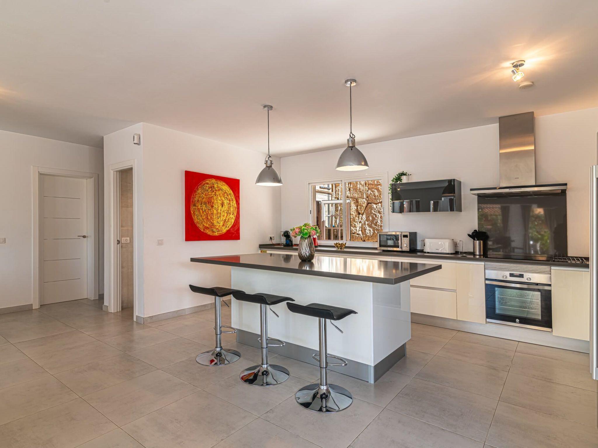 The villa has a pool for your exclusive use, heated of course. A modern gas barbecue is available for your barbecue. The terraces, the balcony and the pool area invite you to linger on many comfortable seating areas and offer you a great view of the Atlantic Ocean as far as the neighbouring island of La Gomera.