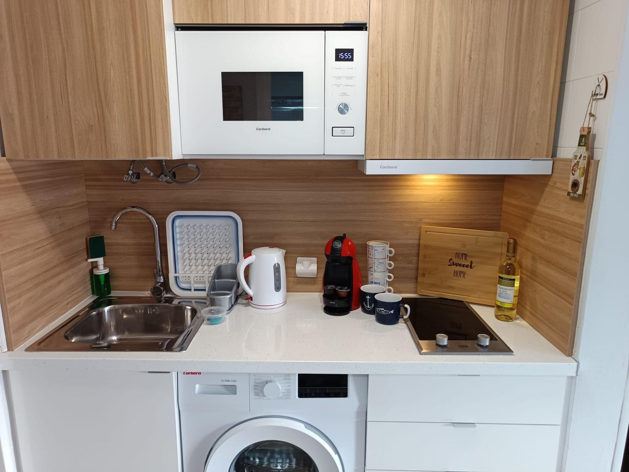 Inside, the flat has everything you need for a pleasant stay. It has one bedroom, a bathroom with shower, and the comfort of partial air conditioning, ideal for cooling off on summer evenings. For your convenience, there is also a private washing machine. Cooking enthusiasts will be delighted by the presence of a ceramic hob and two types of coffee maker (filter and pod), plus an electric kettle for your daily needs. For moments of relaxation, take advantage of the four fans available and a games console to entertain young and old alike.