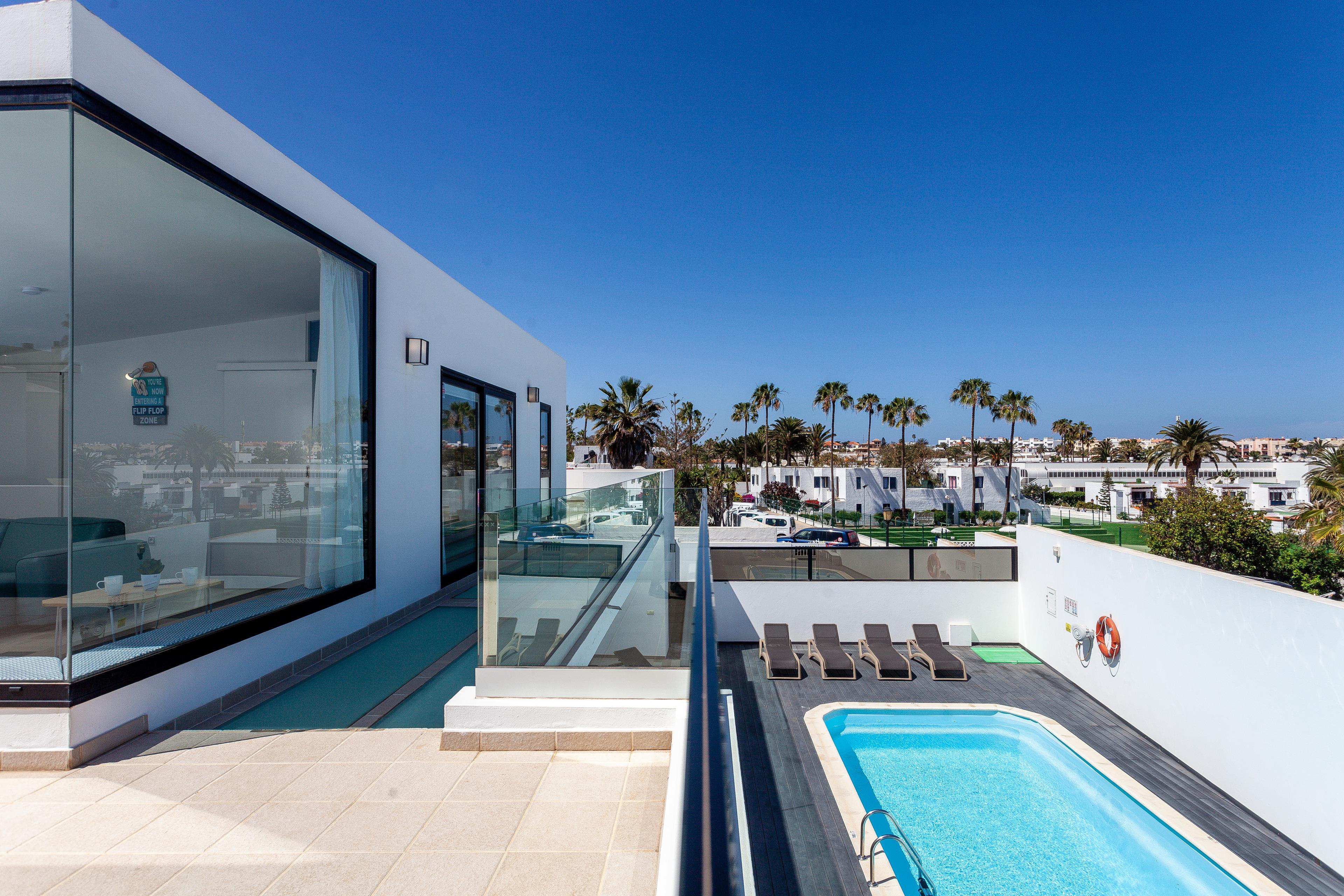 " Willkommen in der Villa Luxury Azul auf Fuerteventura, unserer exklusiven Villa, nur 28 Meter vom Waikiki-Strand entfernt im touristischen Herzen von Corralejo. Diese Villa mit 4 Schlafzimmern bietet Ihnen eine Oase der Ruhe und Eleganz. Genießen Sie Ihren privaten Pool und Grill, umgeben von einem modernen und minimalistischen Design.
