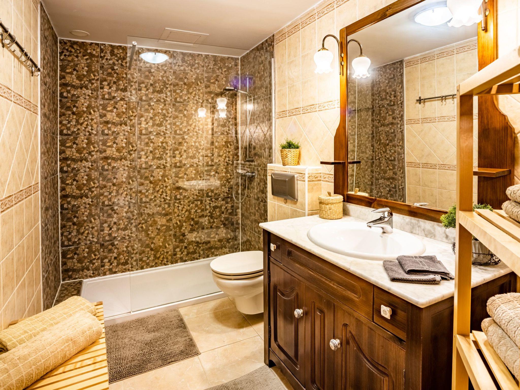 The shower in the bathroom is 6 cm high and is almost flush with the floor.