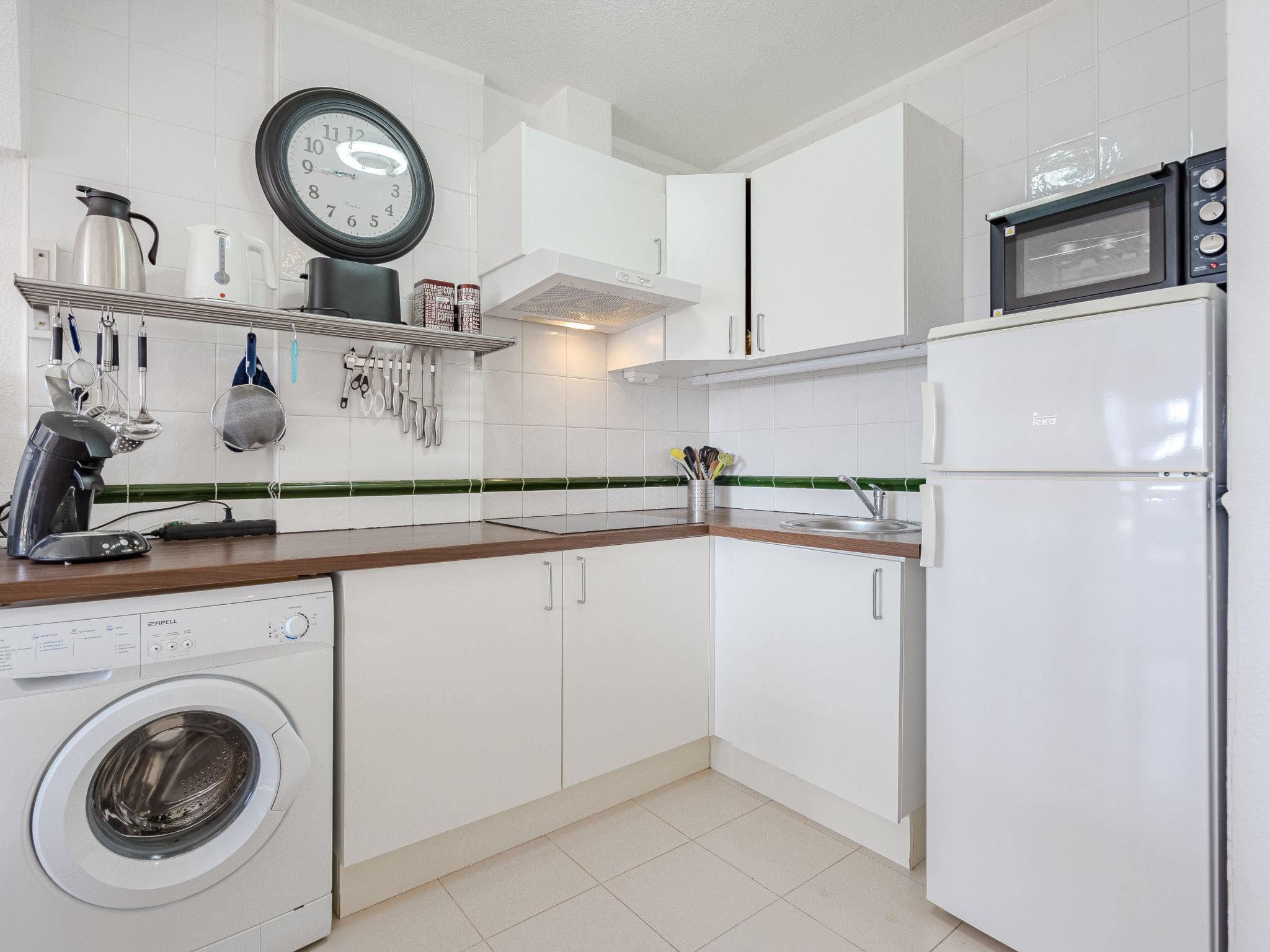 "Balcon del Mar Cozy Nest", 2-room apartment 52 m2, on the upper floor. Object suitable for 2 adults. Renovated, practical furnishings: living/dining room with veranda, sliding door with digital TV, international TV channels and flat screen. Exit to the veranda. 1 room with 1 french bed (150 cm, length 190 cm). Open kitchen (4 ceramic glass hob hotplates, toaster, kettle, microwave, freezer, electric coffee machine) with dining table, boiler (50 litres). Shower/bidet/WC. No heating option. View of the sea. Facilities: washing machine, iron, hair dryer. Internet (WiFi, free). Please note: not suitable for small children. Fire extinguisher. VV-38-4-0103649 // Reg. Nr.: ESFCTU0000380160003226010000000000000VV-38-4-01036497