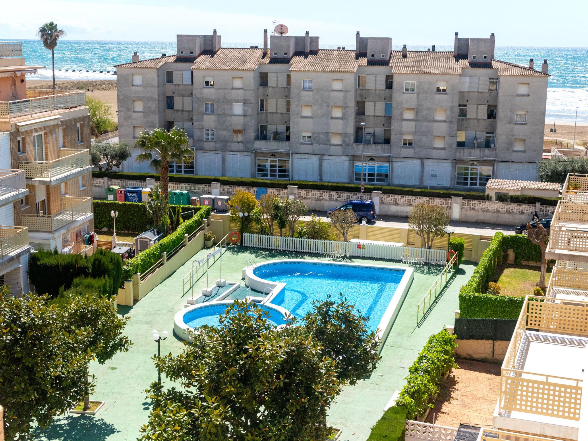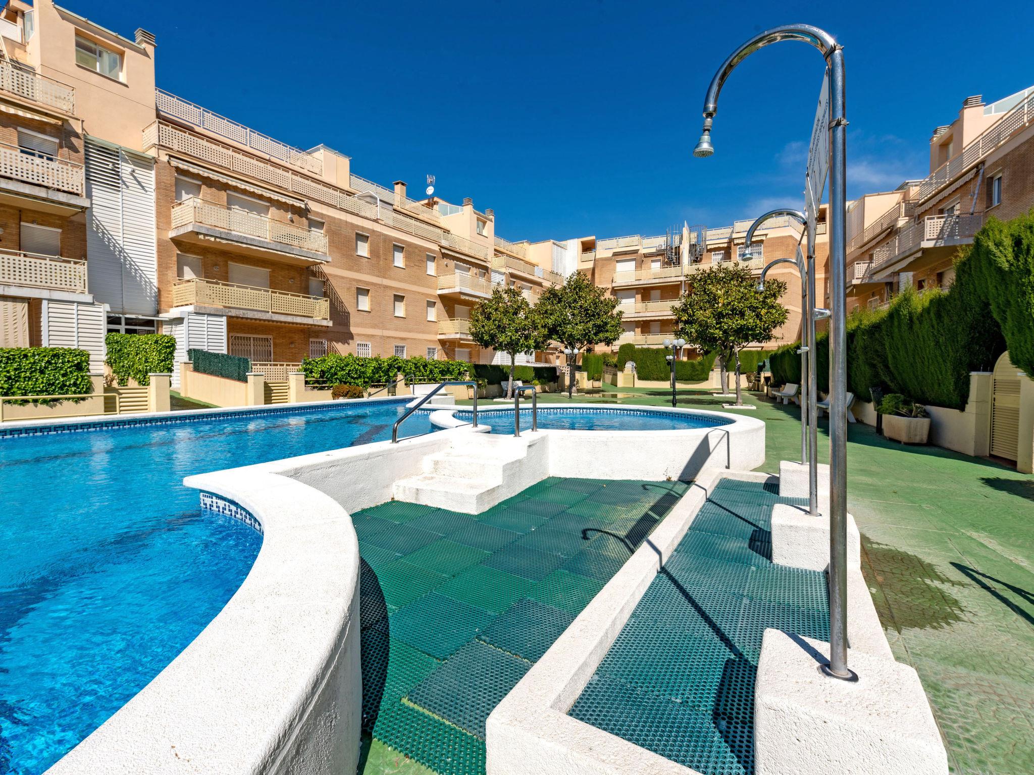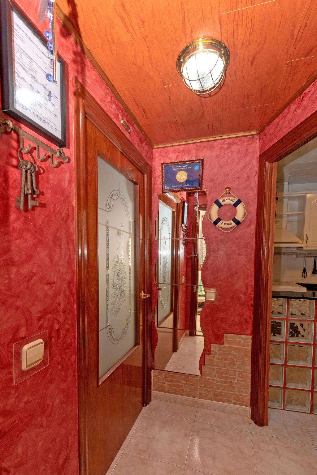 Apartment block "Aires de mar", 3 storeys, built in 1998. In the resort, 30 m from the sea, 30 m from the beach. For shared use: swimming pool (seasonal availability: 01.Jun. - 30.Sep.). Children's pool, outdoor shower. Grocery 100 m, restaurant 100 m, bus stop, railway station "Cunit" 850 m, sandy beach 30 m. Riding stable 500 m. The owner does not accept any youth groups. Please note: railway line closeby 10 m from the property. Neighbourhood highly sensitive to noise. Quietness and good behaviour expected. No trains between 22.54 and 05,29 hrs. The shared area measures 300 m2 and is fenced and terraced.