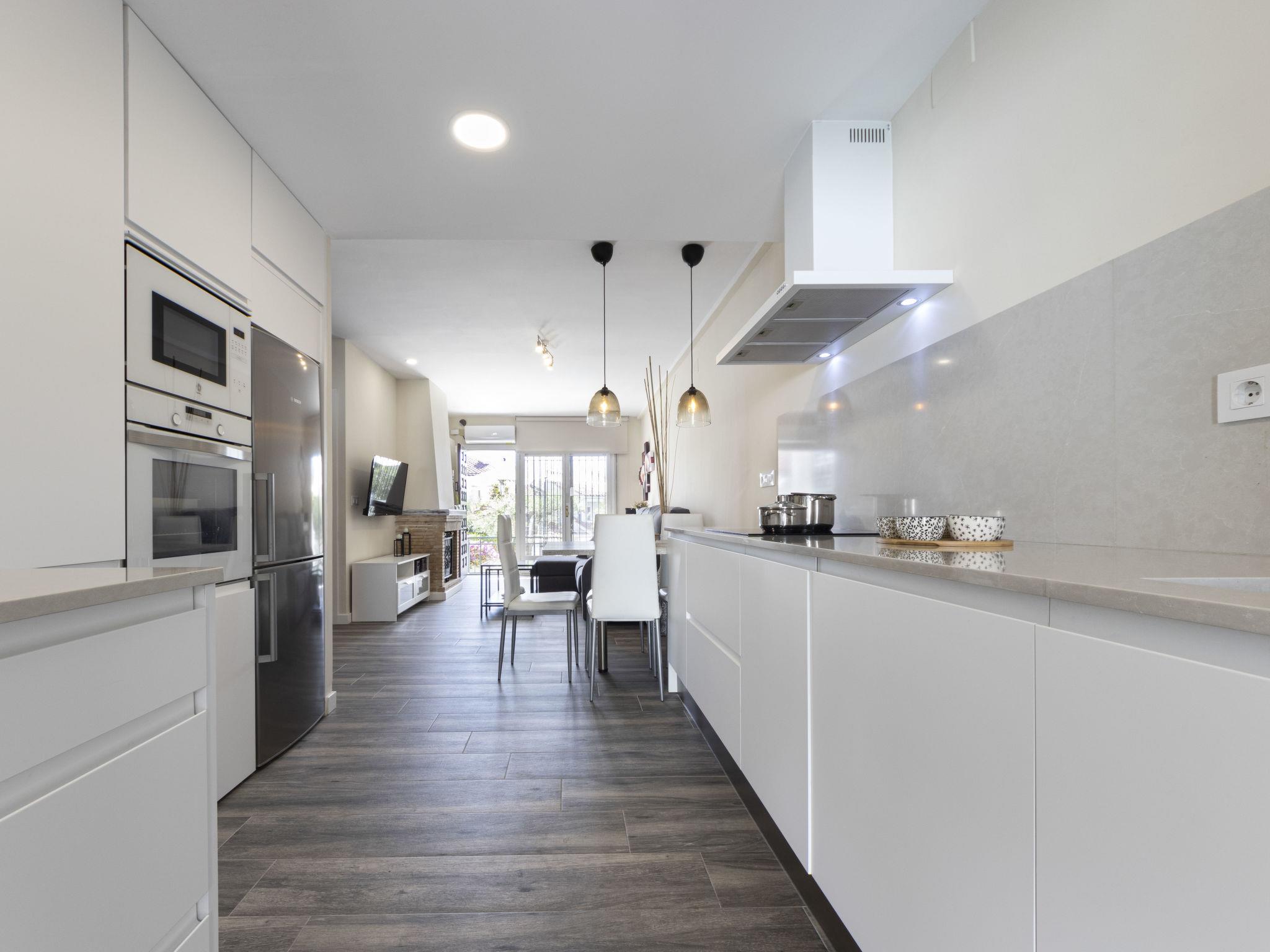Beautiful, comfortable terraced house. In the district of El Rectoret, in a quiet position residential area (villas), 1.5 km from the sea, 1.5 km from the beach. Private: garden (fenced) with lawn, swimming pool angular (6 x 3 m, depth 120 - 165 cm, seasonal availability: 01.Apr. - 30.Sep.). Barbecue, public parking on the road. Supermarket 1.3 km, restaurant, bar 160 m, bus stop "La Ponderosa T" 1.2 km, railway station "Cunit" 3 km. Nearby attractions: Sitges 20 km, Barcelona 61 km, Tarragona 41 km, Port Aventura 51 km. The owner does not accept any youth groups. Neighbourhood highly sensitive to noise. Quietness and good behaviour expected.
