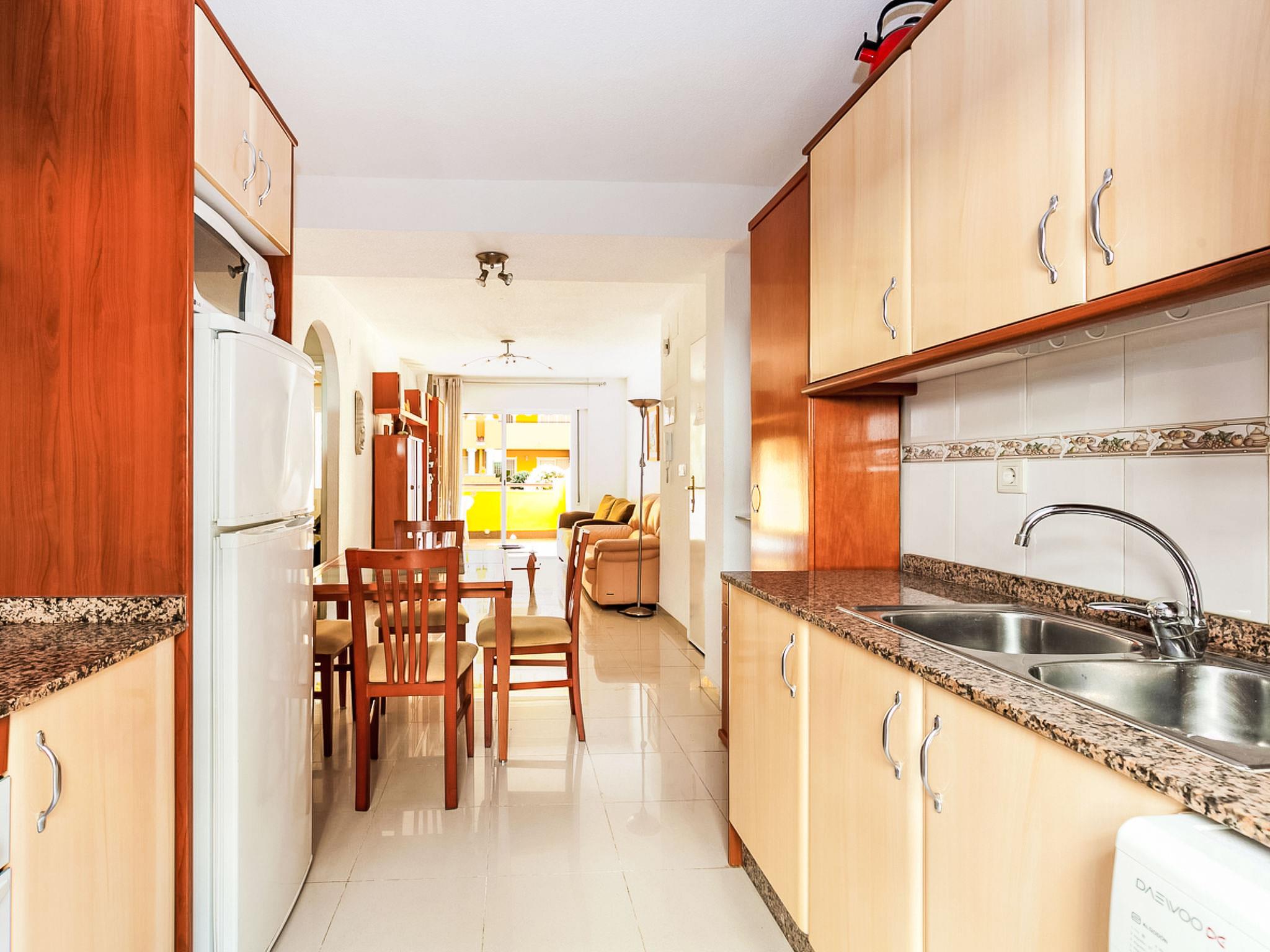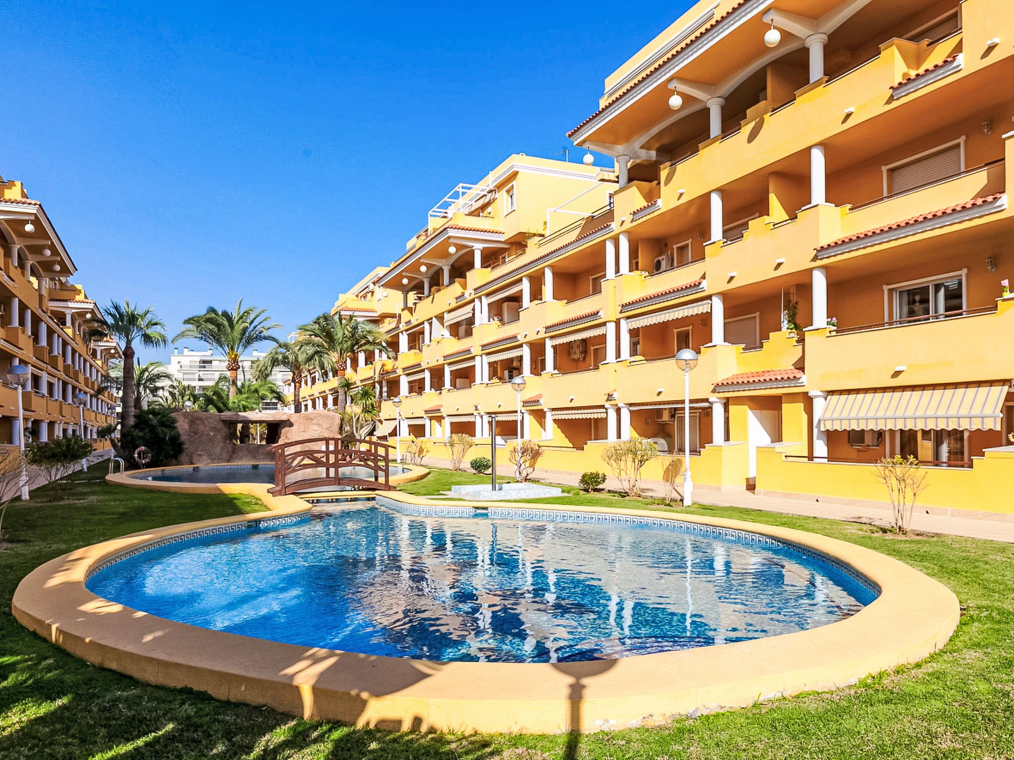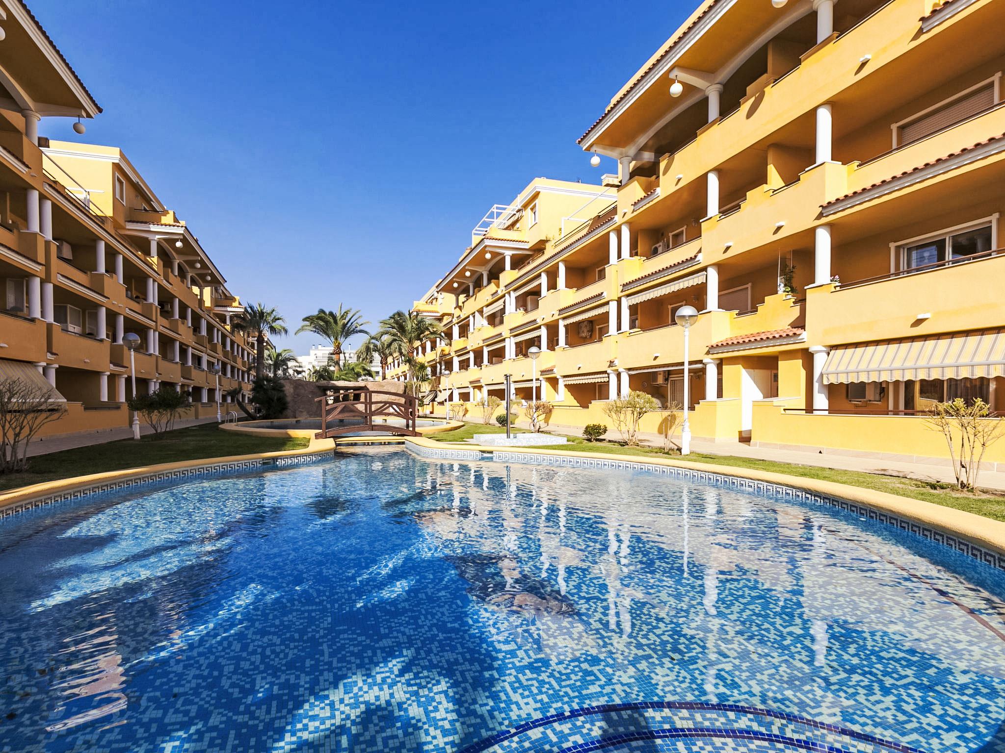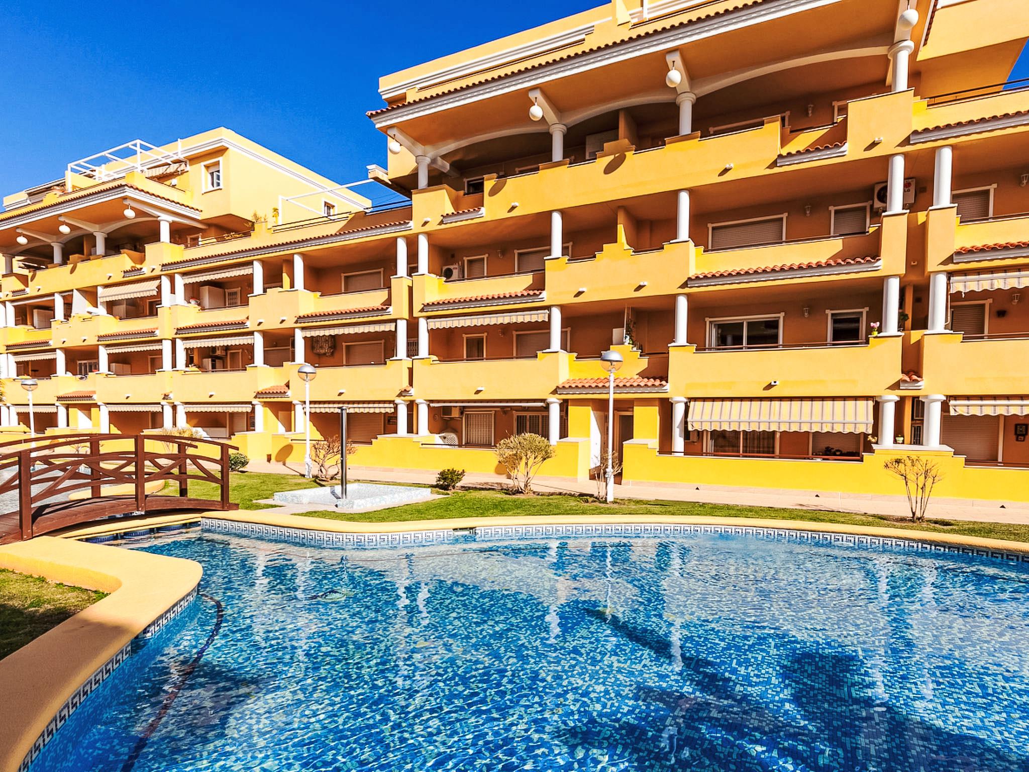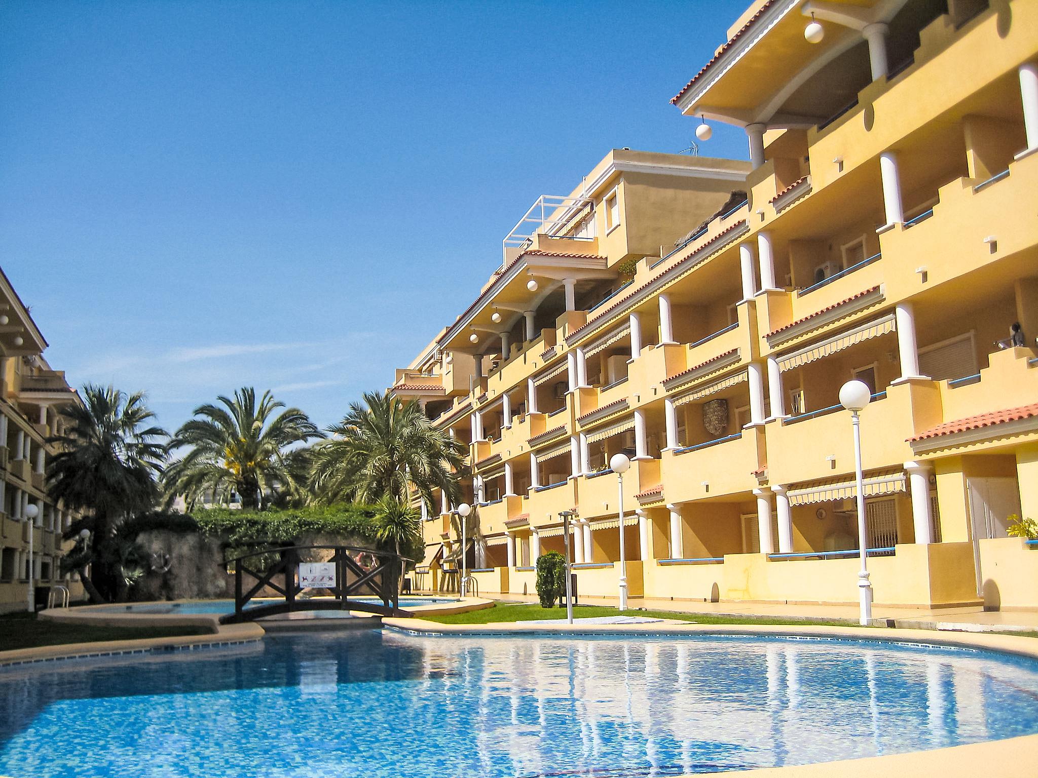 Residence "Cascadas de la Marina", 4 storeys, surrounded by trees. On the outskirts, 500 m from the centre of Denia, 250 m from the sea. For shared use: garden (fenced) with lawn, swimming pool (15 x 30 m, depth 150 - 210 cm, seasonal availability: 01.Jan. - 31.Dec.) with internal staircase. Children's pool, outdoor shower. In the house: lift. Supermarket 1 km, restaurant, bus stop 200 m, sandy beach 250 m. Sports harbour 1.5 km, golf course (18 hole) 8 km, tennis 700 m. The owner does not accept any youth groups. Lift.