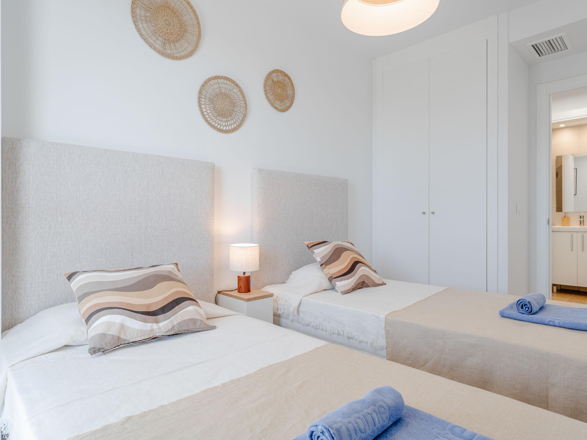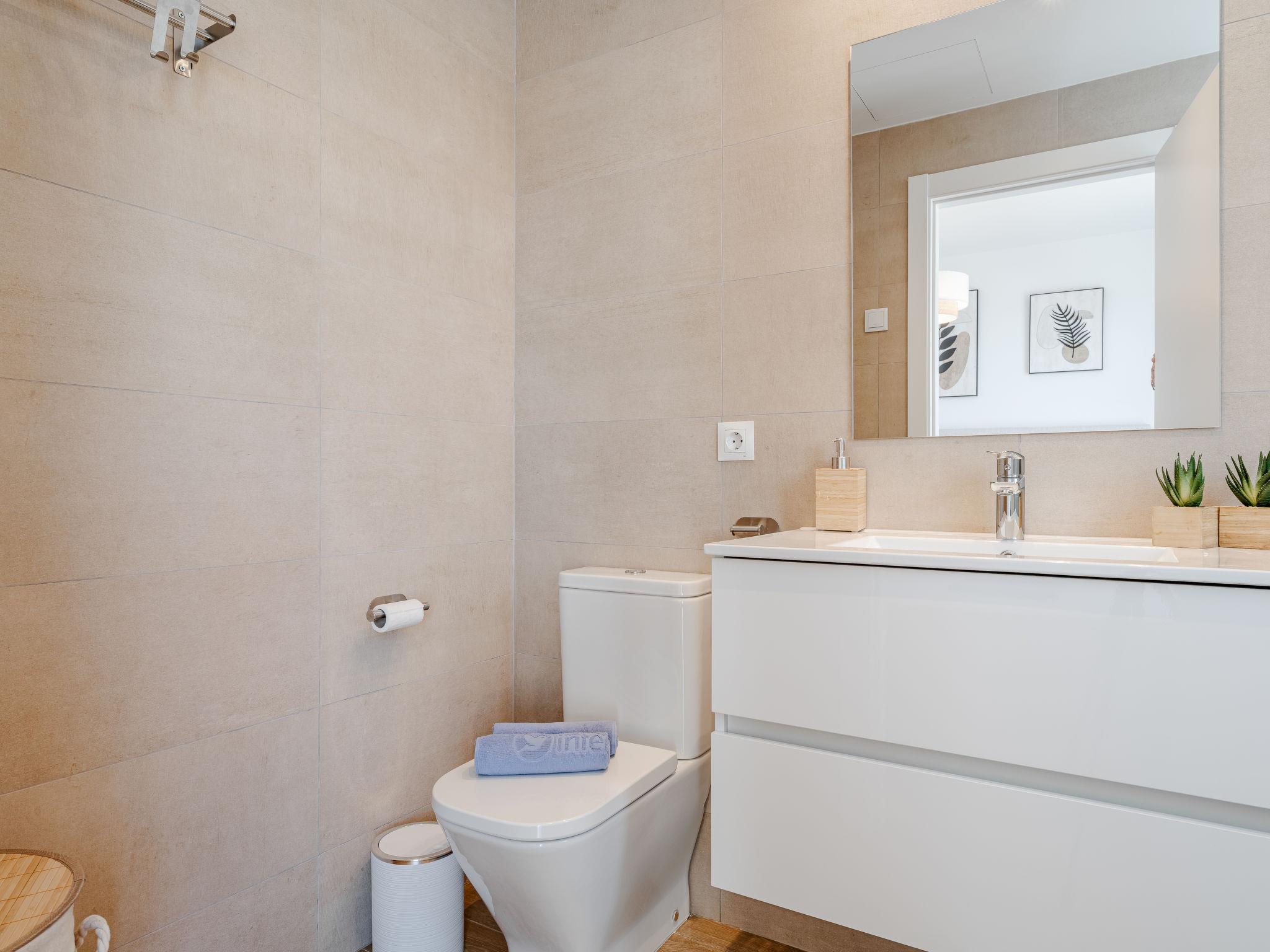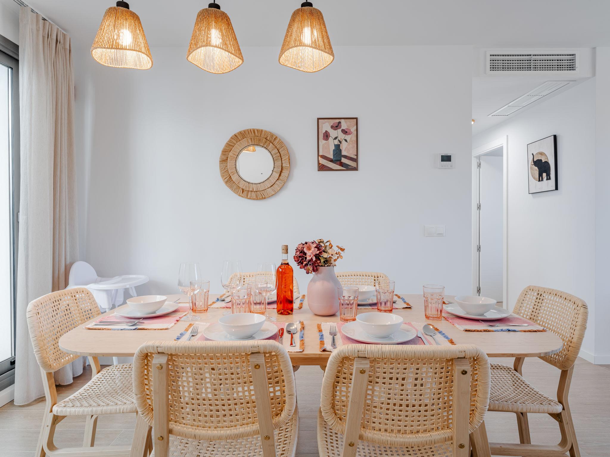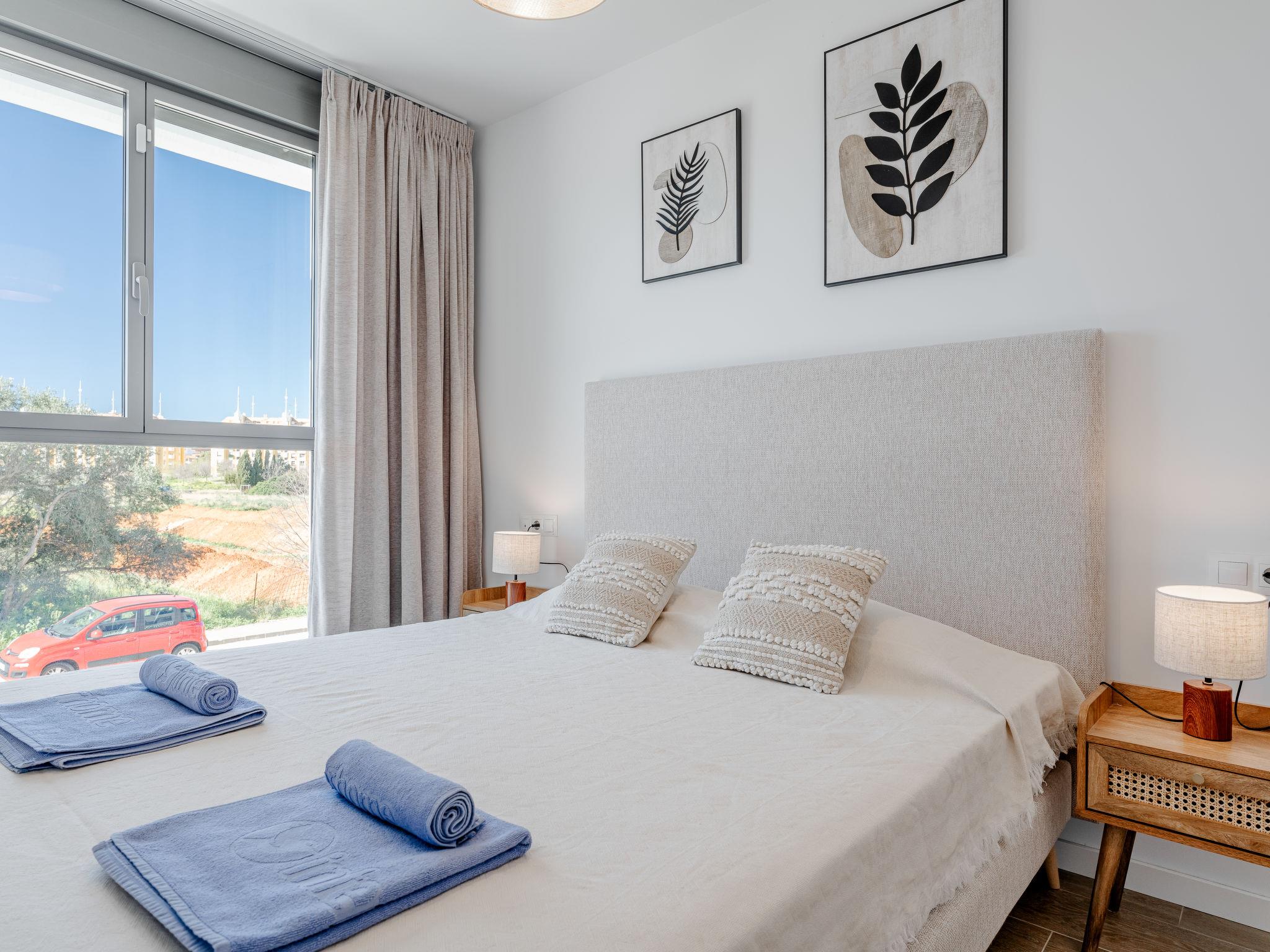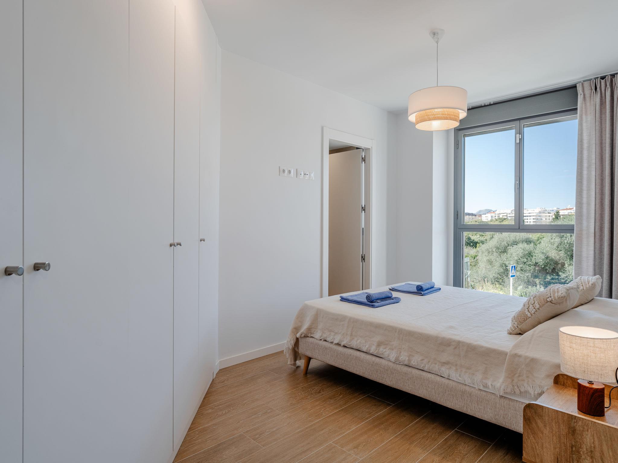 "Marina Real III Bluesky", 3-room apartment 73 m2. Spacious and bright, very beautiful and stylish furnishings: living/dining room with digital TV, air conditioning and forced-air heating. Exit to the terrace. 1 room with 1 french bed (160 cm, length 200 cm), shower/WC, air conditioning and forced-air heating. 1 room with 2 beds (90 cm, length 200 cm), air conditioning and forced-air heating. Kitchen (oven, dishwasher, 3 induction hot plates, toaster, kettle, microwave, freezer, electric coffee machine, Capsules for coffee machine (Nespresso) extra). Shower/WC. Large terrace. Terrace furniture. Very beautiful view of the mountains and the countryside. Facilities: washing machine, iron, children's high chair, baby cot, hair dryer. Internet (WiFi, free). Garage space n 141. CV-VUT0520664-A // Reg. Nr.: ESFCNT00000305500086546000000000000000000000000000001