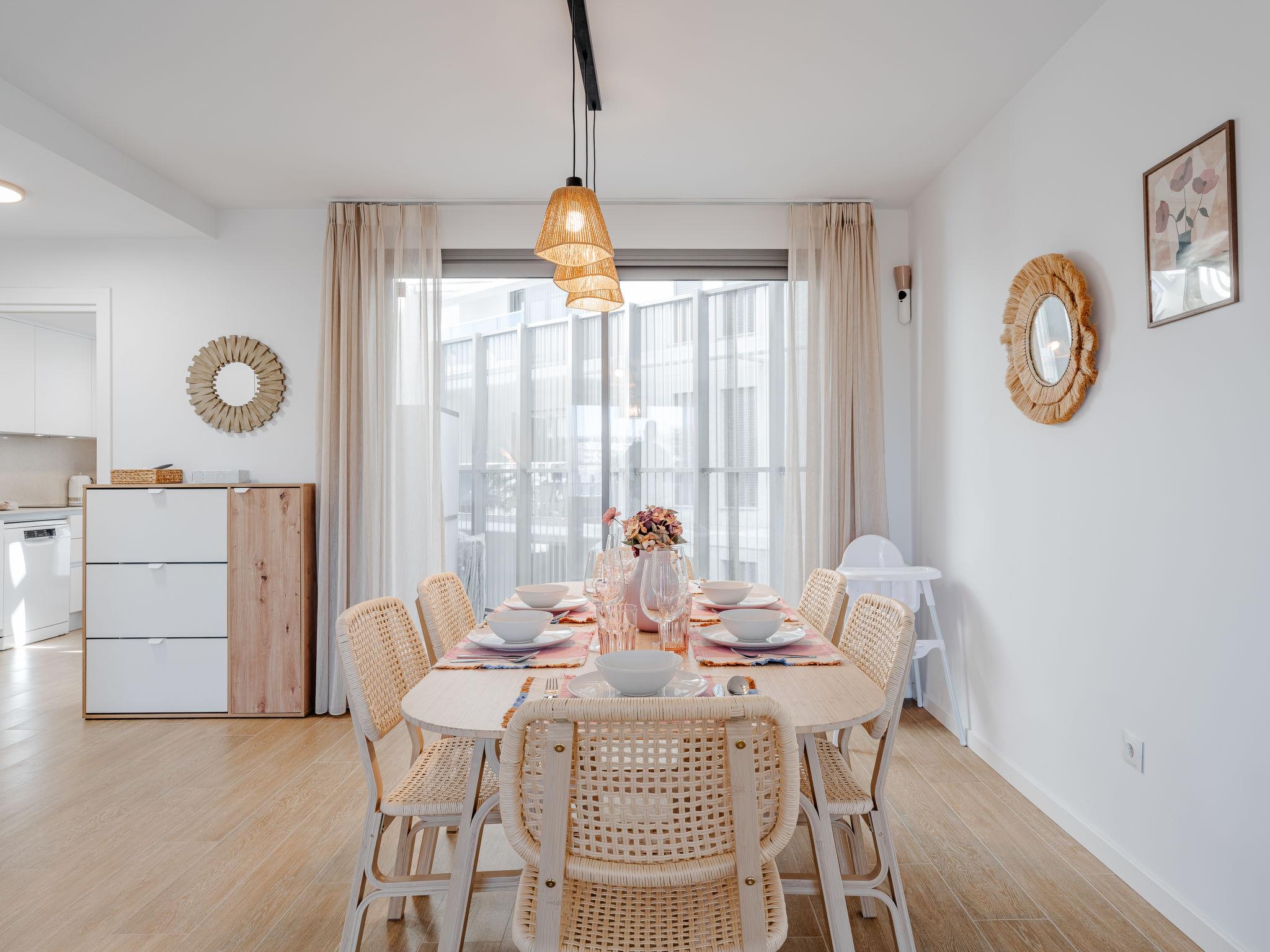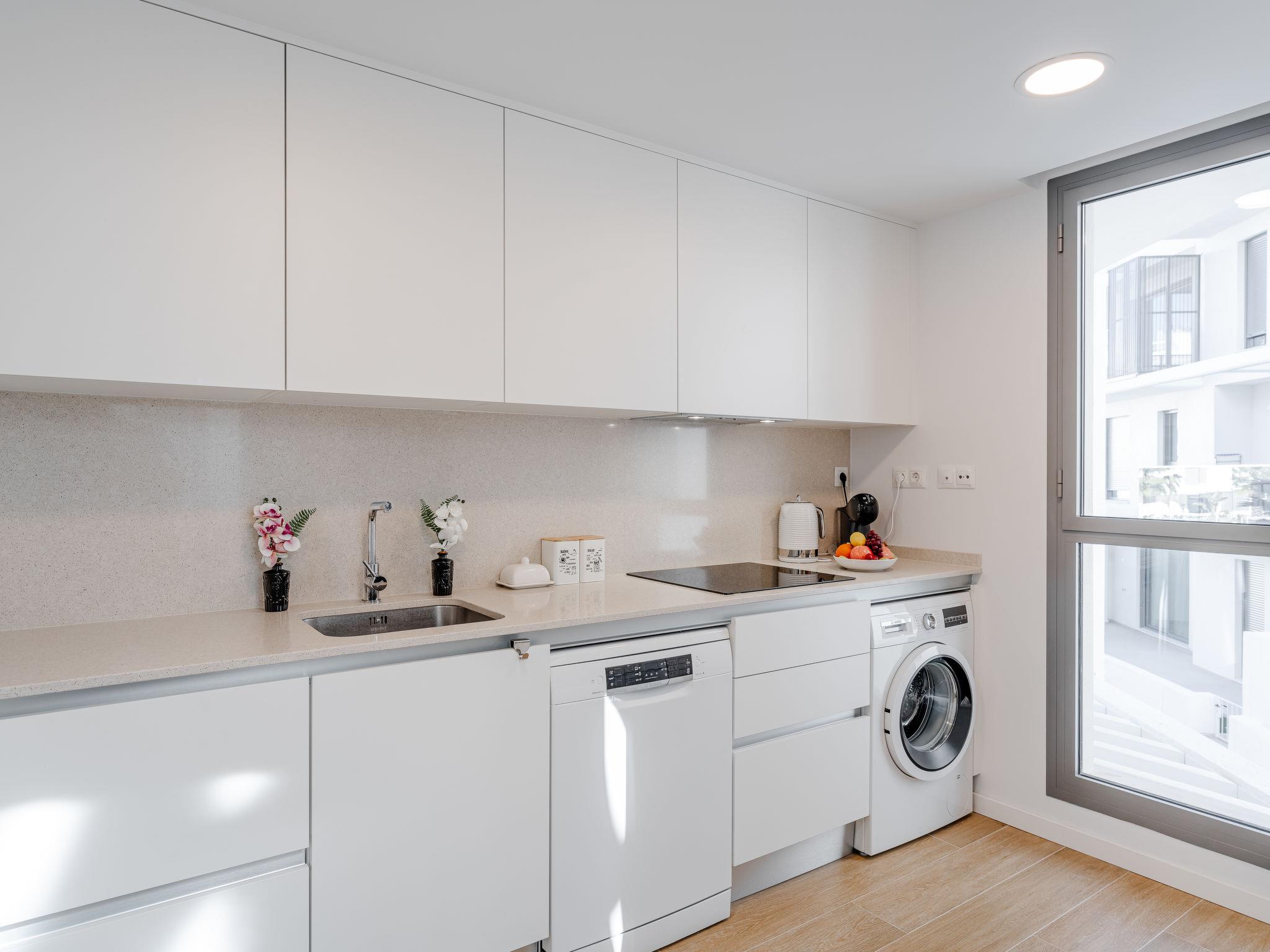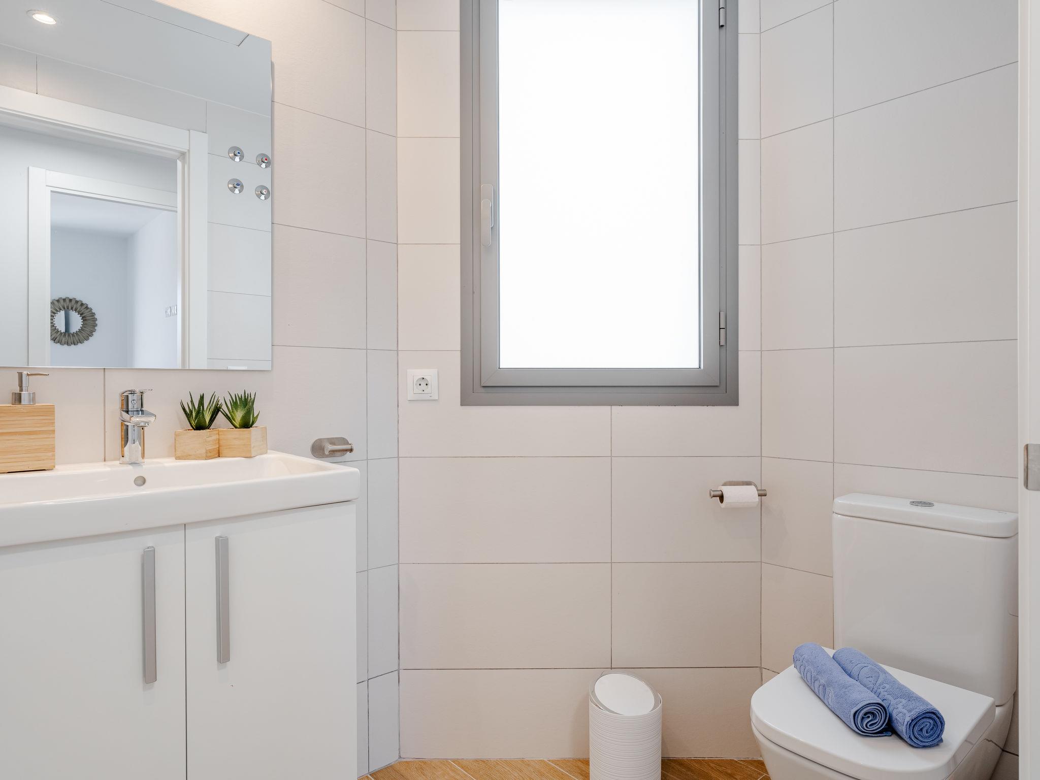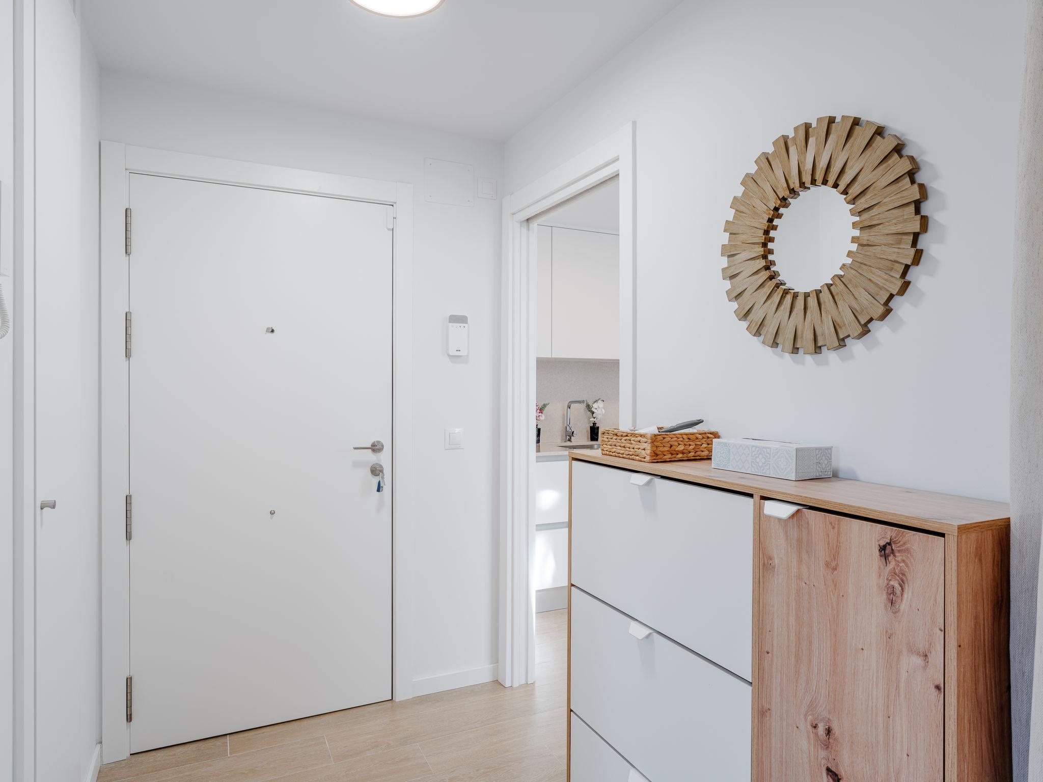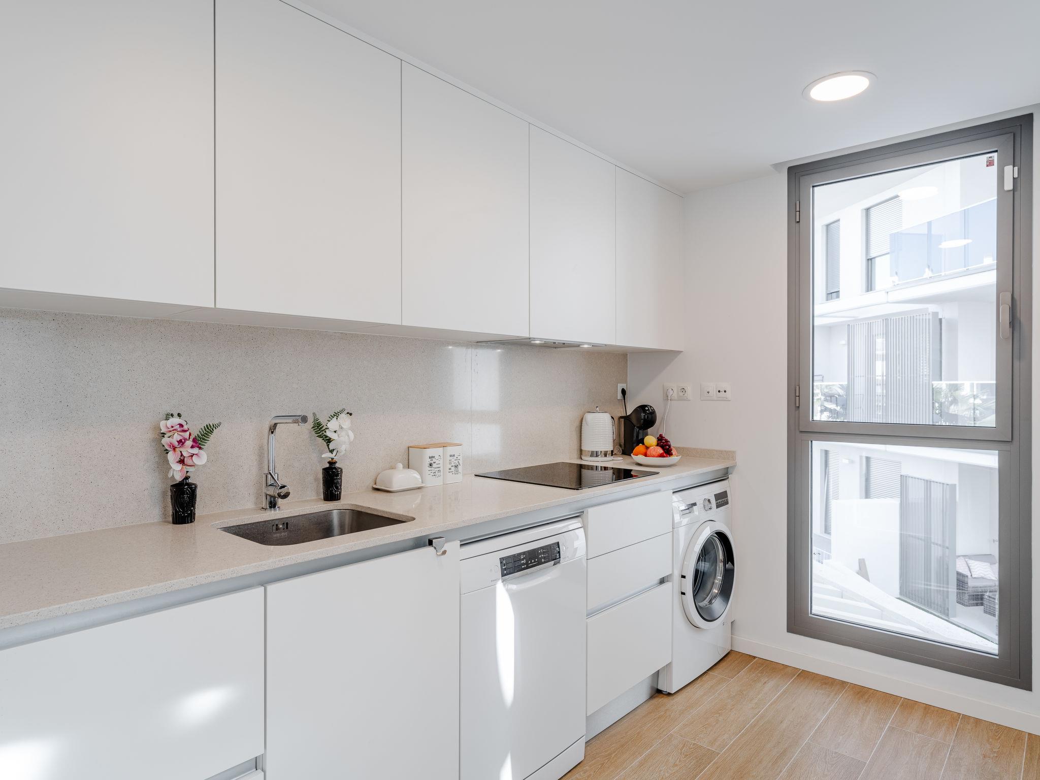"Marina Real III Bluesky", 3-room apartment 73 m2. Spacious and bright, very beautiful and stylish furnishings: living/dining room with digital TV, air conditioning and forced-air heating. Exit to the terrace. 1 room with 1 french bed (160 cm, length 200 cm), shower/WC, air conditioning and forced-air heating. 1 room with 2 beds (90 cm, length 200 cm), air conditioning and forced-air heating. Kitchen (oven, dishwasher, 3 induction hot plates, toaster, kettle, microwave, freezer, electric coffee machine, Capsules for coffee machine (Nespresso) extra). Shower/WC. Large terrace. Terrace furniture. Very beautiful view of the mountains and the countryside. Facilities: washing machine, iron, children's high chair, baby cot, hair dryer. Internet (WiFi, free). Garage space n 141. CV-VUT0520664-A // Reg. Nr.: ESFCNT00000305500086546000000000000000000000000000001