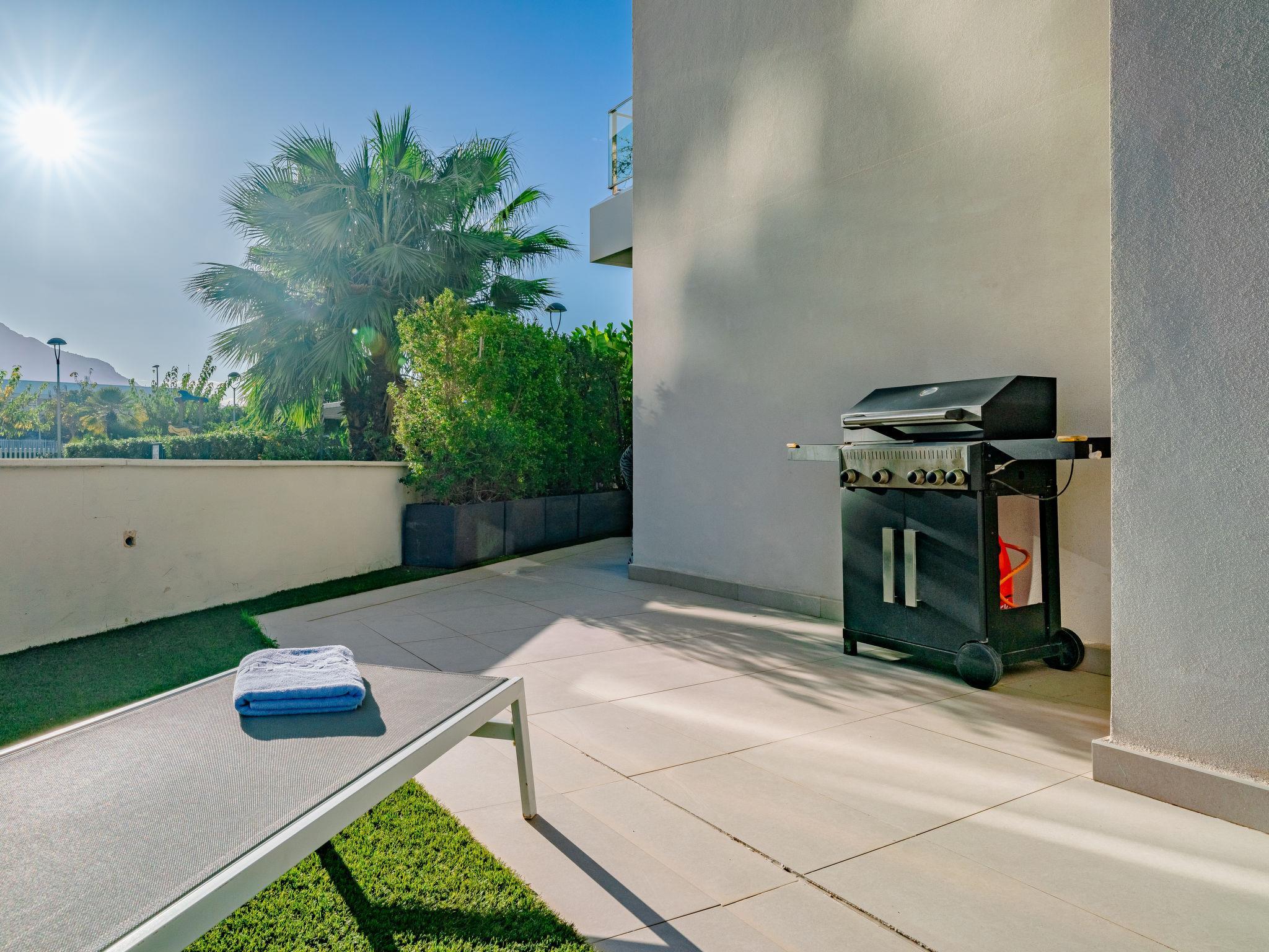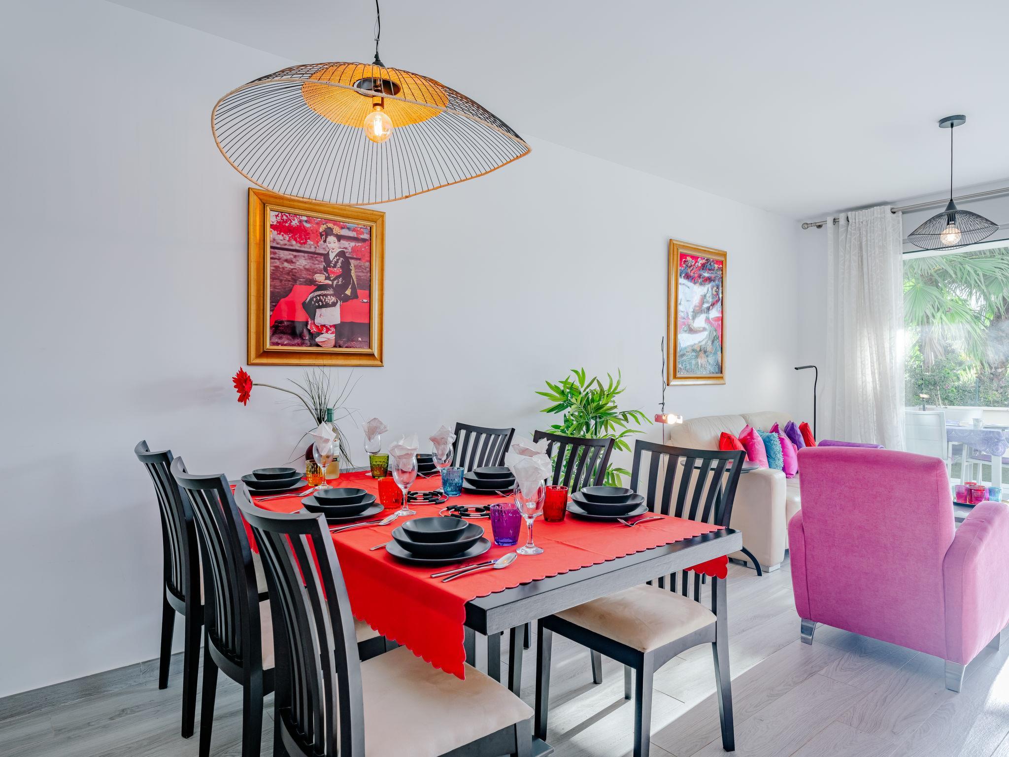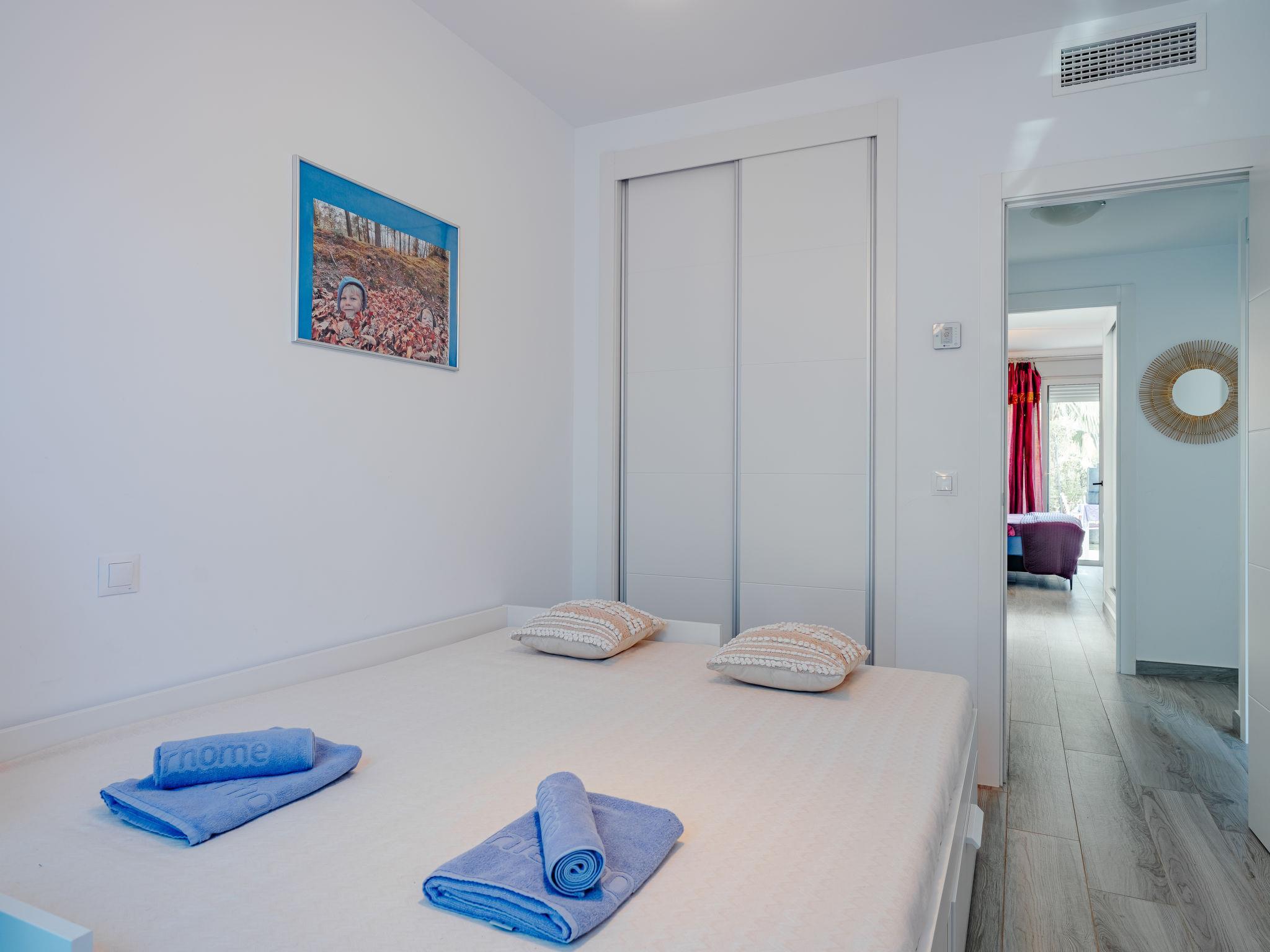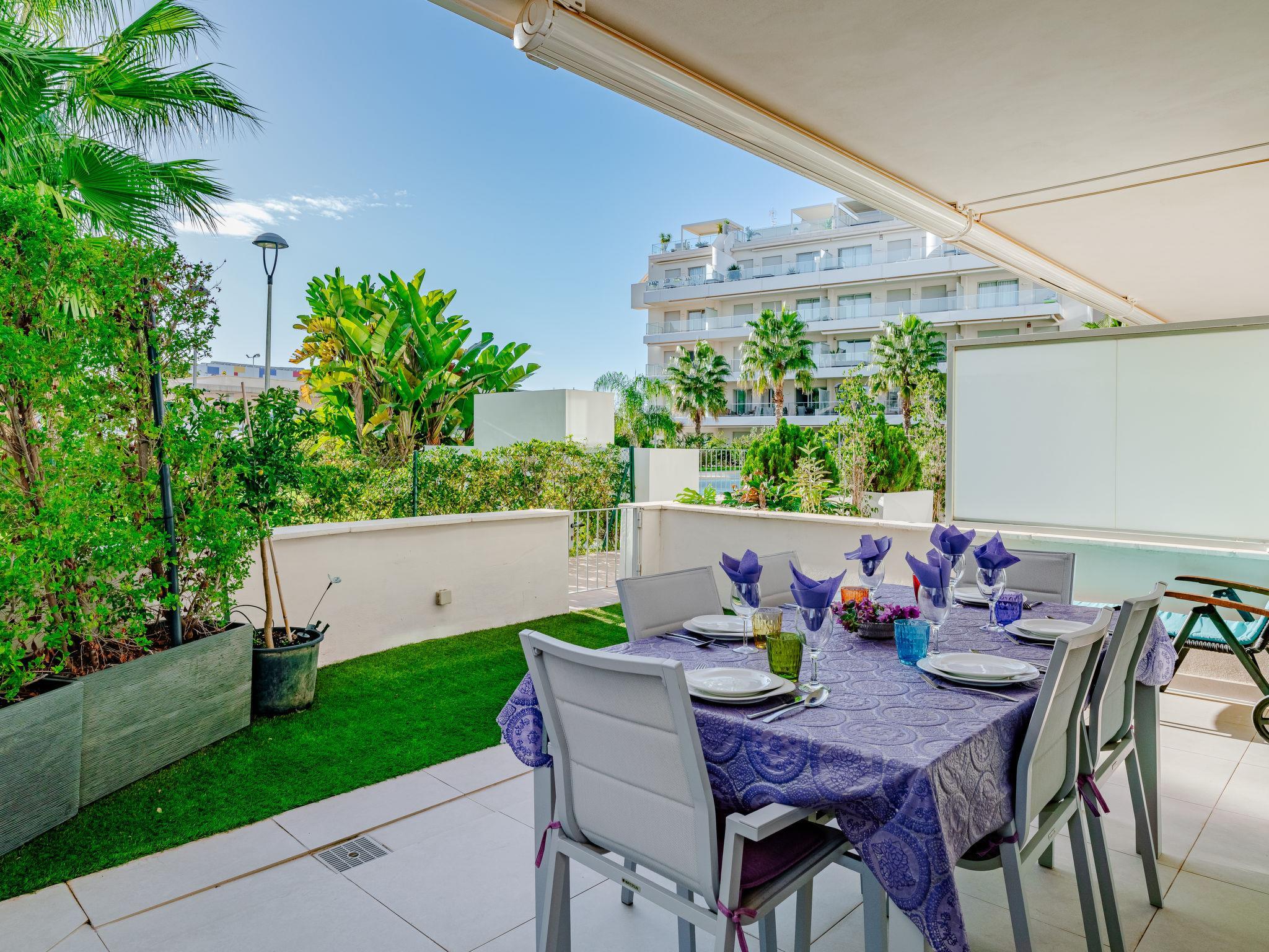 "Marina Real I", 4-room apartment 94 m2. Bright, very beautiful and stylish furnishings: living/dining room with satellite TV, air conditioning and forced-air heating. Exit to the patio, to the swimming pool. 1 room with 1 french bed (180 cm, length 200 cm), shower/WC (private) satellite TV, air conditioning and forced-air heating. Exit to the terrace. 1 room with 1 french bed (160 cm, length 200 cm), air conditioning and forced-air heating. 1 room with 1 pull-out bed (2 x 90 cm, length 190 cm), air conditioning and forced-air heating. Kitchen (oven, dishwasher, 3 induction hot plates, toaster, kettle, microwave, freezer, electric coffee machine). Shower/WC. Large terrace 75 m2. Terrace furniture, barbecue, sitting area. Very beautiful view of the swimming pool and the garden. Facilities: washing machine, iron, hair dryer. Internet (WiFi, free). Garage. Please note: non-smoking house. VT-494936-A // Reg. Nr.: ESFCTU00000305500082532700000000000000000VT-494936-A0