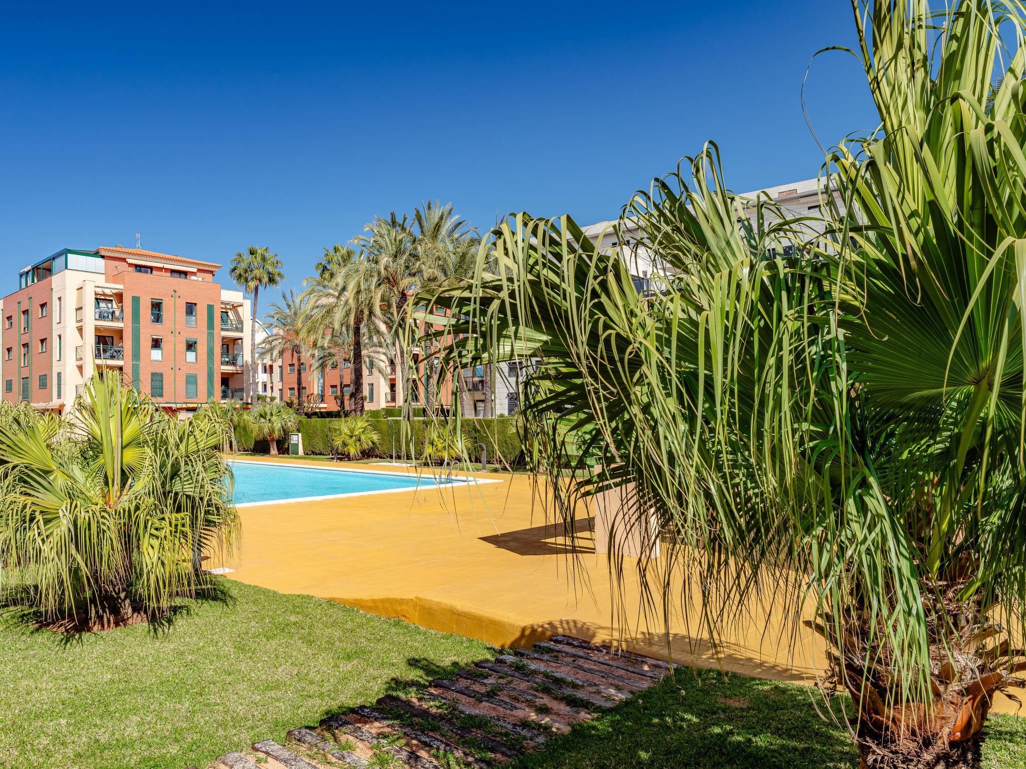 Cosy, comfortable apartment block "La Darsena". In the resort 900 m from the centre of Denia, in a quiet, sunny position, 290 m from the sea, 290 m from the beach. For shared use: large, beautiful, well-kept garden with lawn and flowers, swimming pool angular (20 x 10 m, depth 40 - 210 cm, seasonal availability: 01.Jan. - 31.Dec.) with internal staircase. Children's pool, outdoor shower. In the house: lift. Communal covered parking. Shop, supermarket 250 m, restaurant, bar, café 400 m, bus stop 220 m, railway station 1 km, sandy beach "Marineta Cassiana" 290 m. Sports harbour, marina, surf school, sailing school 400 m. The owner does not accept any youth groups.