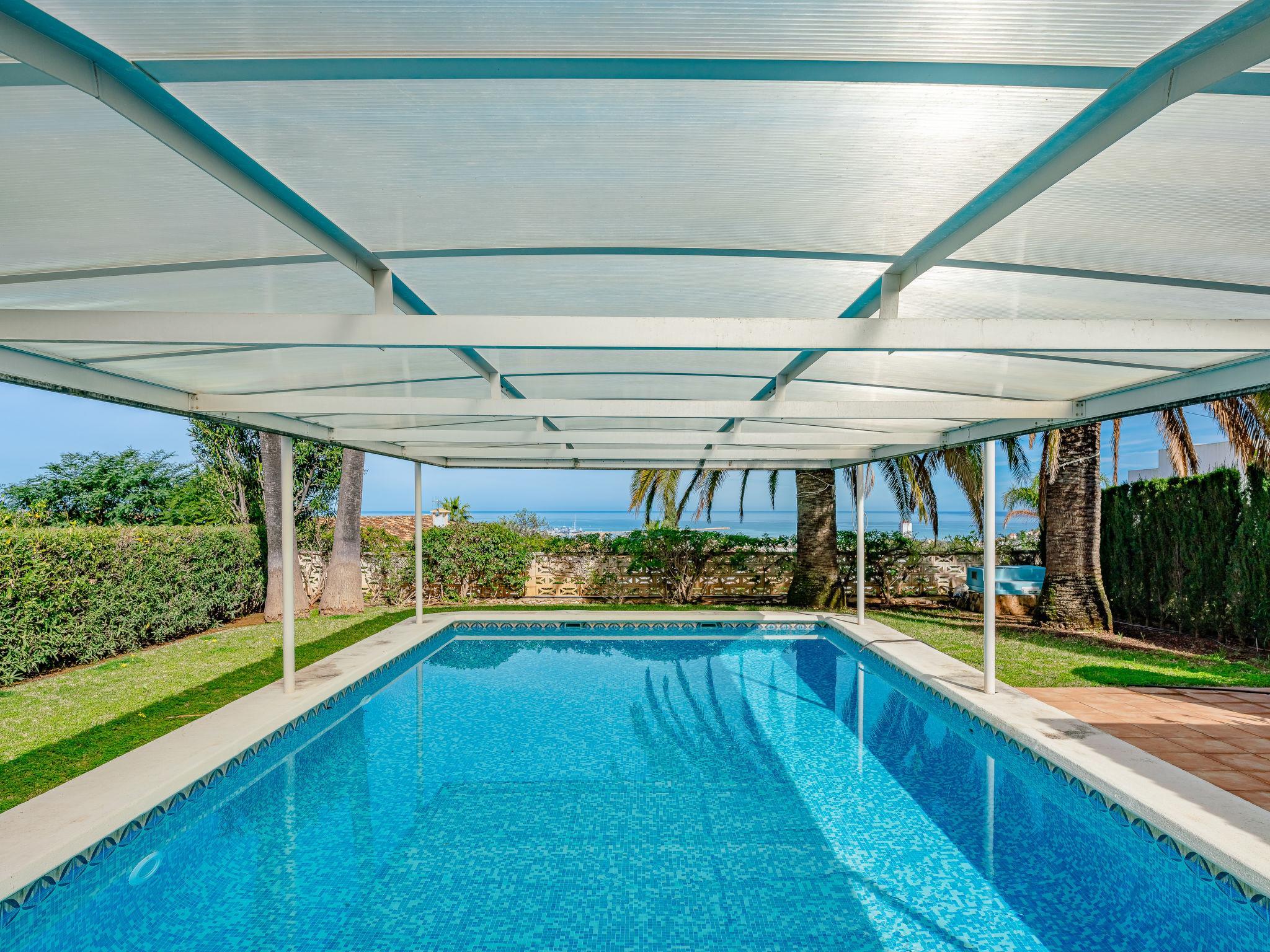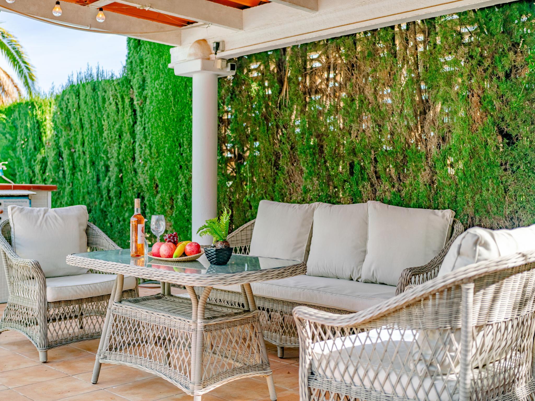Large, comfortable house "Villa Fili". In the resort 2.5 km from the centre of Dénia, in a quiet, sunny position, 2 km from the sea, 2 km from the beach, in a cul-de-sac. Private: garden with lawn and trees, swimming pool (10 x 5 m, depth 80 - 185 cm, seasonal availability: 01.Jan. - 31.Dec.). Outdoor shower, pergola, garden furniture, barbecue house. In the house: washing machine. Parking on the premises, single garage. Supermarket 1.4 km, restaurant 1 km, café 1.4 km, bus stop 3 km, railway station 2.7 km, ferry 5 km, sandy beach "Marineta Cassiana" 2 km. Sports harbour 2 km, surf school 2 km, sailing school 2 km. The owner does not accept any youth groups.