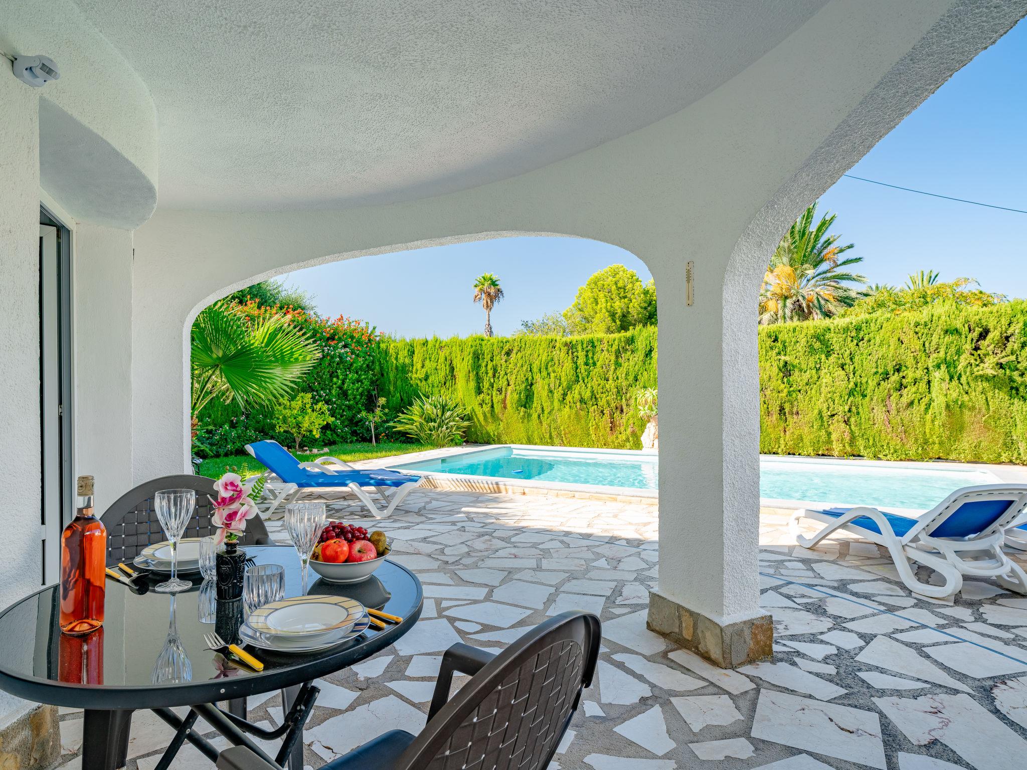 Beautiful, cosy house "Zauberfee". In the district of Montgo, in the resort 1.3 km from the centre of Denia, in a quiet, sunny position, 1.3 km from the sea, 1.3 km from the beach. Private: large, beautiful, well-kept garden with lawn, swimming pool angular (8 x 4 m, depth 100 - 200 cm, seasonal availability: 01.Jan. - 31.Dec.) with internal staircase. Outdoor shower, pergola, garden furniture, barbecue. Shop 1.1 km, supermarket 600 m, restaurant 1 km, bar 600 m, café 1 km, bus stop 1.5 km, railway station 1.8 km, sandy beach "Marineta Cassiana" 1.3 km. Sports harbour 1.3 km, surf school 1.3 km, sailing school 1.3 km, tennis 3 km. The owner does not accept any youth groups. Please note: 1st floor is closed and not occupied.