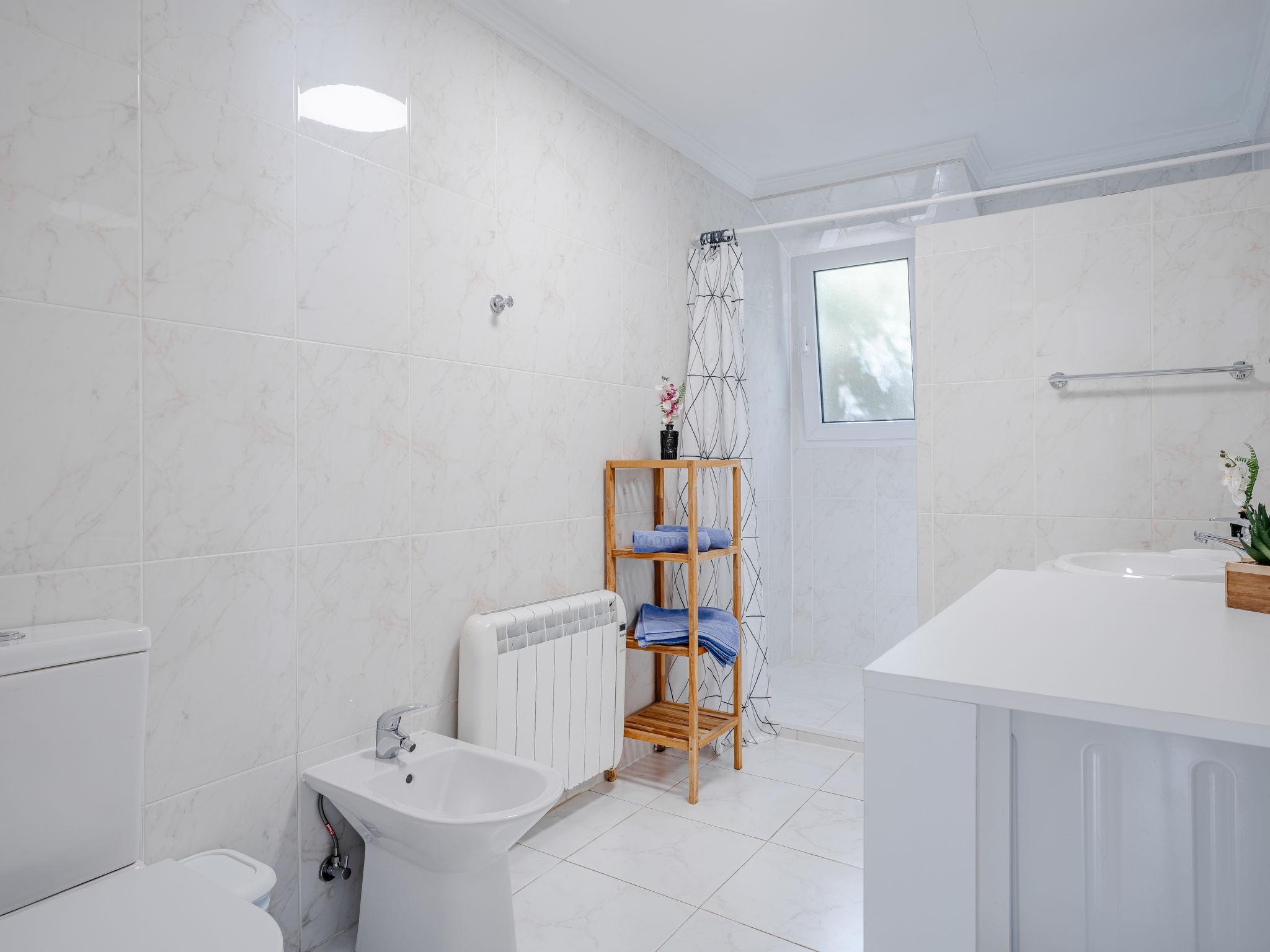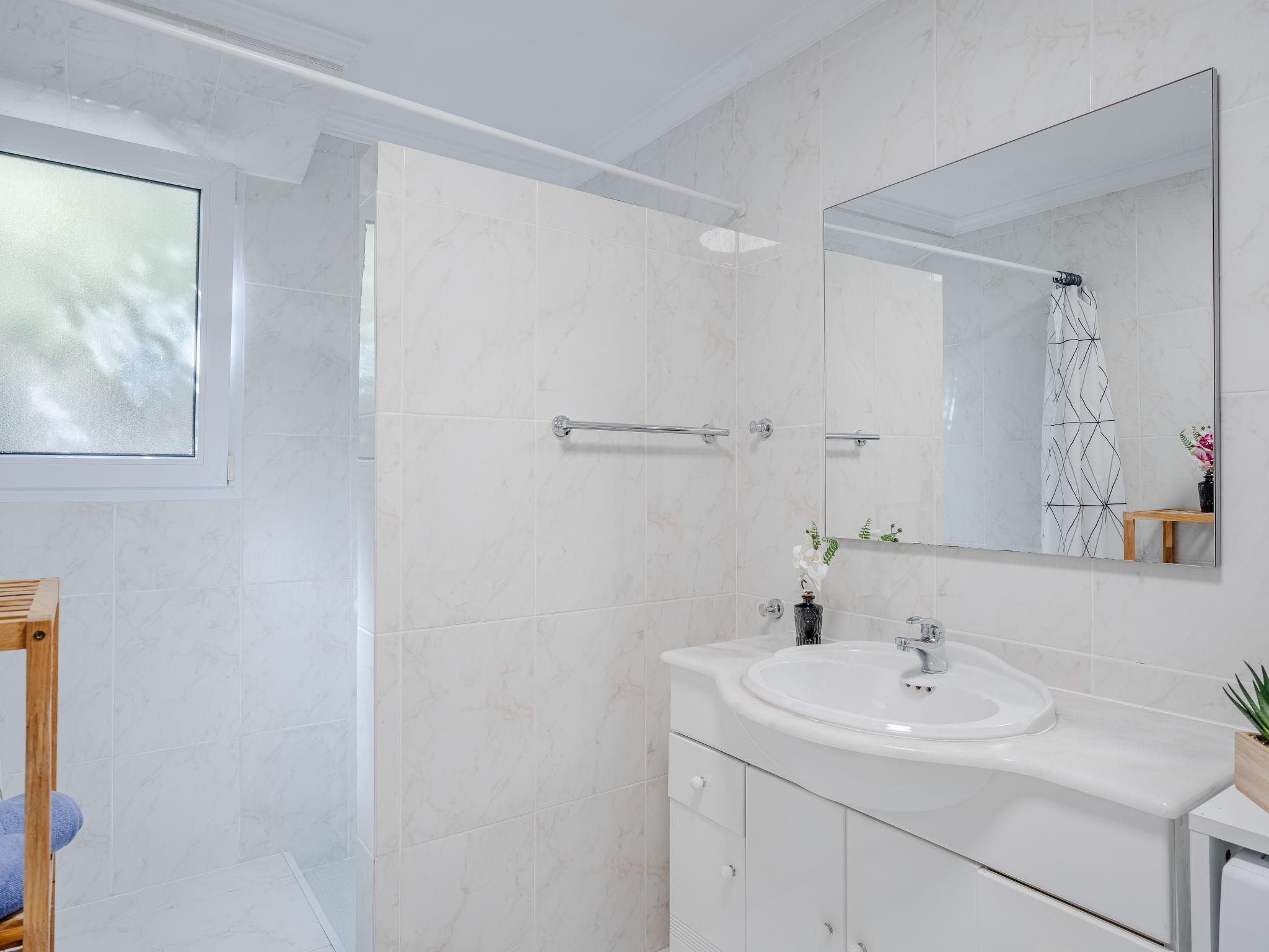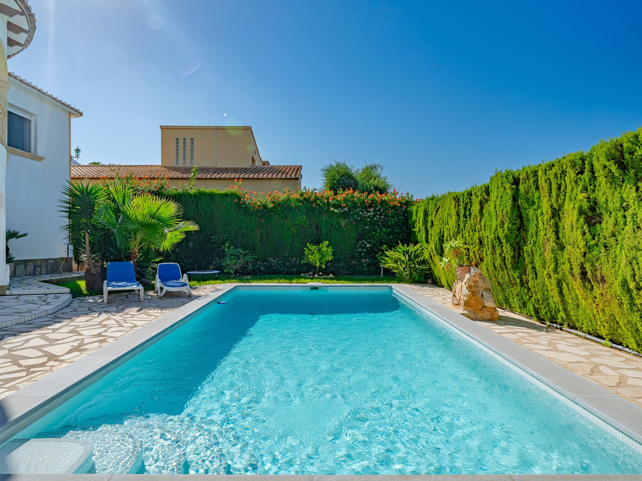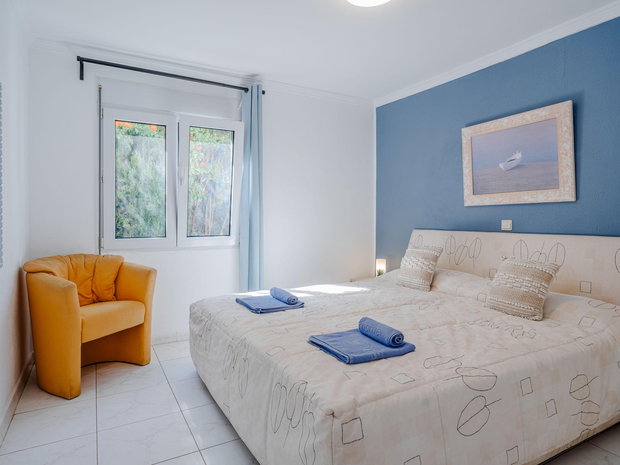 "Casa Zauberfee", 3-room house 80 m2. Spacious and bright, very comfortable furnishings: living/dining room with digital TV. Exit to the patio, to the swimming pool. 1 room with 1 double bed (2 x 90 cm, length 200 cm), fan. 1 room with 2 beds (90 cm, length 200 cm), fan. Kitchen (oven, dishwasher, 4 ceramic glass hob hotplates, toaster, kettle, microwave, freezer, electric coffee machine). Shower/bidet/WC. Electric heating. Large terrace, large garden, lawn. Terrace furniture, barbecue, deck chairs, covered balcony, sitting area. Facilities: washing machine, iron, hair dryer. Internet (WiFi, free). R0000001 // Reg. Nr.: ESFCNT00000305500050450500000000000000000000000000001