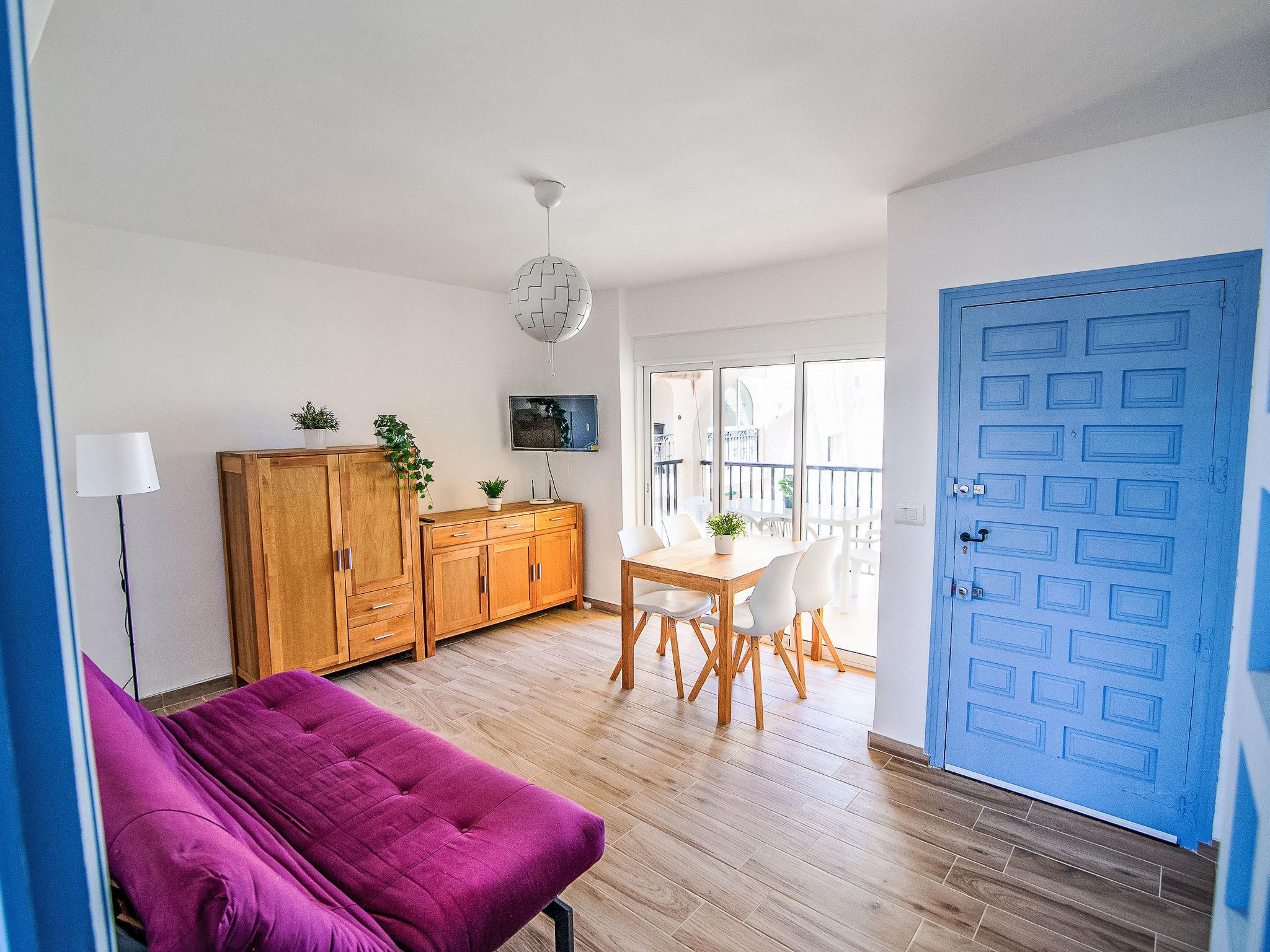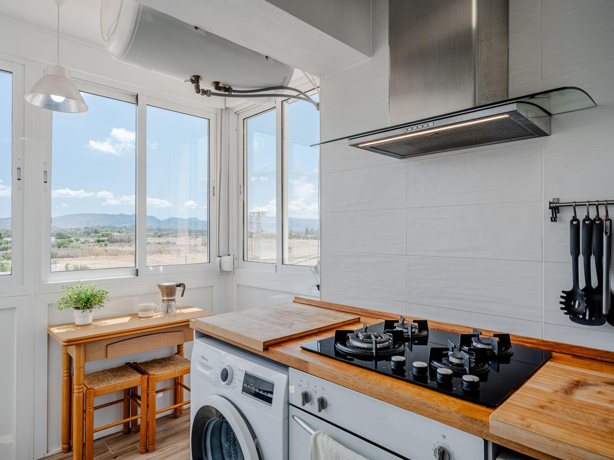"Golden Park", 3-room apartment 60 m2. Spacious and bright, renovated, very beautiful and stylish furnishings: living/dining room with digital TV. Exit to the terrace. 1 room with 1 french bed (150 cm, length 200 cm), fan. 1 room with 1 x 2 bunk beds (80 cm, length 180 cm), fan. Kitchen (oven, dishwasher, 4 gas rings, toaster, microwave, freezer). Shower/bidet/WC. Large terrace. Terrace furniture. Beautiful view of the mountains and the swimming pool. Facilities: washing machine, iron, hair dryer. Parking. Please note: TV only ES. CV-VUT0494569-A // Reg. Nr.: ESFCTU0000030450002470070000000000000CV-VUT0494569-A2
