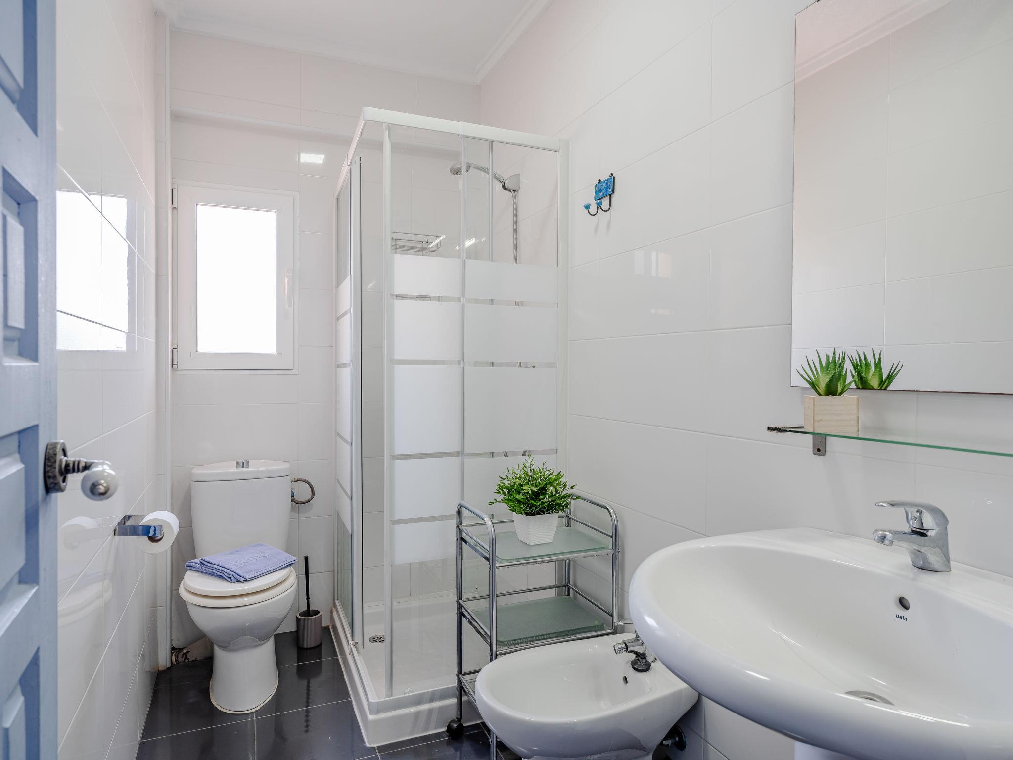 Very beautiful, comfortable apartment block "Golden Park", renovated. In the district of Les Marines KM 5, in a quiet, sunny position, 400 m from the sea, 400 m from the beach, road to cross. For shared use: large, beautiful garden, swimming pool (22 x 14 m, depth 40 - 210 cm, seasonal availability: 01.Jan. - 31.Dec.) with internal staircase. Unconventional pool shape. Children's pool, outdoor shower. Shop 280 m, supermarket 100 m, restaurant, bar, café 280 m, bus stop 50 m, railway station 6 km, sandy beach "Platja de les Bovetes" 400 m. Sports harbour 6 km, marina 6 km, tennis 3.7 km. The owner does not accept any youth groups.