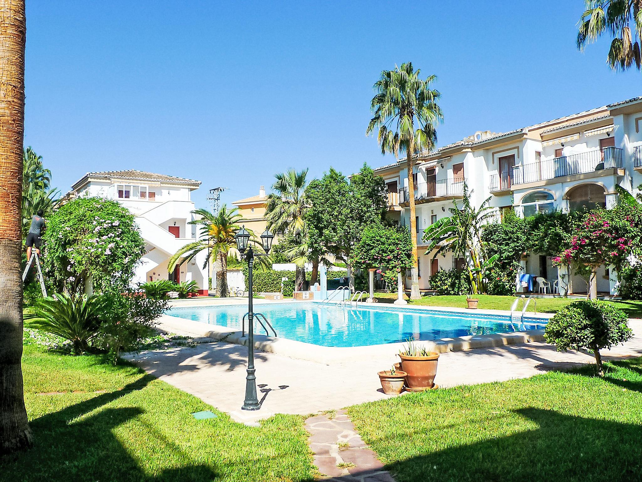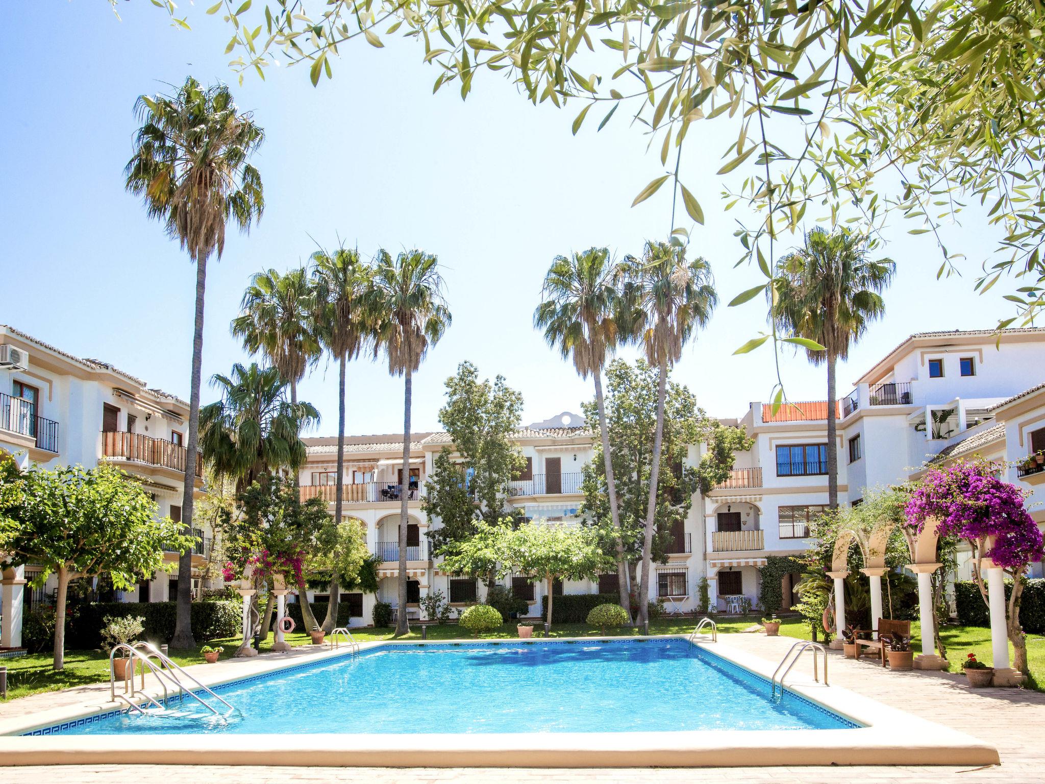Beautiful apartment block "El Patio", 3 storeys. Outside the resort, 4 km from the centre of Denia, 500 m from the sea. For shared use: garden with plants and trees, swimming pool (18 x 10 m, depth 40 - 210 cm, seasonal availability: 01.Jan. - 31.Dec.) with internal staircase. Unconventional pool shape. Children's pool, outdoor shower, tennis (1 x hard court), parking on the premises. Supermarket 1.2 km, restaurant 750 m, bar, bus stop 250 m, sandy beach 500 m.