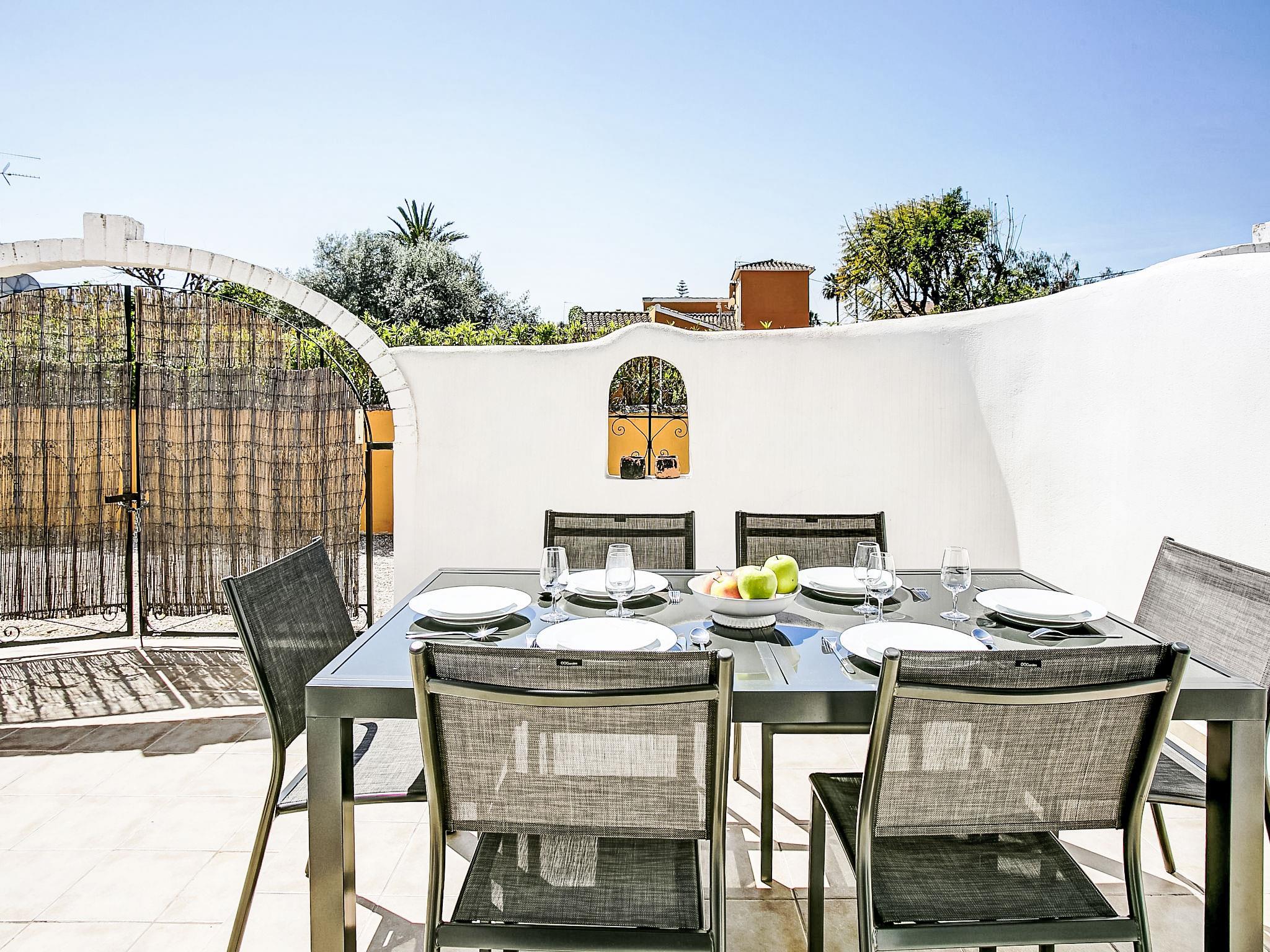 Very cosy, very comfortable bungalow "Las Estancias", terraced. In the resort 3.5 km from the centre of Dénia, 400 m from the sea, 400 m from the beach. For shared use: large, beautiful, well-kept garden with plants and trees, natural garden (fenced), swimming pool (seasonal availability: 01.Jan. - 31.Dec. pool opening hours: 09:00-15:00 and 17:00-23:00). Outdoor shower. Shop 850 m, supermarket 2 km, restaurant 280 m, bar 240 m, café 280 m, bus stop 850 m, sandy beach 400 m. Sports harbour 3.5 km, marina 3.5 km, surf school 2.6 km, sailing school 3.5 km. The owner does not accept any youth groups.
