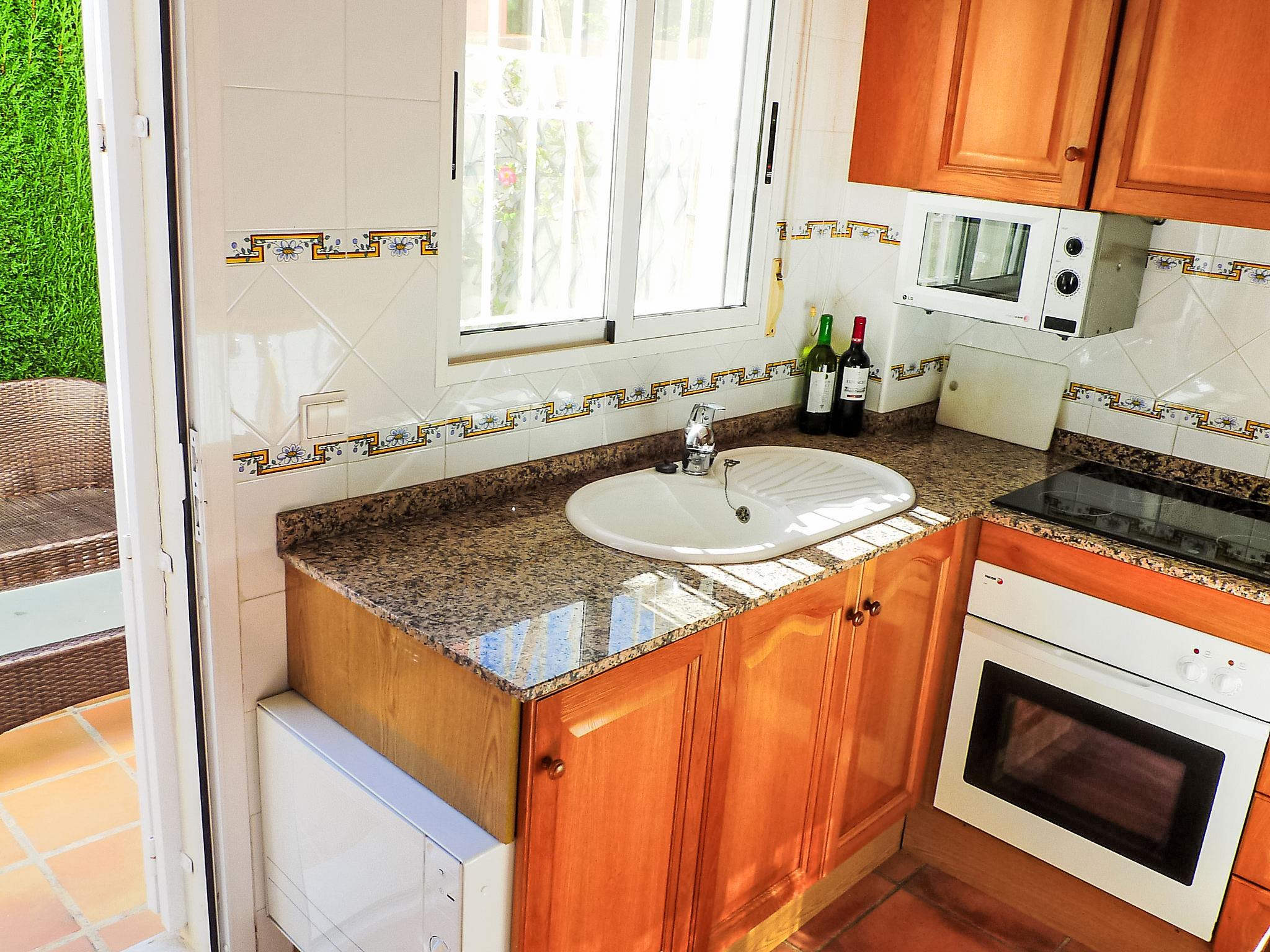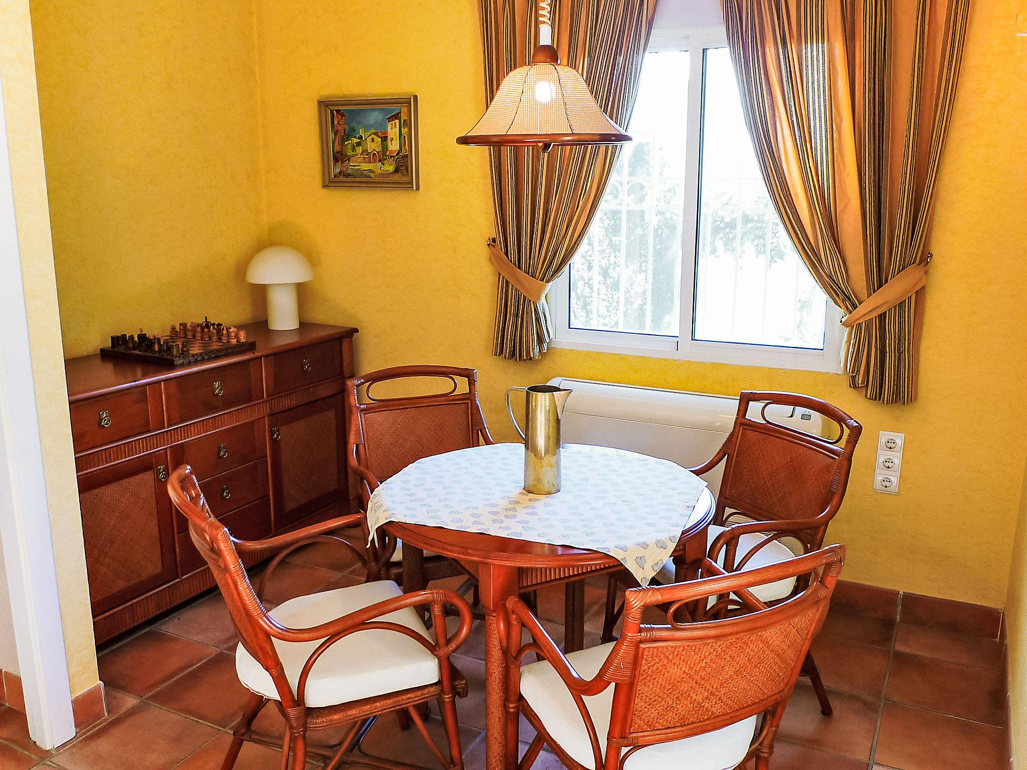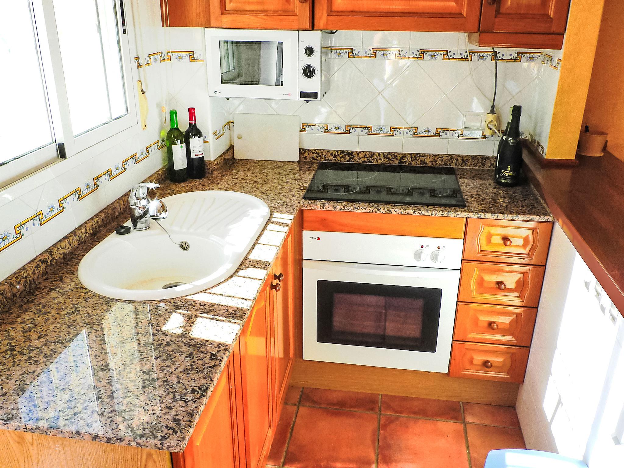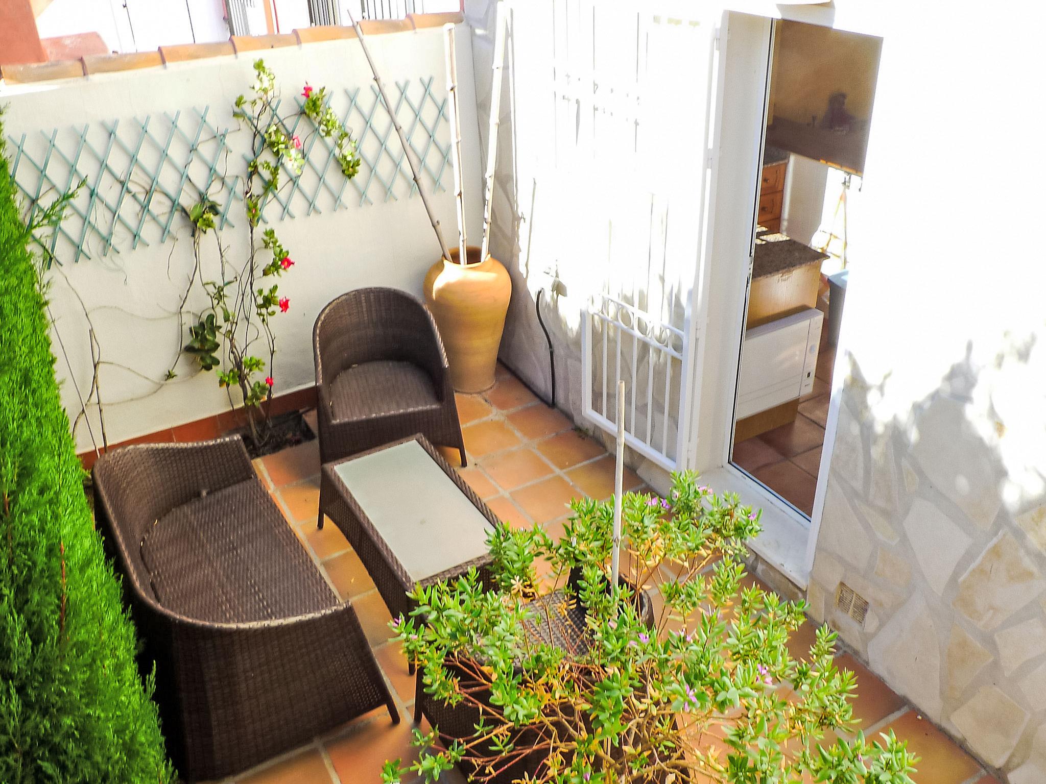 Urb. Deveses Playa: Comfortable semi-detached house "Bella Tierra", 2 storeys, built in 2001. 3 km from the centre of Els Poblets, 11 km from the centre of Dénia, in a quiet position, 500 m from the sea, in a cul-de-sac. Private: small garden 200 m2 (fenced) with lawn, courtyard, swimming pool angular (3 x 5 m, seasonal availability: 01.Jan. - 31.Dec.) with internal staircase. Outdoor shower, terrace, public parking on the road. Supermarket 2 km, restaurant 2 km, bar 2 km, café 2 km, bus stop 500 m, sandy beach 500 m. Golf course (18 hole) 10 km. The owner does not accept any youth groups.