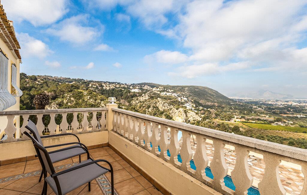 Högt upp i de gröna kullarna i Dénias pittoreska inland och omgiven av ett välskött grannskap, välkomnar detta rymliga semesterhus er med underbar panoramautsikt ända till kusten. Promenera genom de ljusa och stilfullt inredda rummen och se fram emot en avkopplande och händelserik tid tillsammans med dina nära och kära.